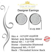 King Of Bling's 925 White Silver Hip Hop 0.15ct Diamond For Men's & Women's Round Stud Earrings
