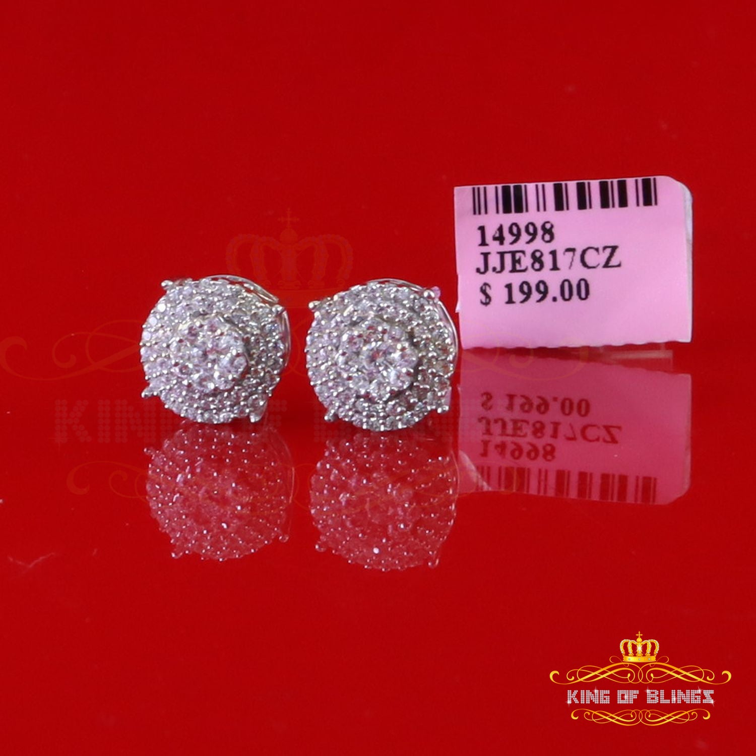 King of Blings- 925 White Silver Hip Hops 0.83ct Cubic Zirconia Women's & Men's Round Earrings
