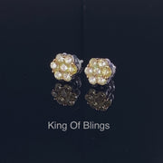 King of Blings- 925 White Silver Sterling 2.06ct Cubic Zirconia Hip Hop Flower Women's Earrings