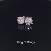 King of Blings- 925 White Sterling Silver 0.86ct Cubic Zirconia Round Women's Hip Hop Earrings