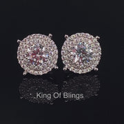King of Blings- 925 White Sterling Silver 1.07ct Cubic Zirconia Women's Hip Hop Rounds Earrings