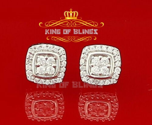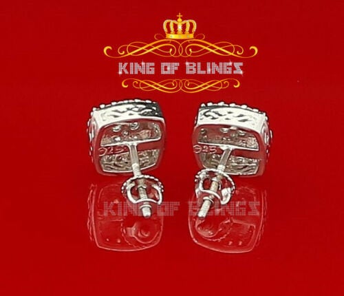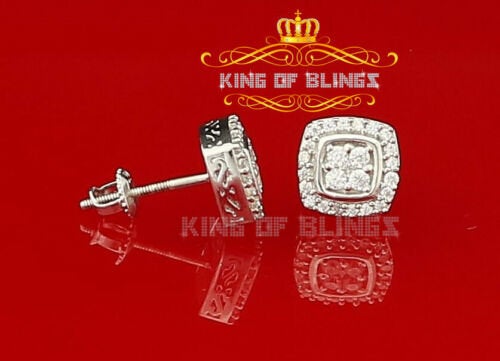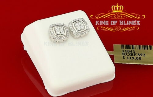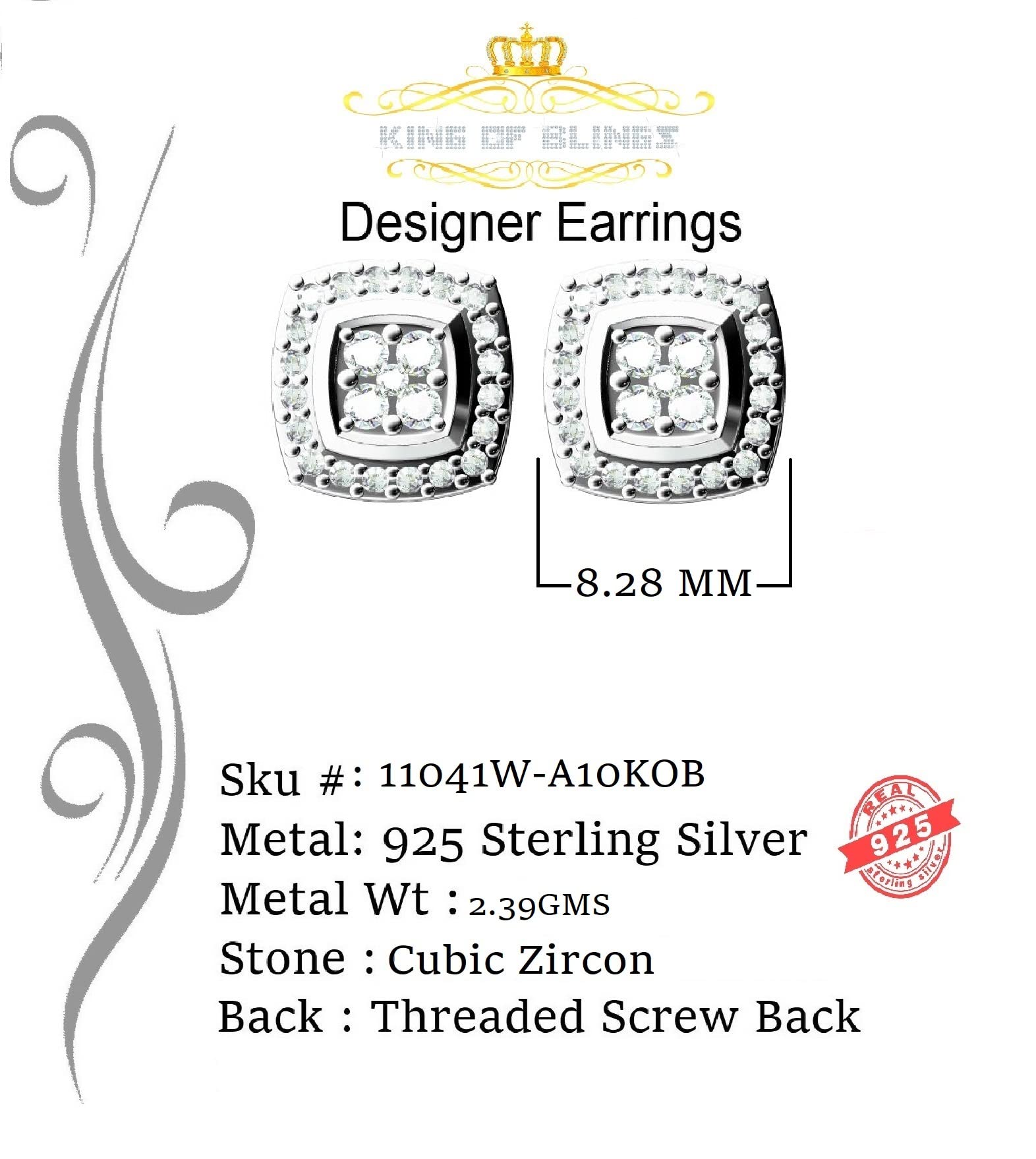King of Bling's 925 White Sterling Silver 1.50ct Cubic Zirconia Women's Hip Hop Square Earrings