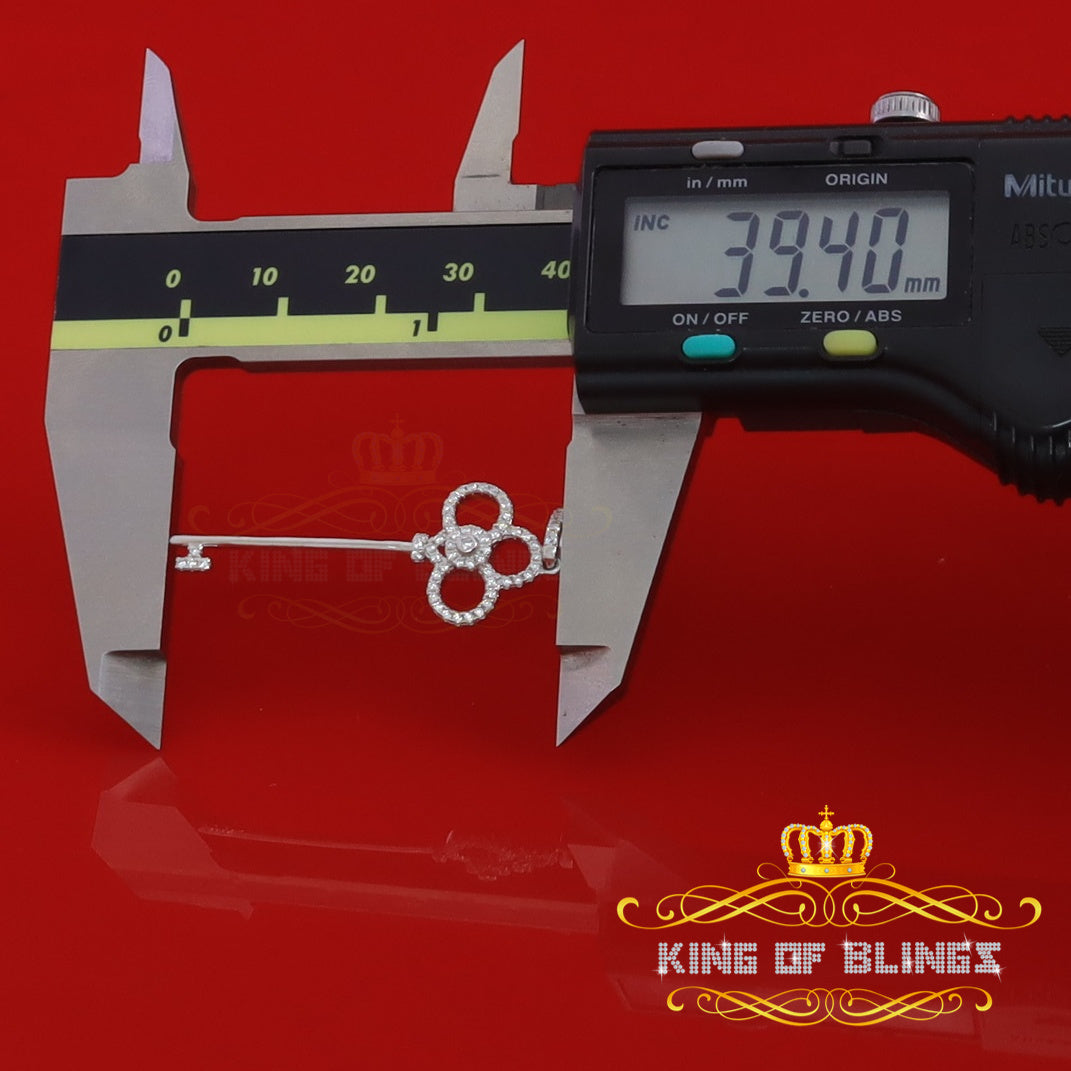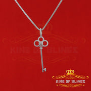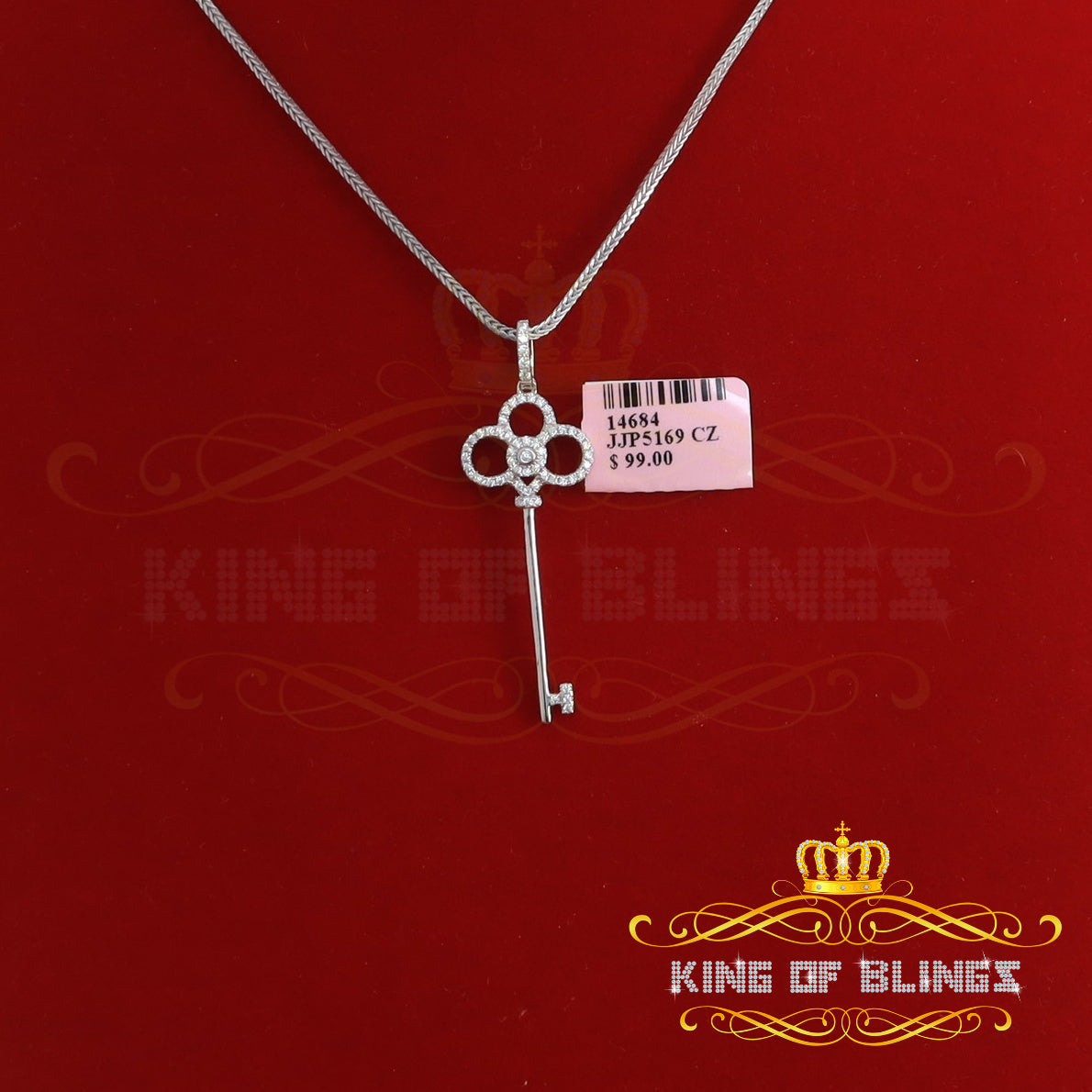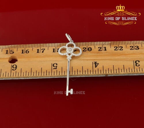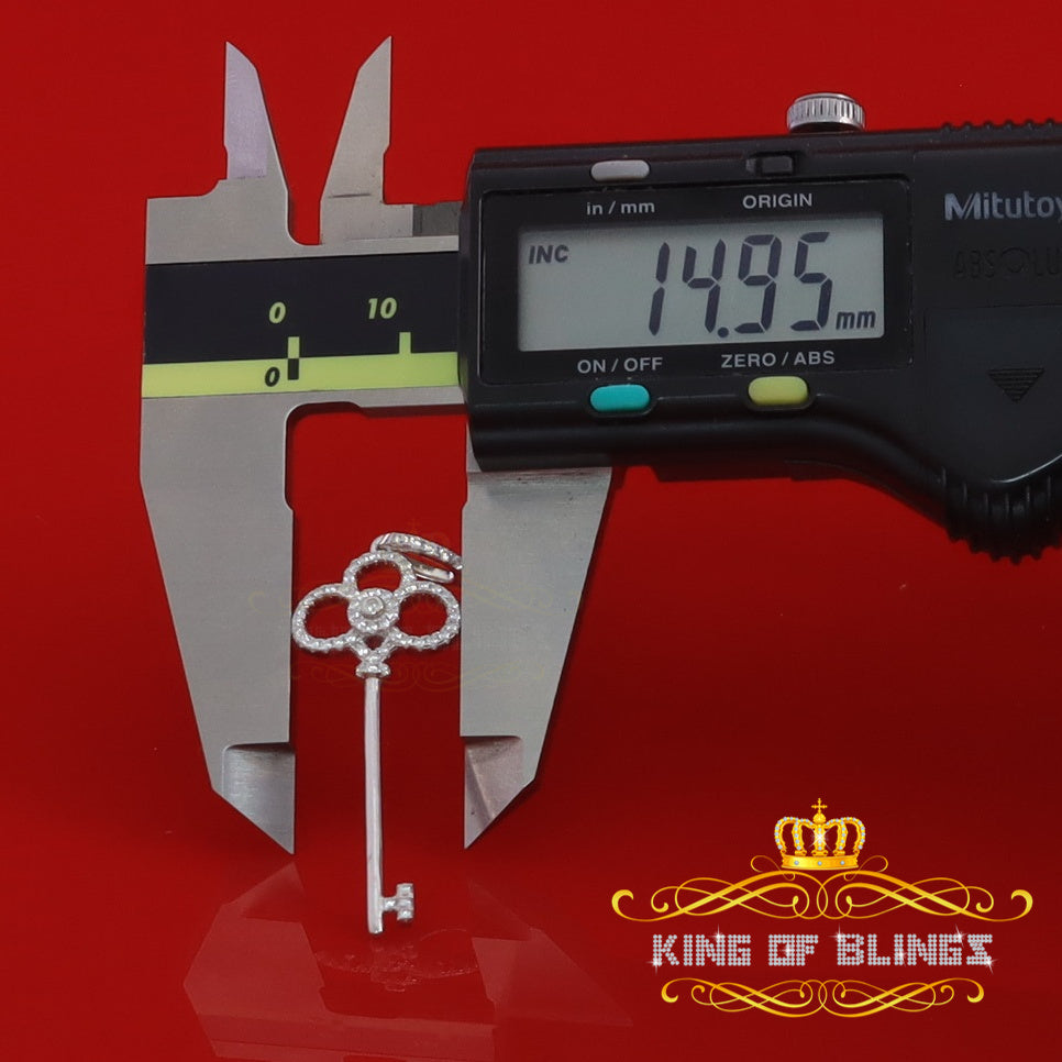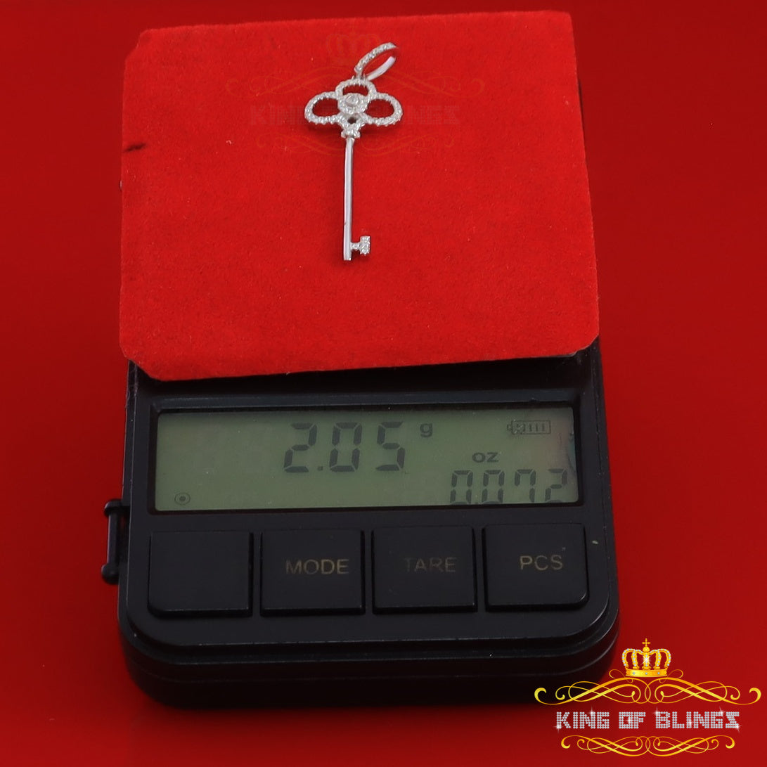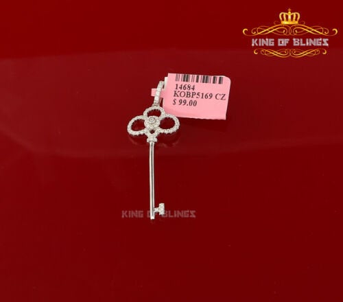 King Of Bling's 925 White Sterling Silver Charm Key Shape Pendant with 0.71ct Cubic Zirconia