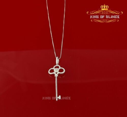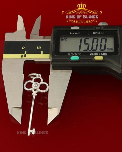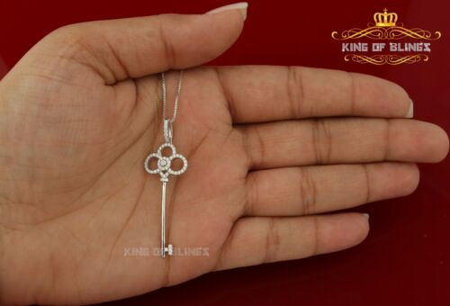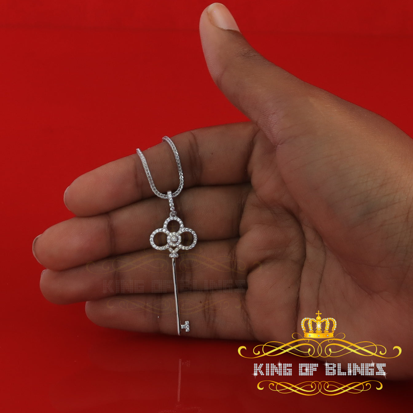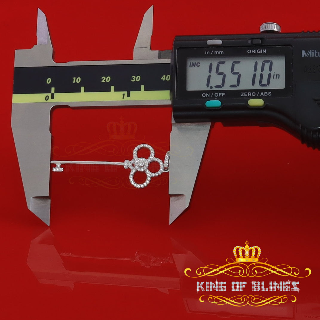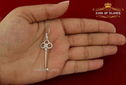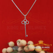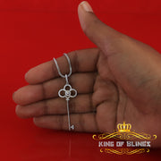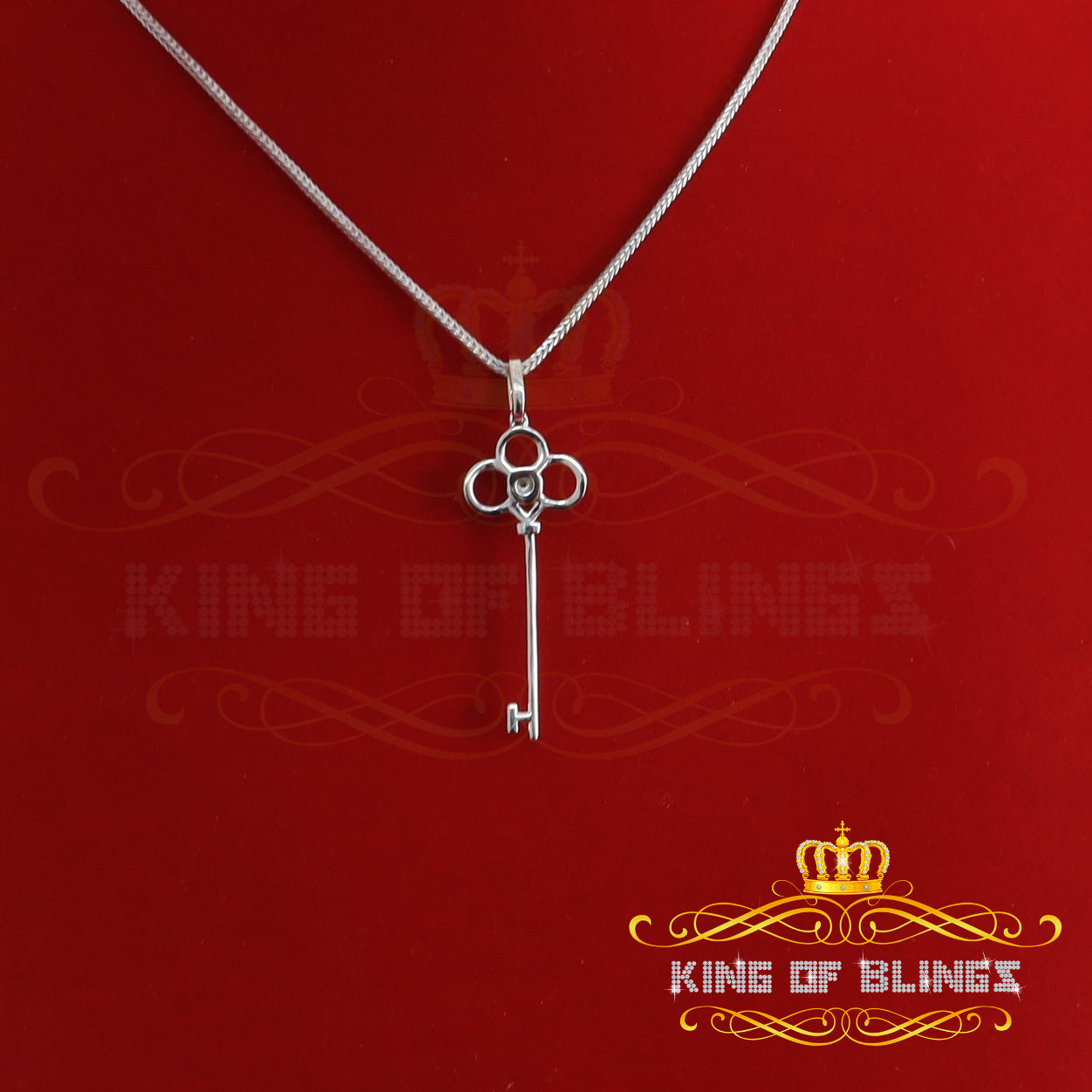 King Of Bling's 925 White Sterling Silver Charm Key Shape Pendant with 0.71ct Cubic Zirconia