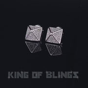 King of Blings- 925 White Sterling Silver Cubic Zirconia Women's & Men's Hip Hop Square Earring