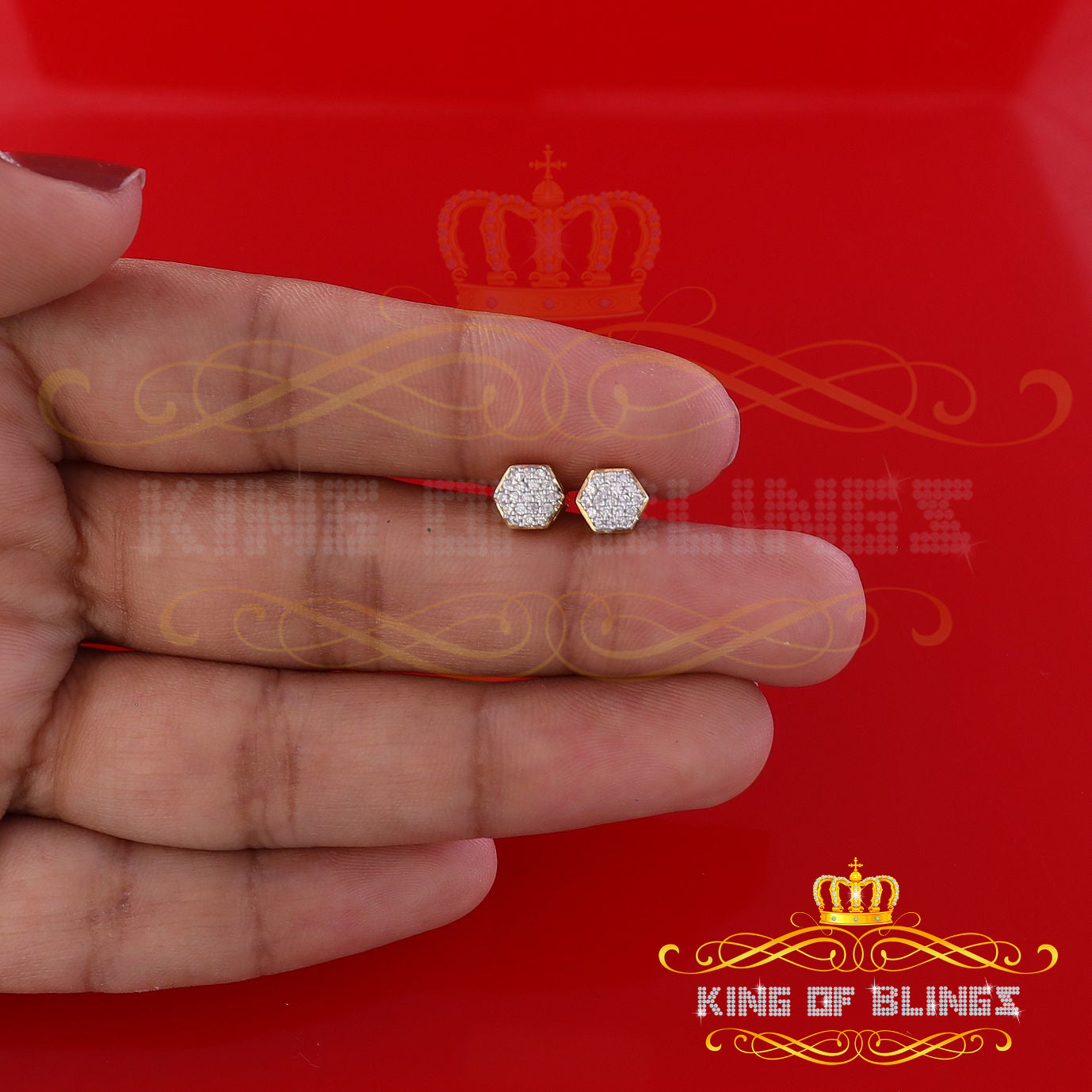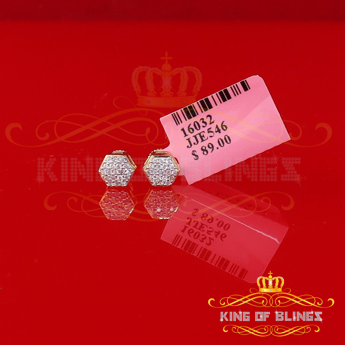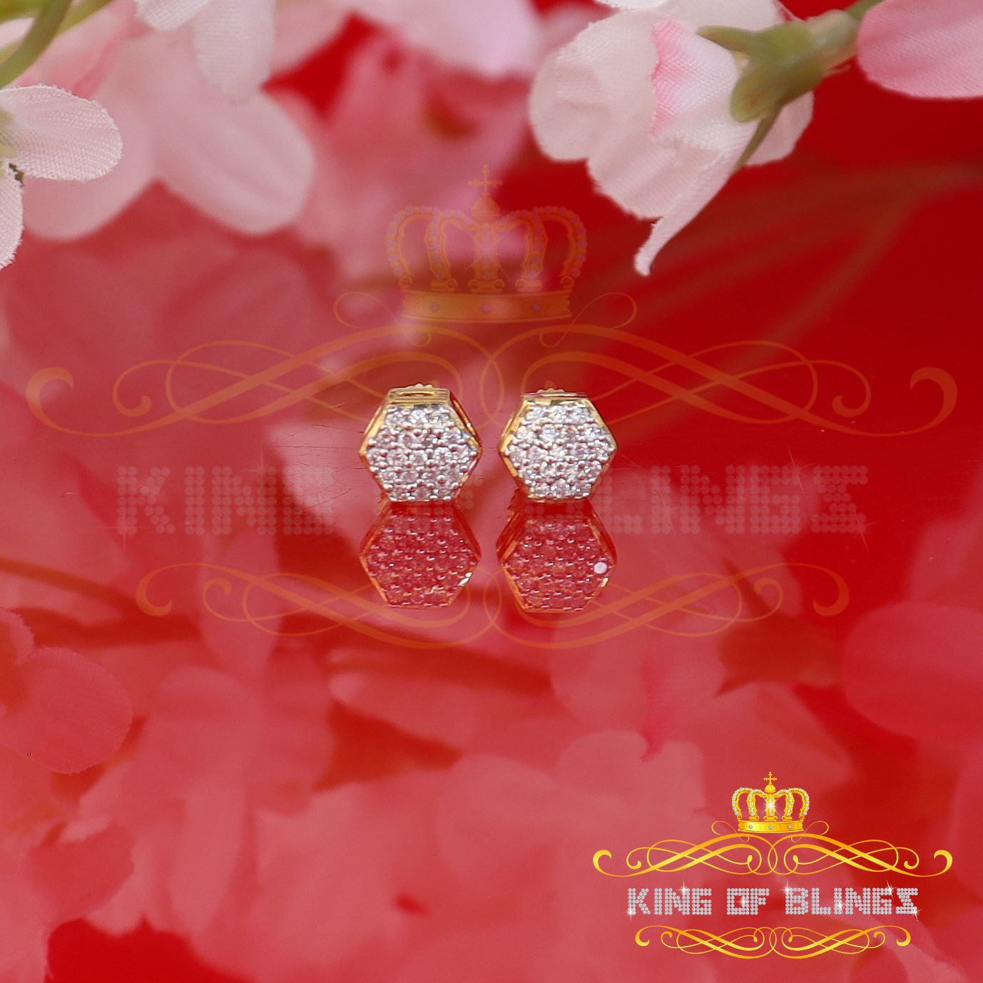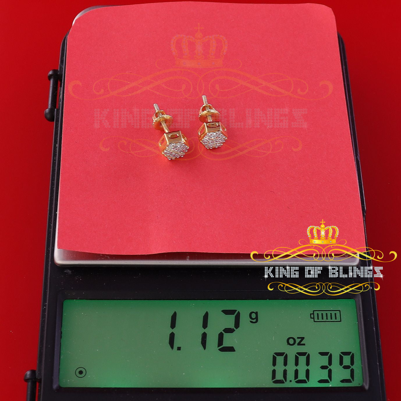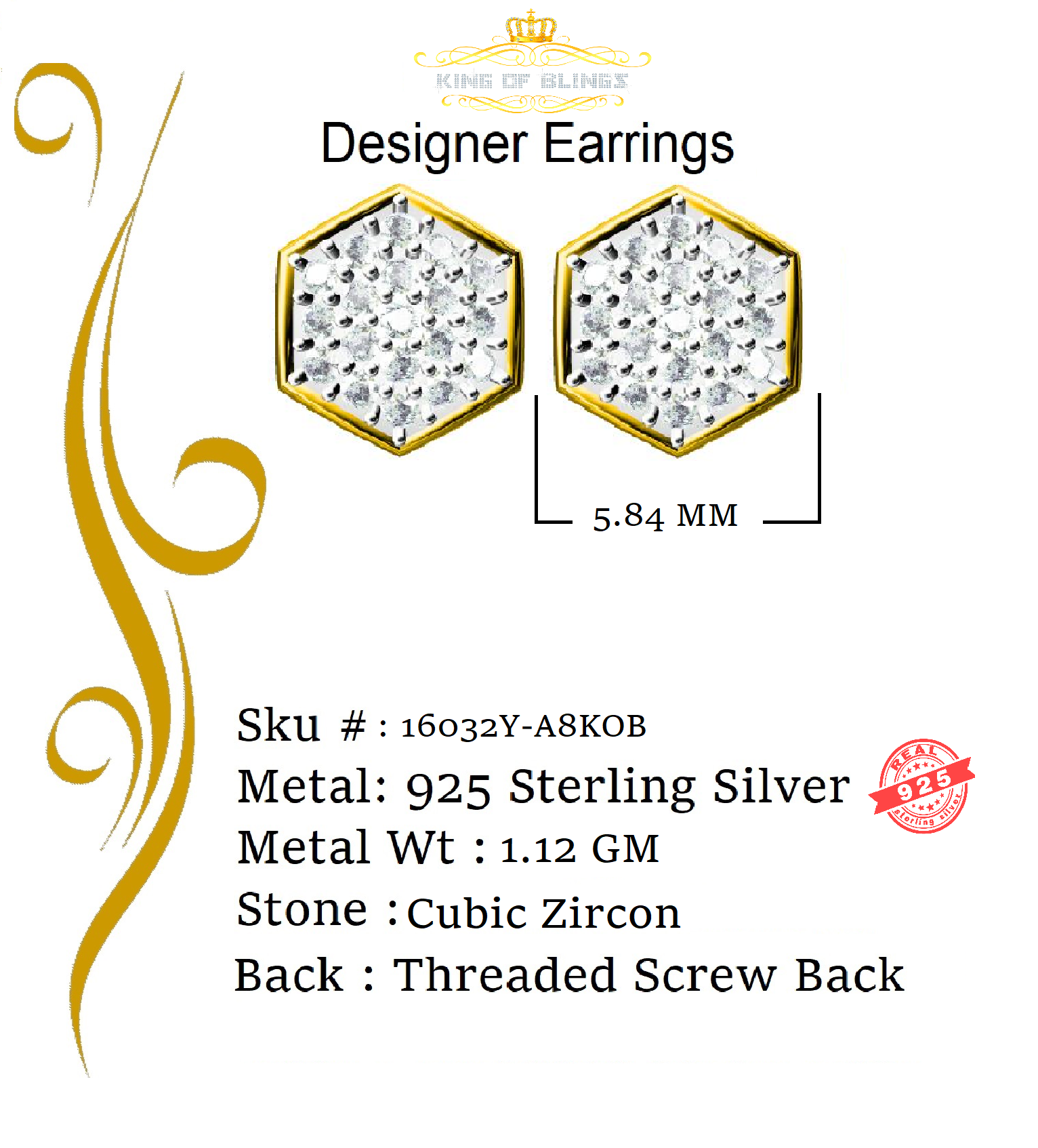 King of Bling's 925 Yellow Silver 0.38ct Cubic Zirconia Women's & Men Hip Hop Hexagon Earrings