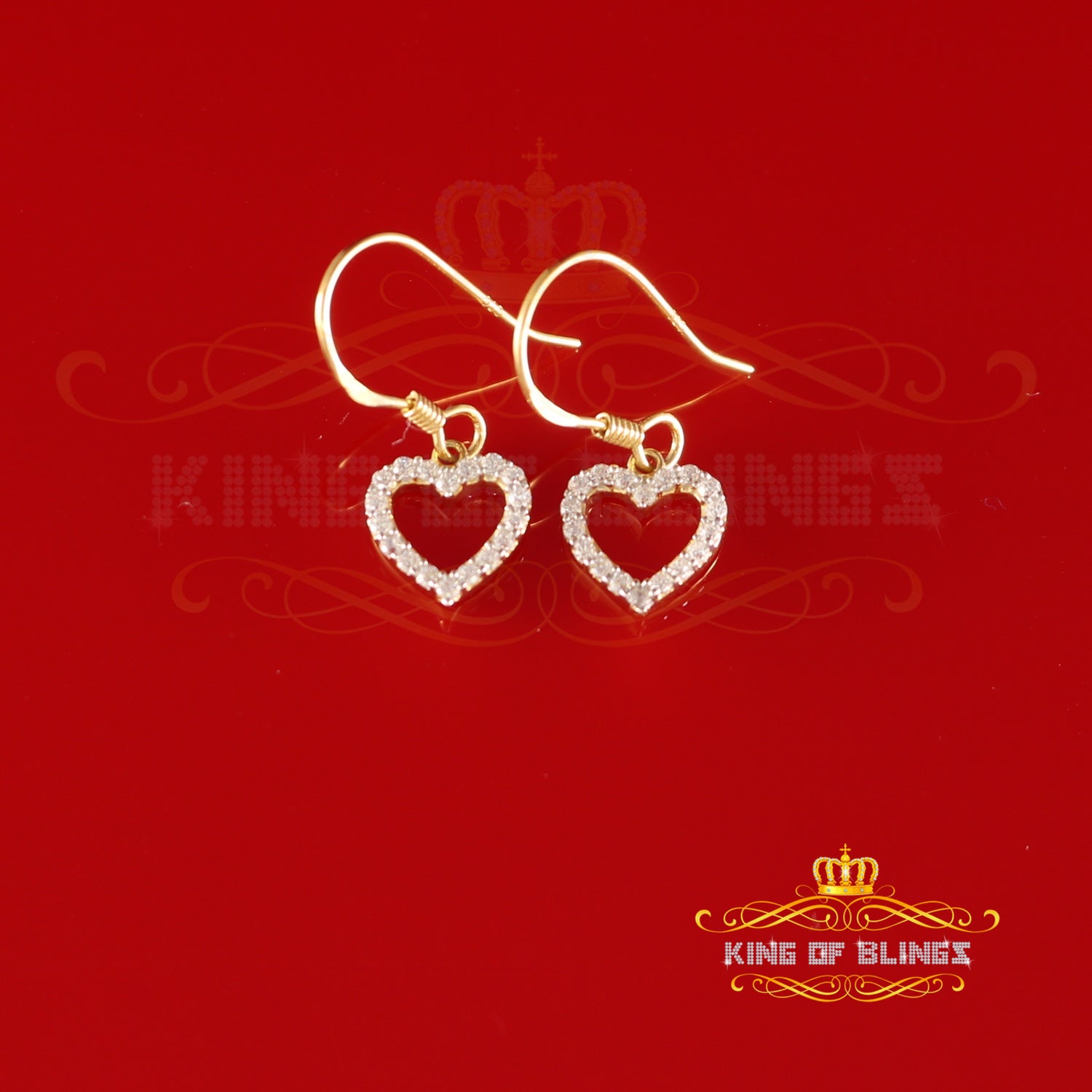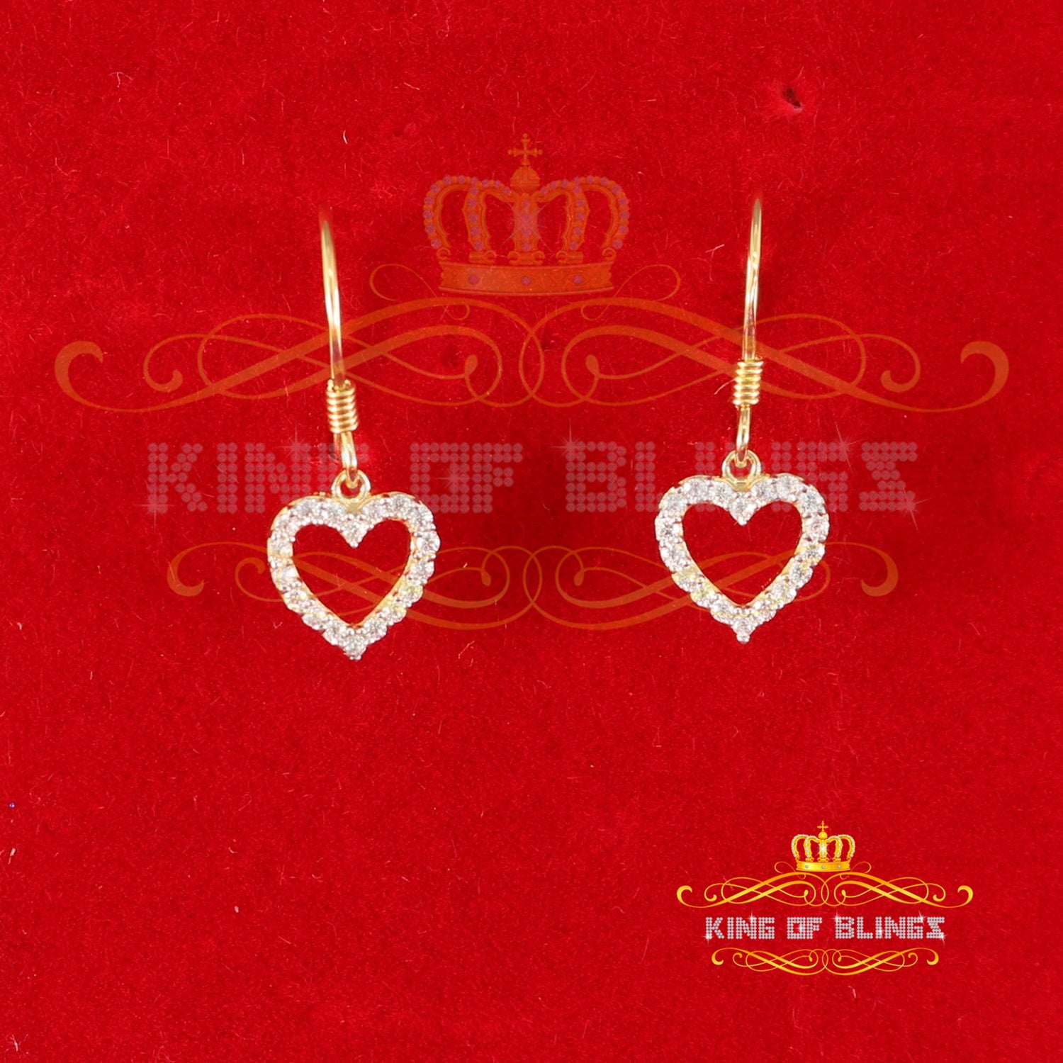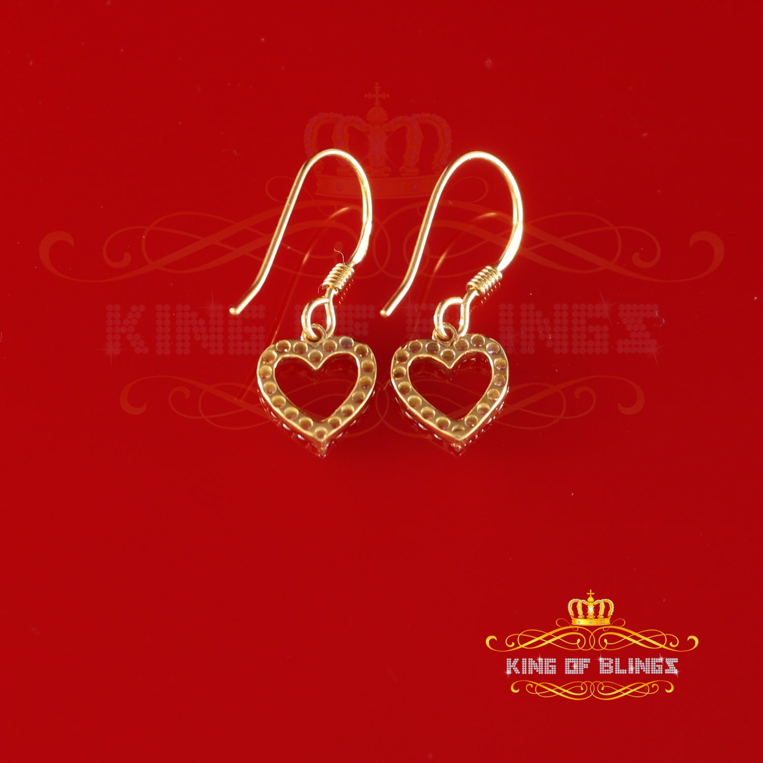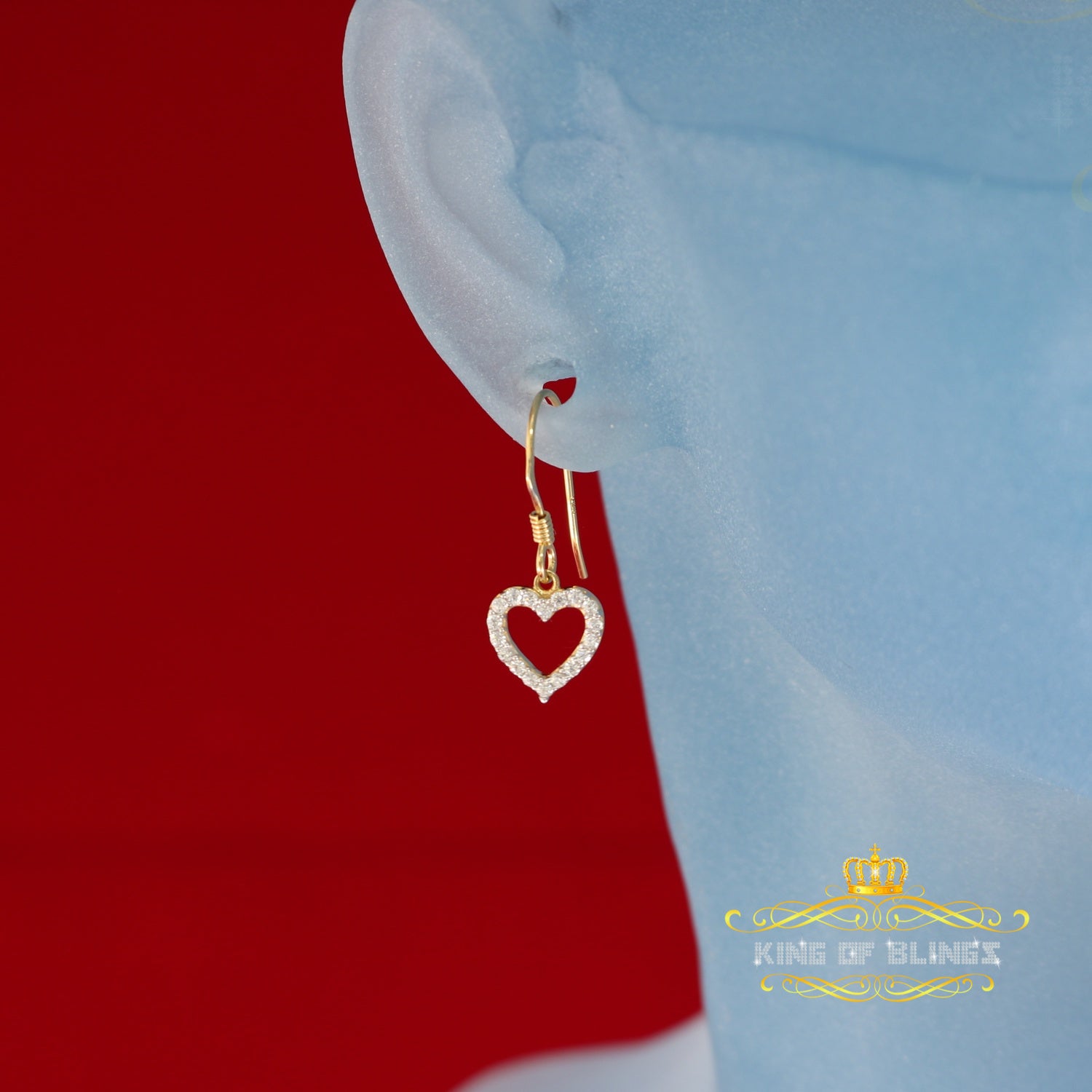 King of Bling's 925 Yellow Silver 0.58ct Cubic Zirconia Dangling Heart Women's/ Men's Earrings