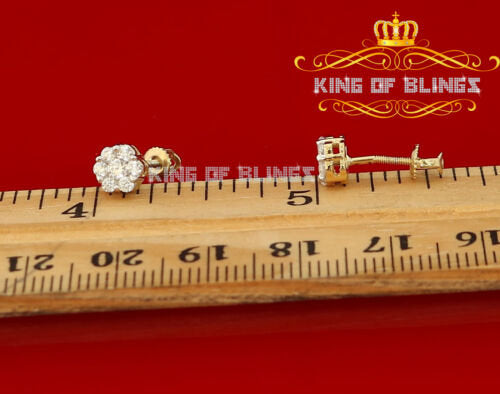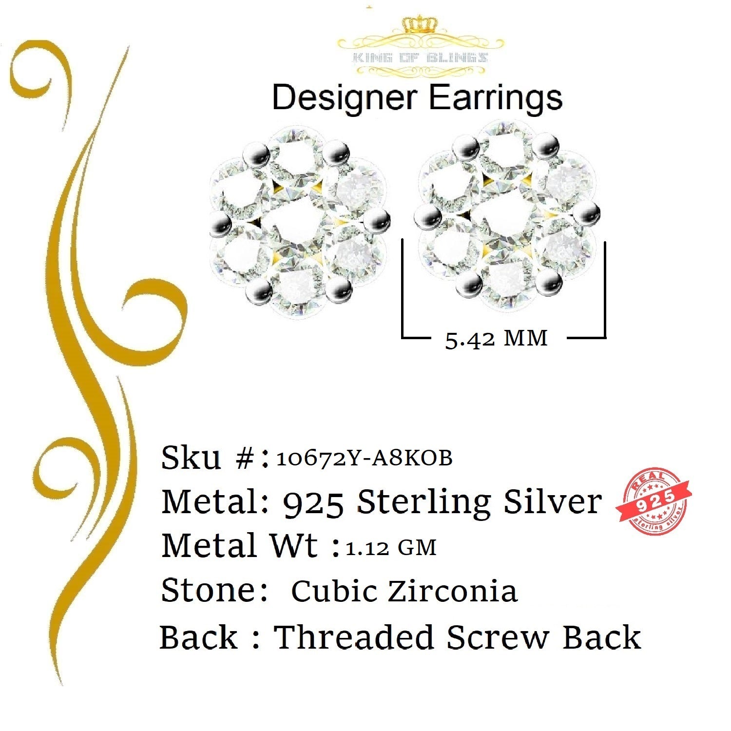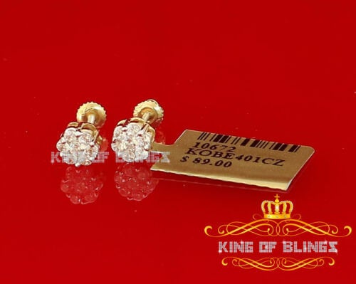 King of Bling's 925 Yellow Silver 0.76ct Cubic Zirconia Women's & Men's Hip Hop Flower Earrings