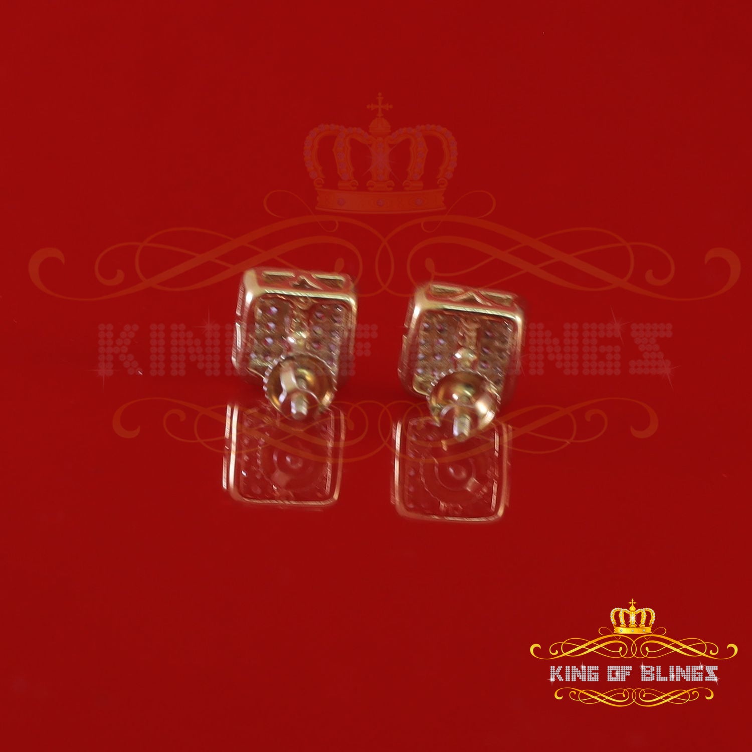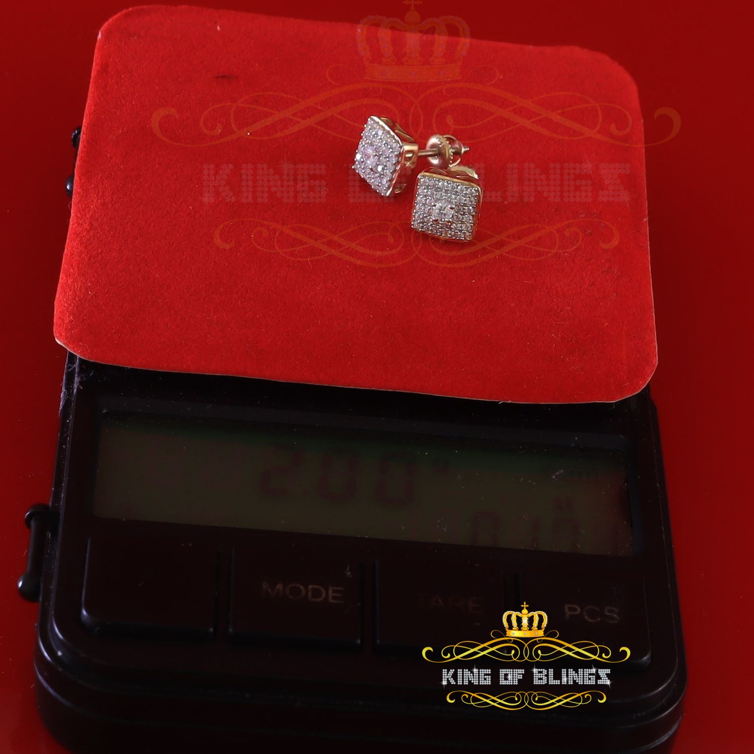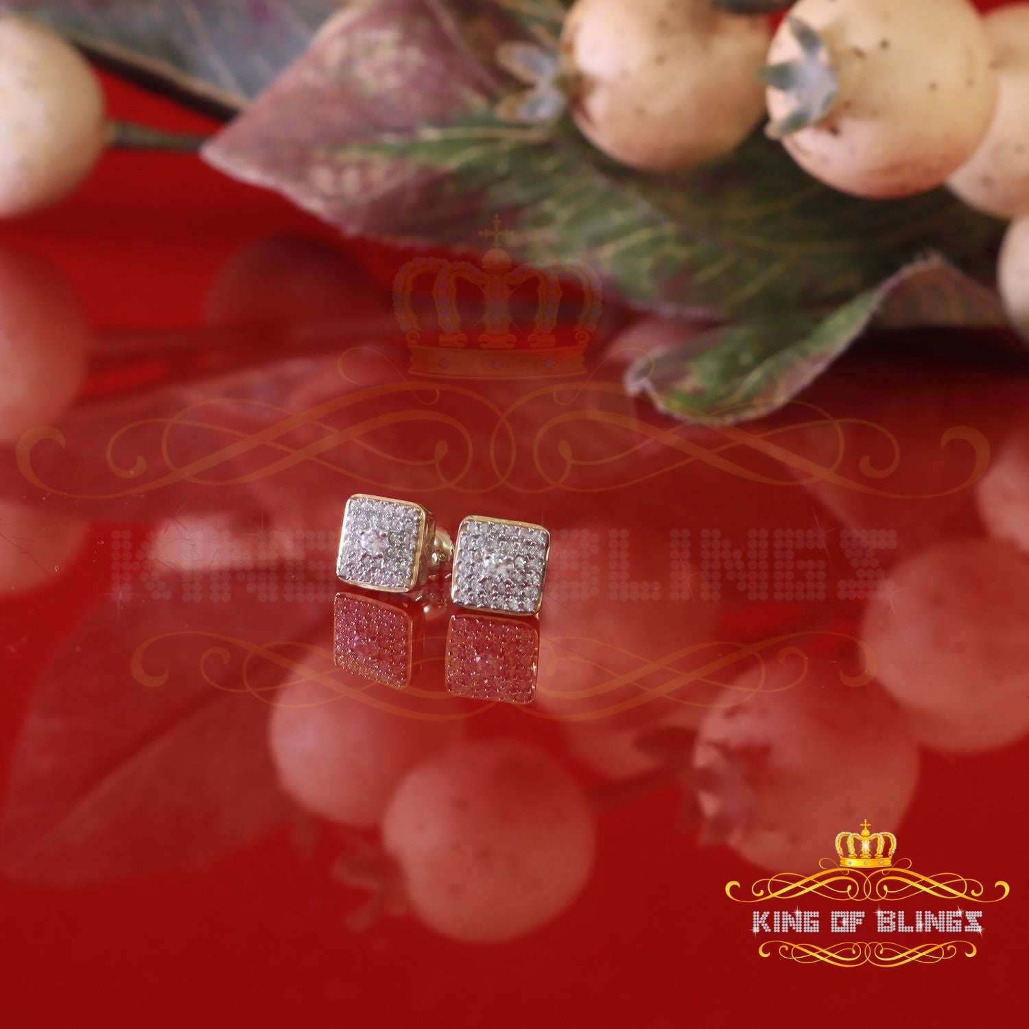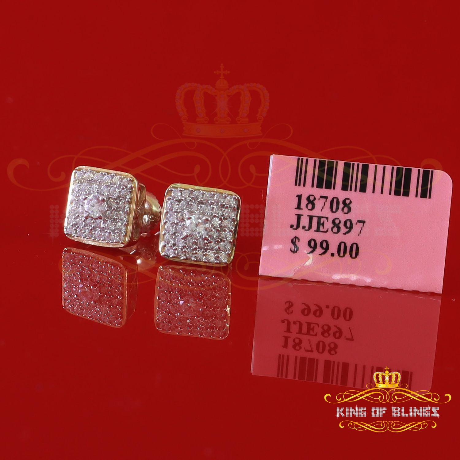 King of Bling's 925 Yellow Silver 0.81ct Cubic Zirconia Women's & Men's Hip Hop Square Earrings