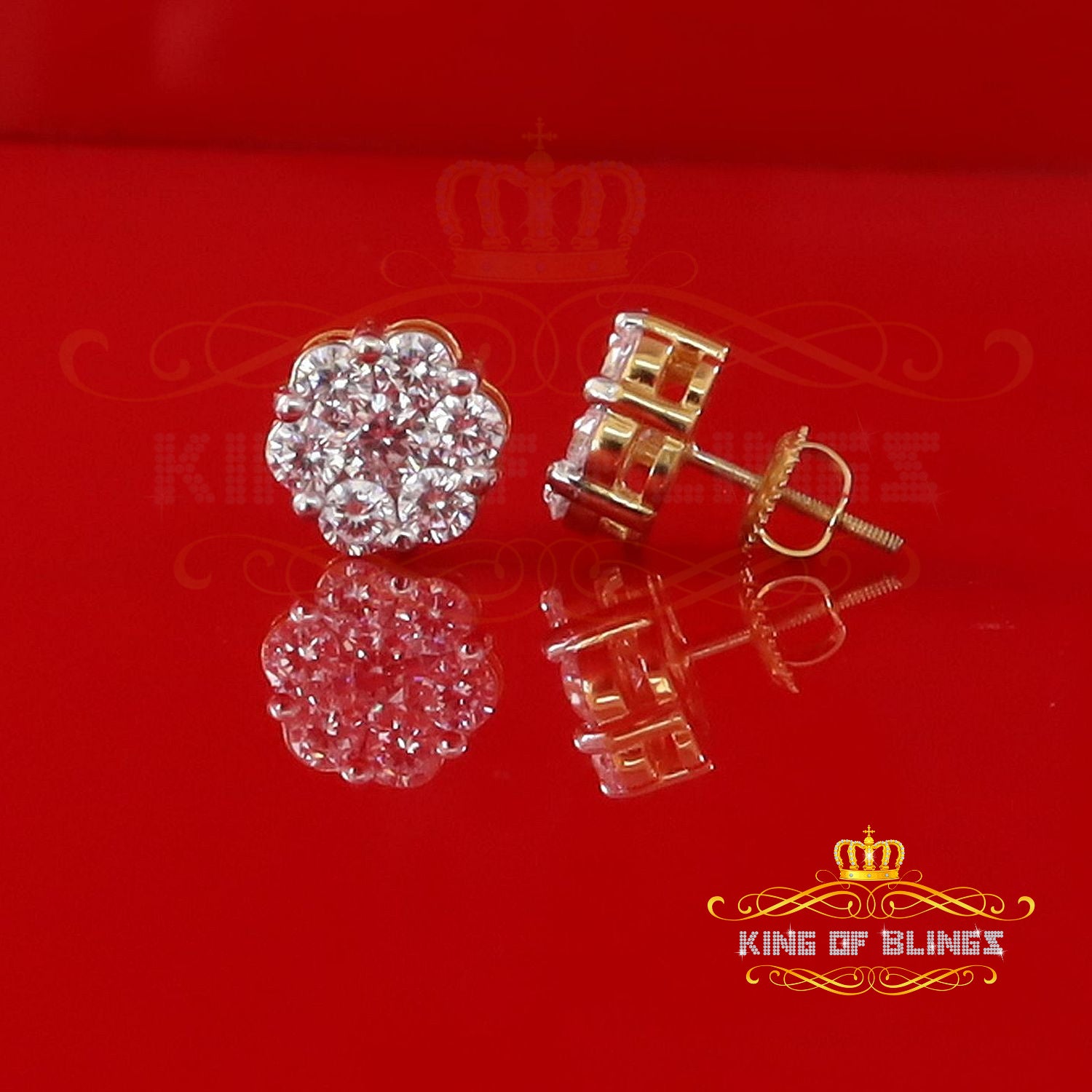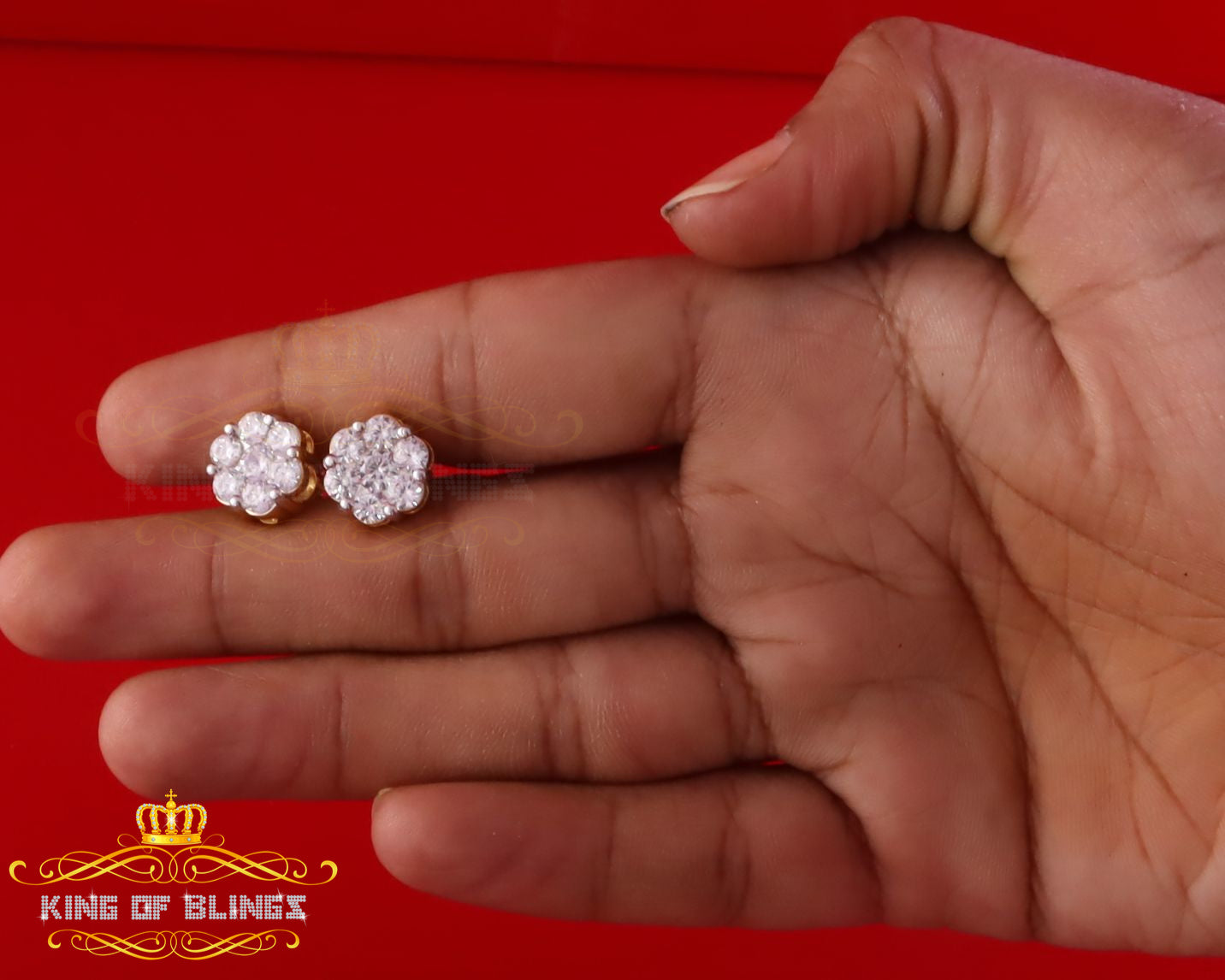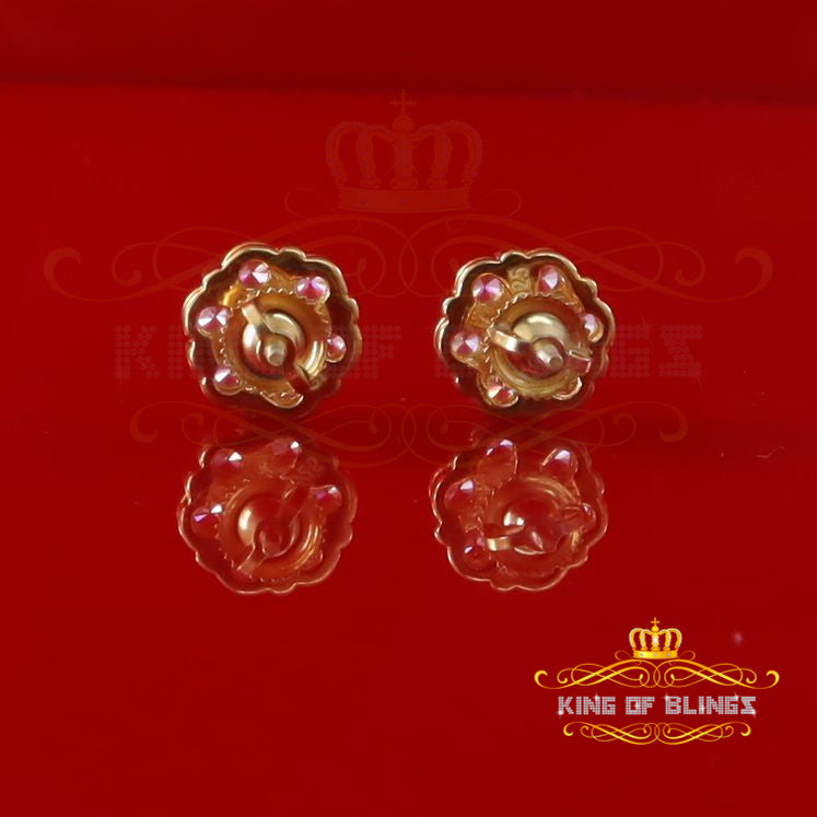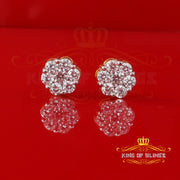 King of Bling's 925 Yellow Silver 0.96ct Cubic Zirconia Women's & Men's Hip Hop Floral Earrings