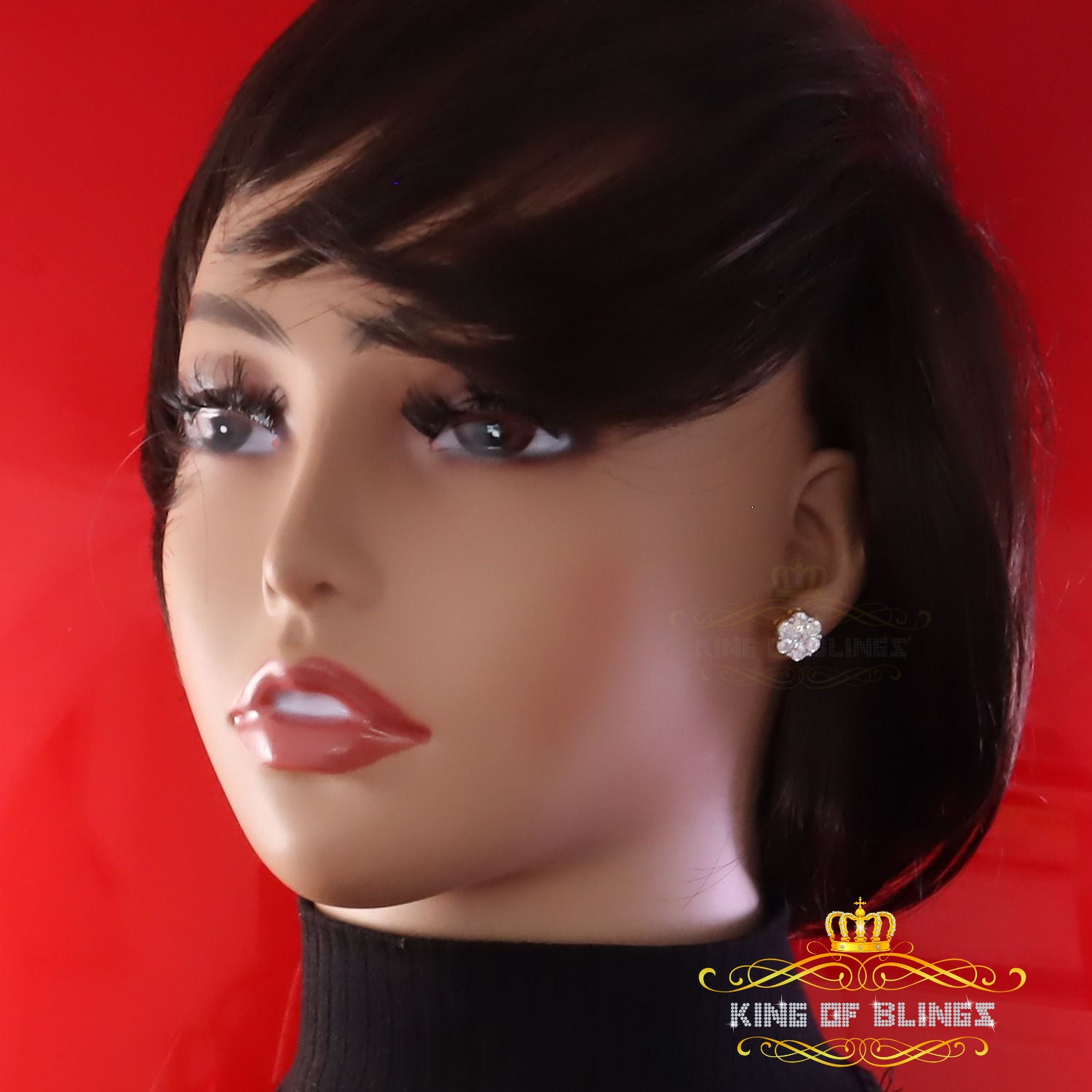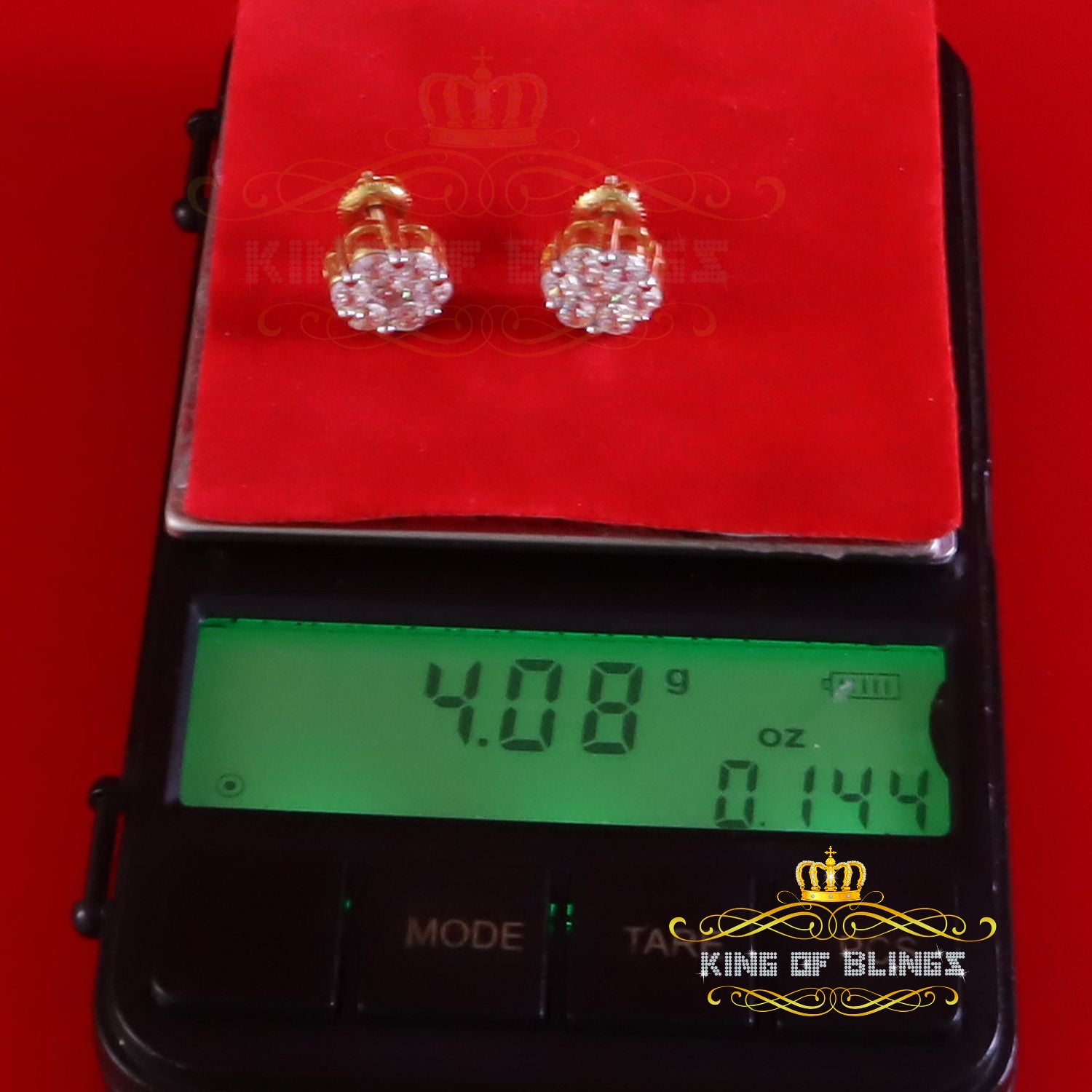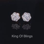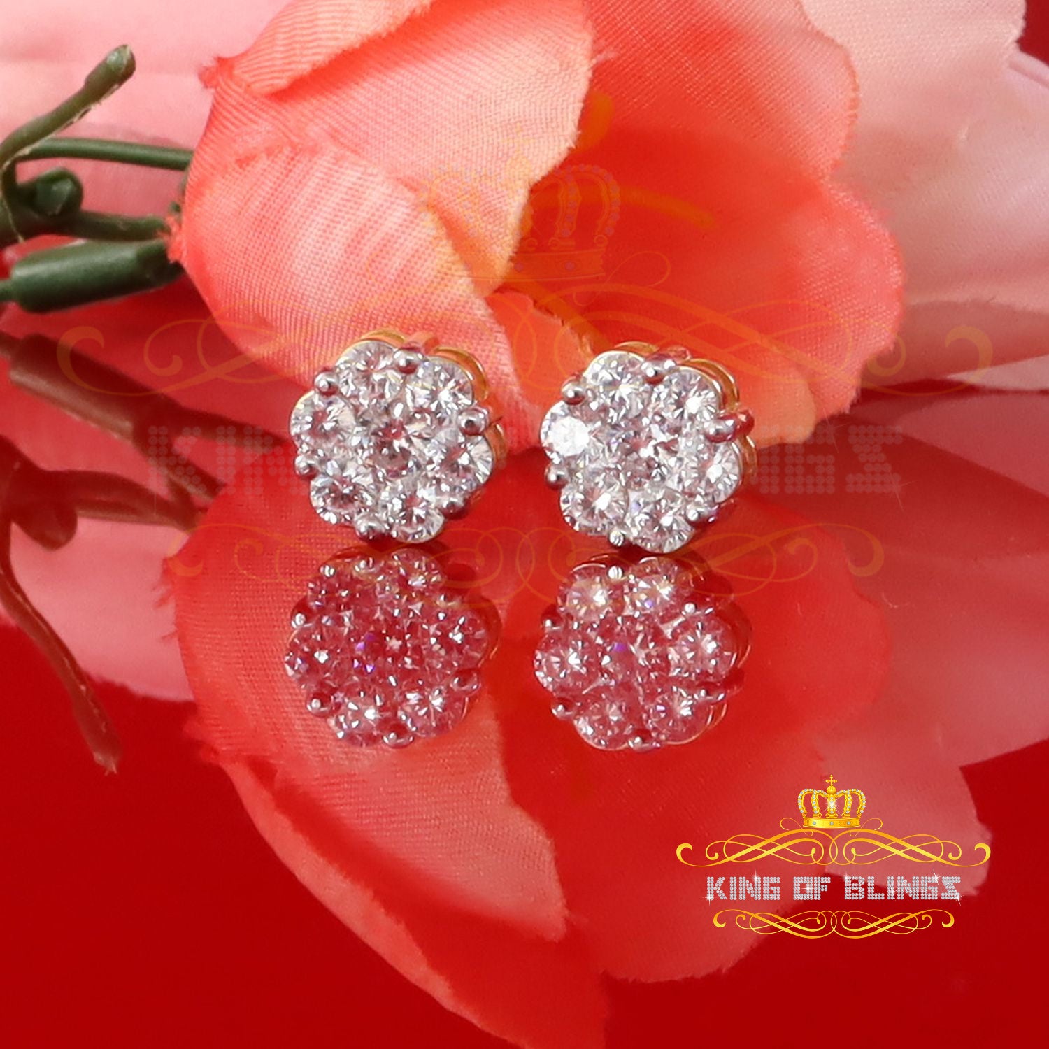 King of Bling's 925 Yellow Silver 0.96ct Cubic Zirconia Women's & Men's Hip Hop Floral Earrings