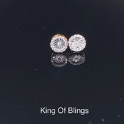 Step into a world of King Of Blings dazzling elegance and allure with our exclusive collection of Round Cubic Zirconia stud earrings featuring secure screw backs. Indulge yourself or surprise a loved one with these exquisite earrings crafted from premium 925 sterling silver with metal weight 1.30gm and CZ weight of 1.28ct, boasting a lustrous Yellow metal color that exudes sophistication. The real show-stoppers, however, are the meticulously chosen AAA Grade and 'D' Color Cubic Zircon stones. Radiating luxury and brilliance, these stones are carefully graded for clarity and color, ensuring a mesmerizing sparkle that rivals even the most precious diamonds.