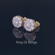 King of Bling's 925 Yellow Silver 2.88ct Cubic Zirconia Women's & Men's Hip Hop Floral Earrings