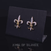 King of Bling's 925 Yellow Silver Fleur de Lis Screw Back 0.25ct Cubic Zirconia Ladies Earrings