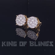 King of Bling's 925 Yellow Silver Screw Back 1.44ct Cubic Zirconia Round Earrings For Ladies