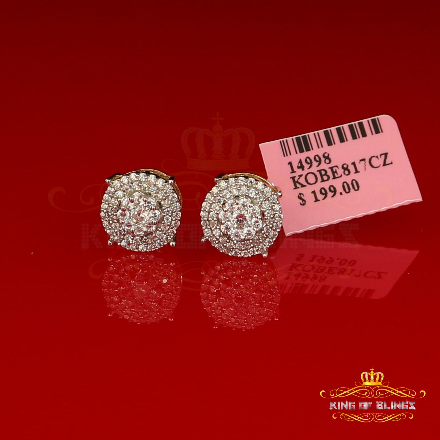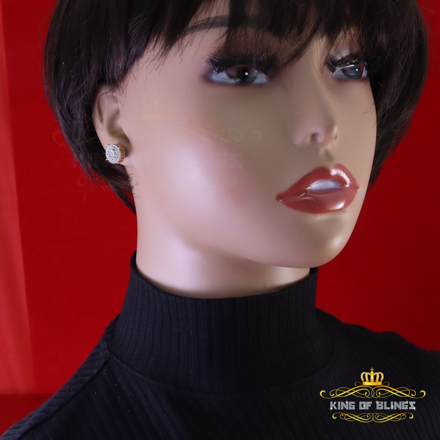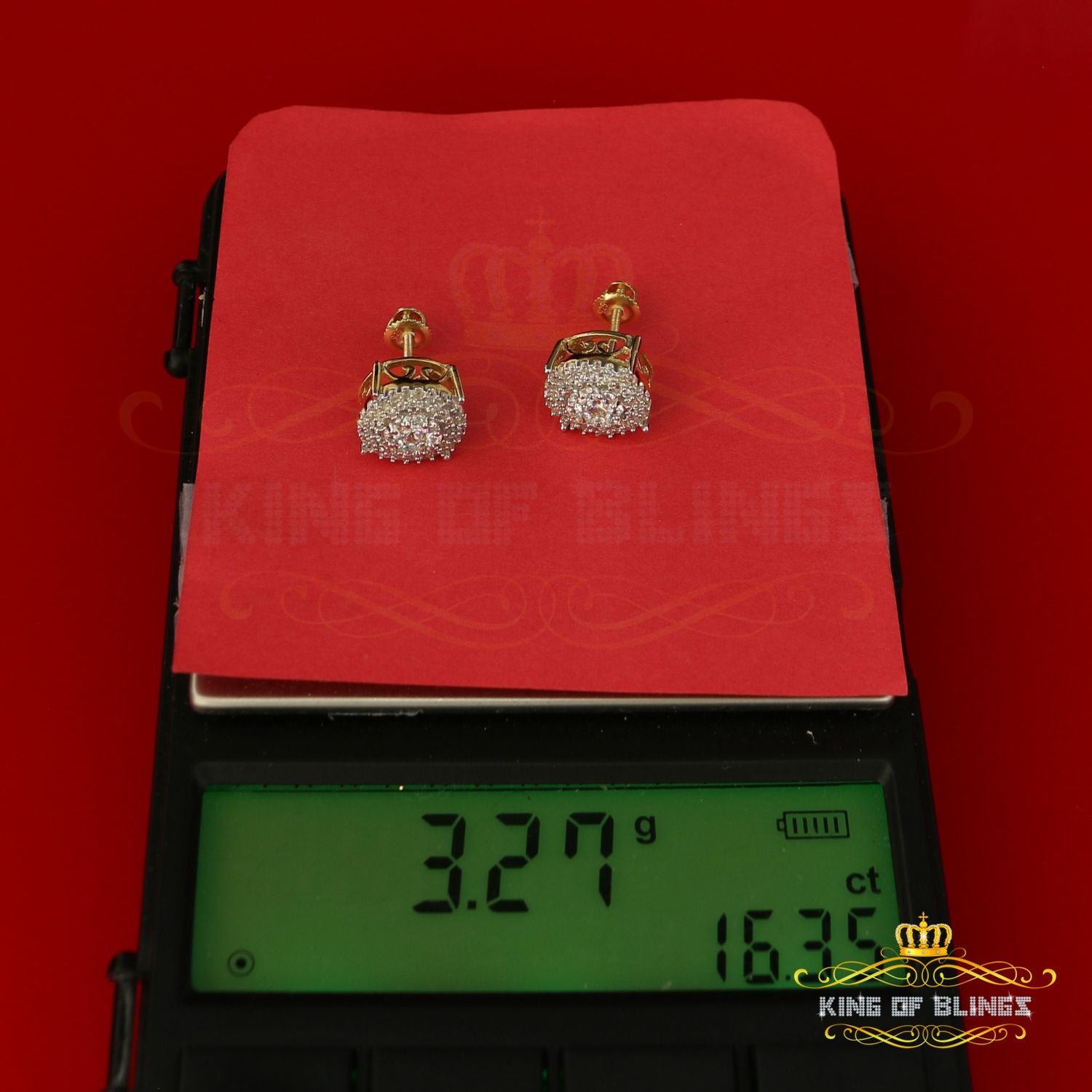 Step into a world of King Of Blings dazzling elegance and allure with our exclusive collection of Round Cubic Zirconia stud earrings featuring secure screw backs. Indulge yourself or surprise a loved one with these exquisite earrings crafted from premium 925 sterling silver with metal weight 3.27gm and CZ weight of 0.83ct, boasting a lustrous Yellow metal color that exudes sophistication. The real show-stoppers, however, are the meticulously chosen AAA Grade and 'D' Color Cubic Zircon stones. Radiating luxury and brilliance, these stones are carefully graded for clarity and color, ensuring a mesmerizing sparkle that rivals even the most precious diamonds.