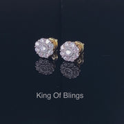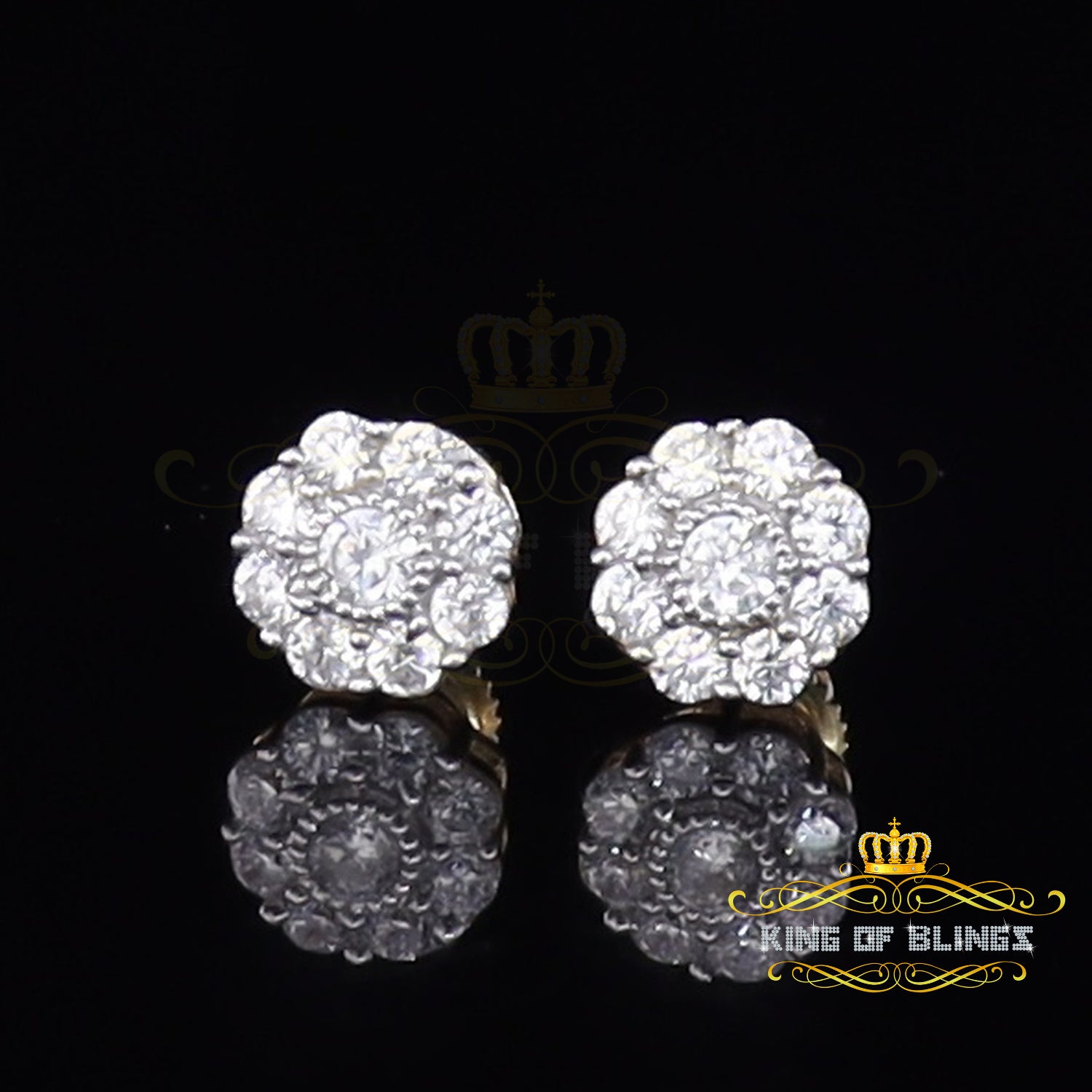 King of Bling's 925 Yellow Sterling Silver 1.18ct Cubic Zirconia Women's Hip Hop Flower Earrings