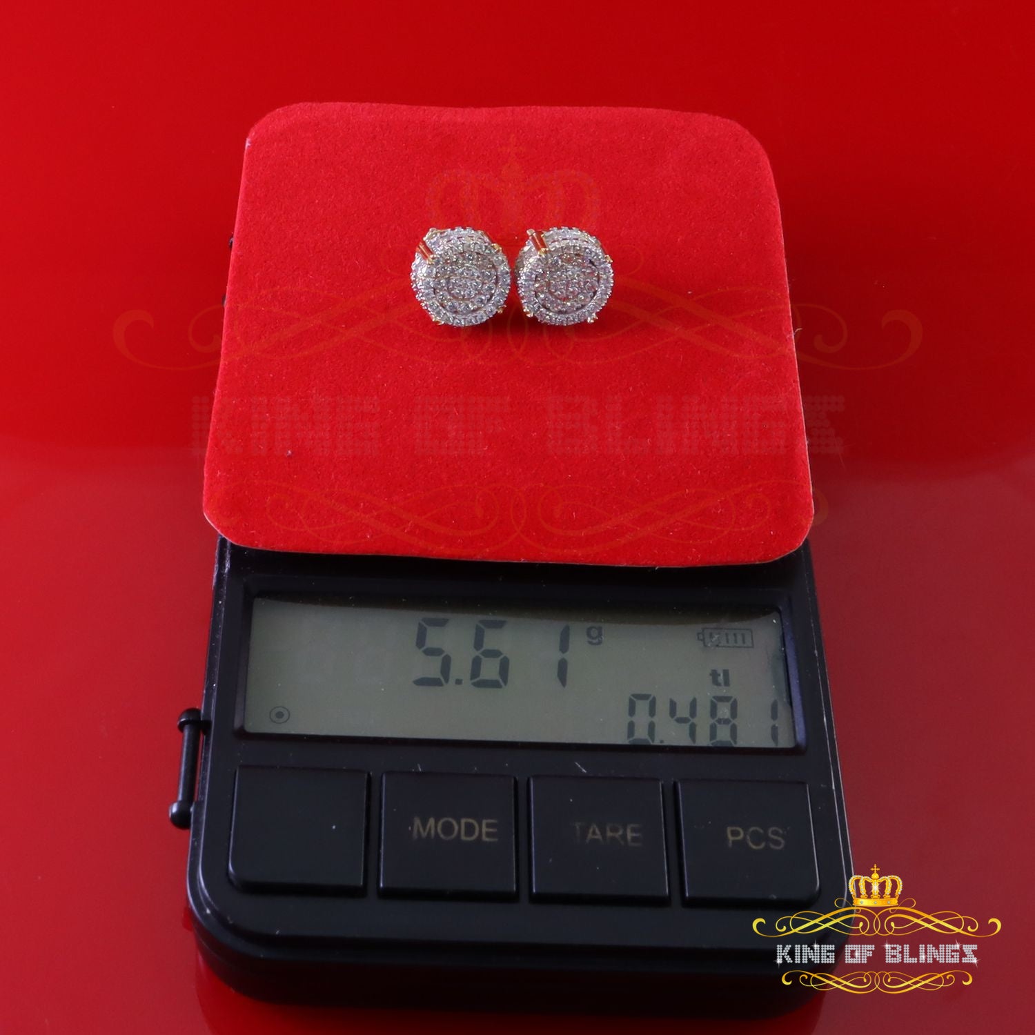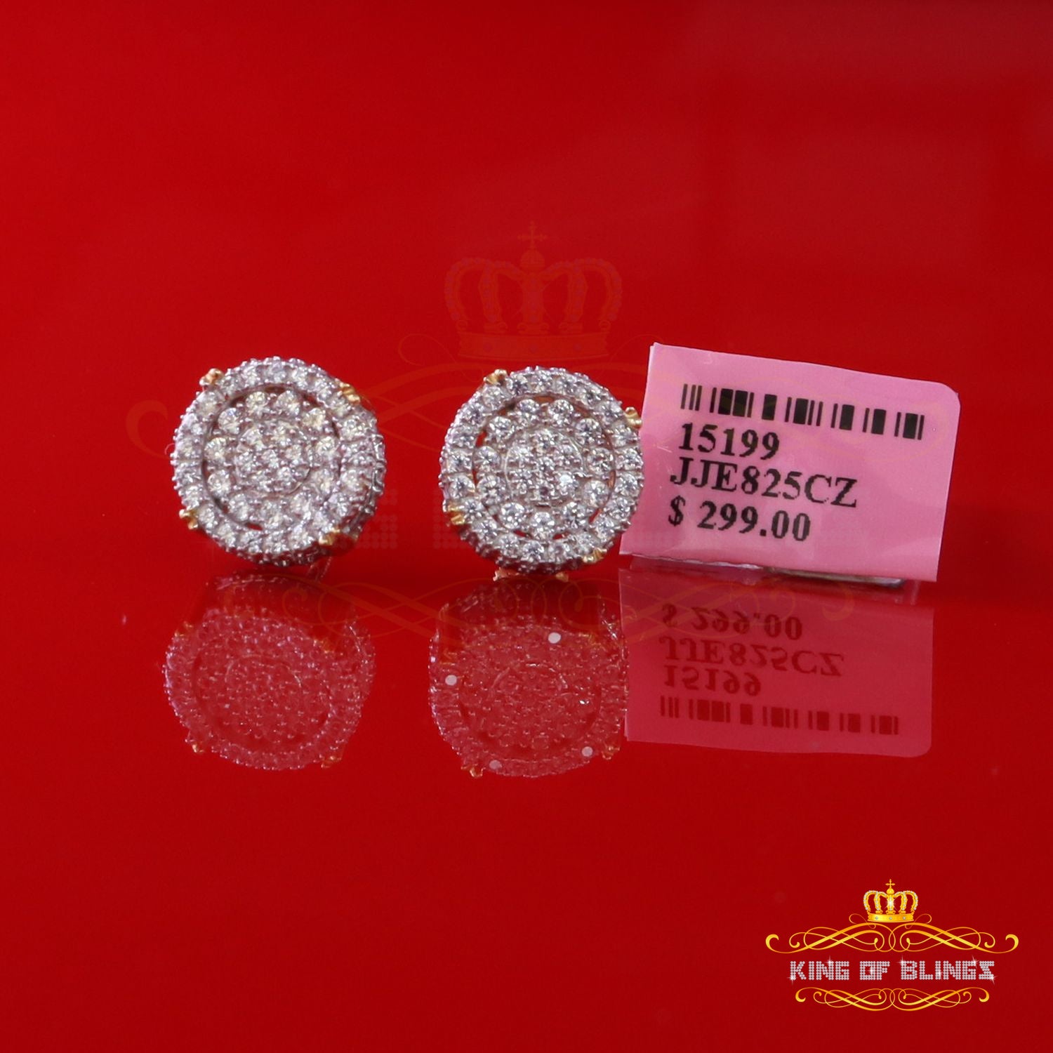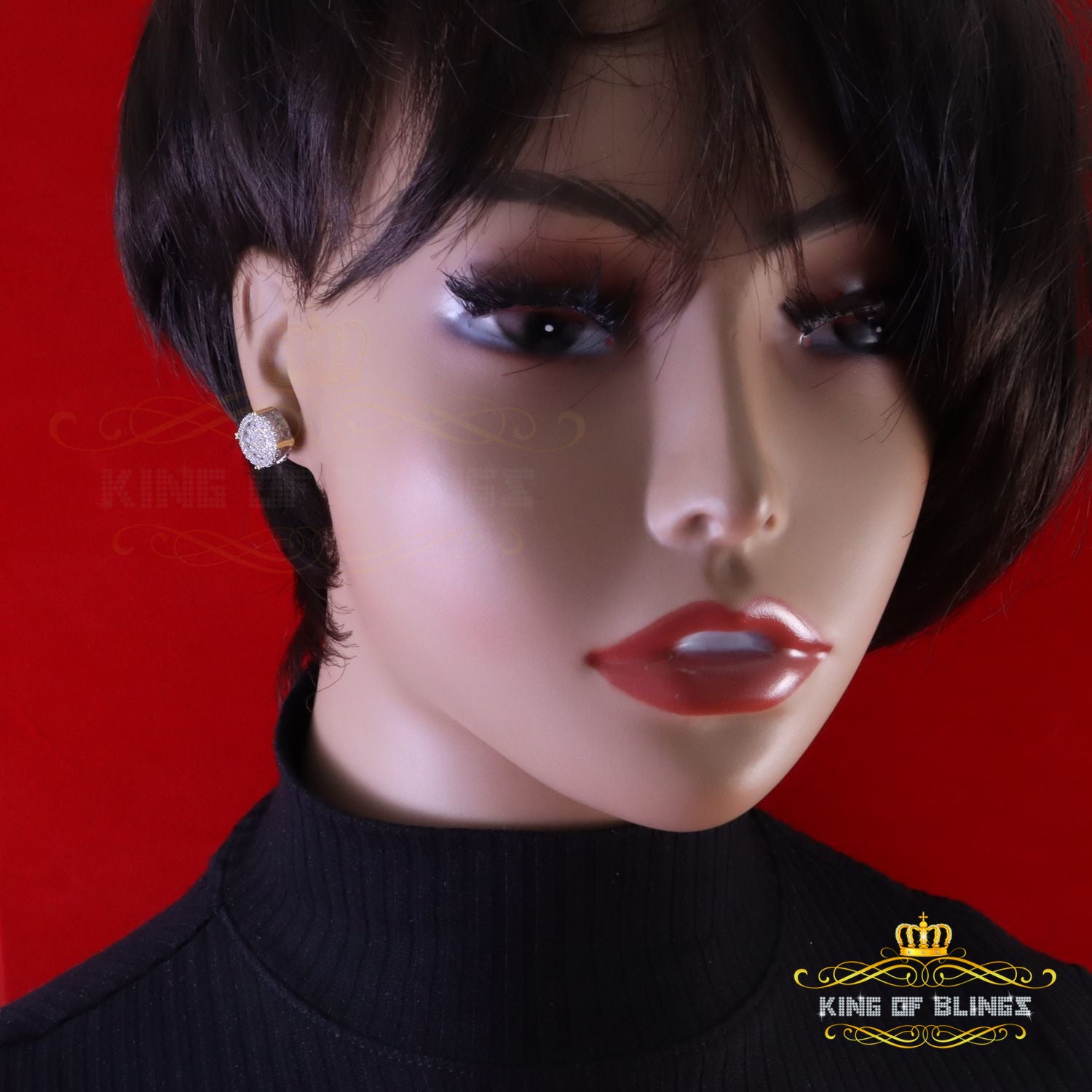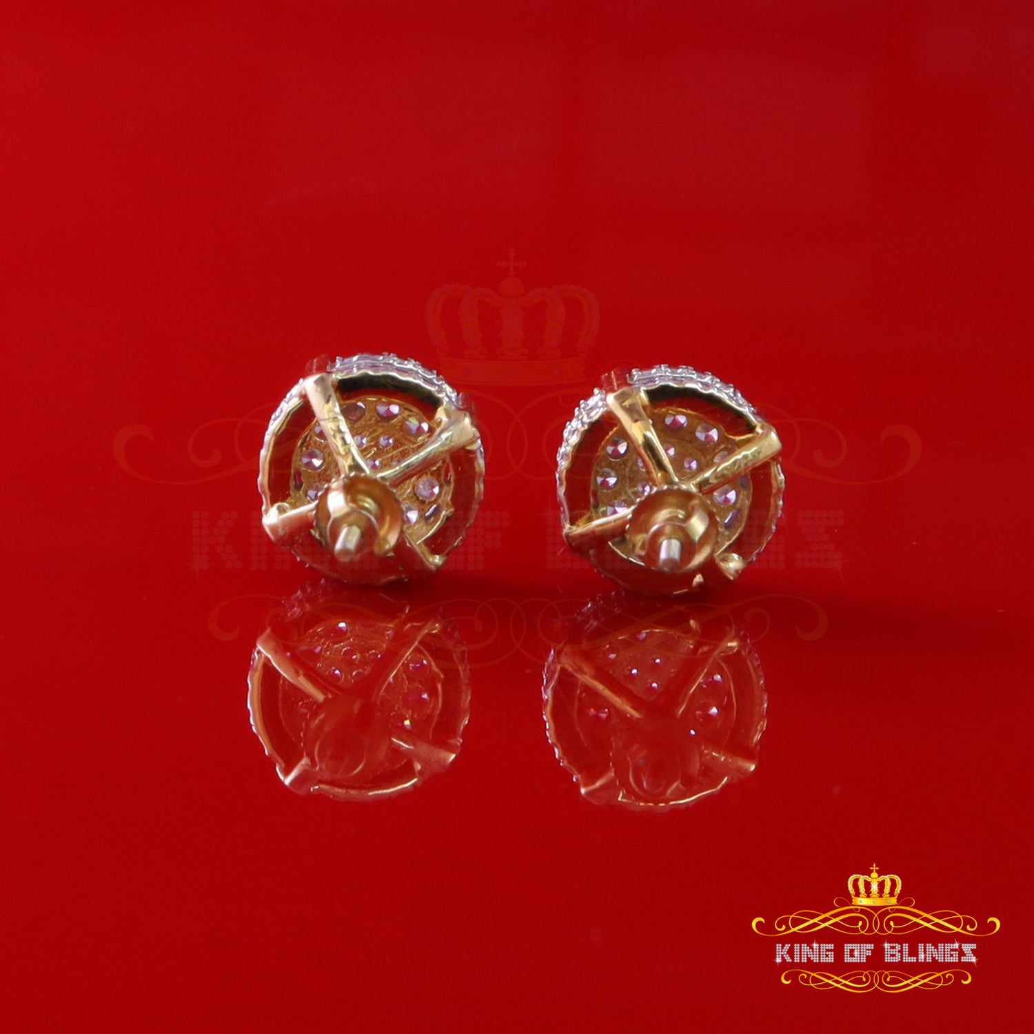 Step into a world of King Of Blings dazzling elegance and allure with our exclusive collection of Round Cubic Zirconia stud earrings featuring secure screw backs. Indulge yourself or surprise a loved one with these exquisite earrings crafted from premium 925 sterling silver with metal weight 5.35gm and CZ weight of 1.32ct, boasting a lustrous Yellow metal color that exudes sophistication. The real show-stoppers, however, are the meticulously chosen AAA Grade and 'D' Color Cubic Zircon stones. Radiating luxury and brilliance, these stones are carefully graded for clarity and color, ensuring a mesmerizing sparkle that rivals even the most precious diamonds.
