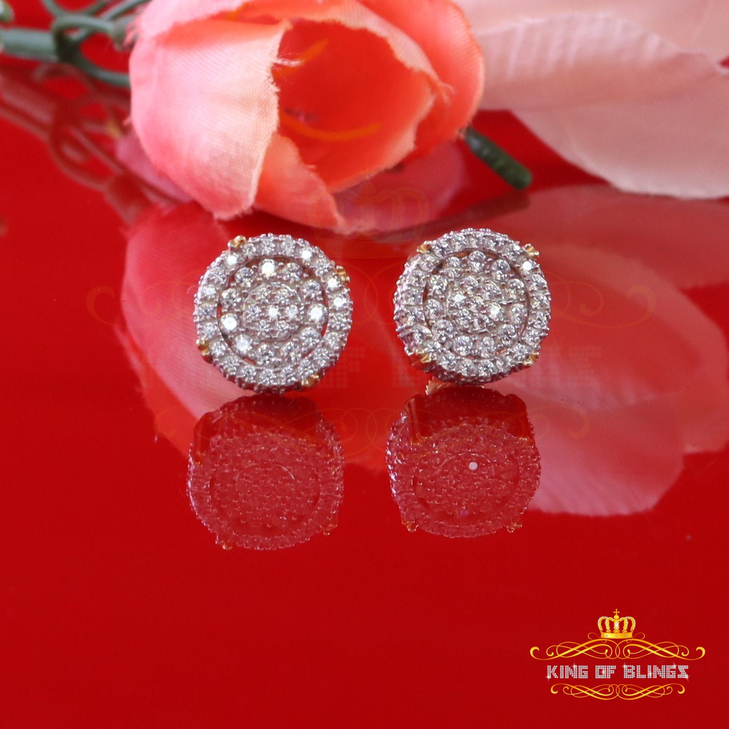 King of Bling's 925 Yellow Sterling Silver 1.32ct Cubic Zirconia Women's Hip Hop Round Earrings