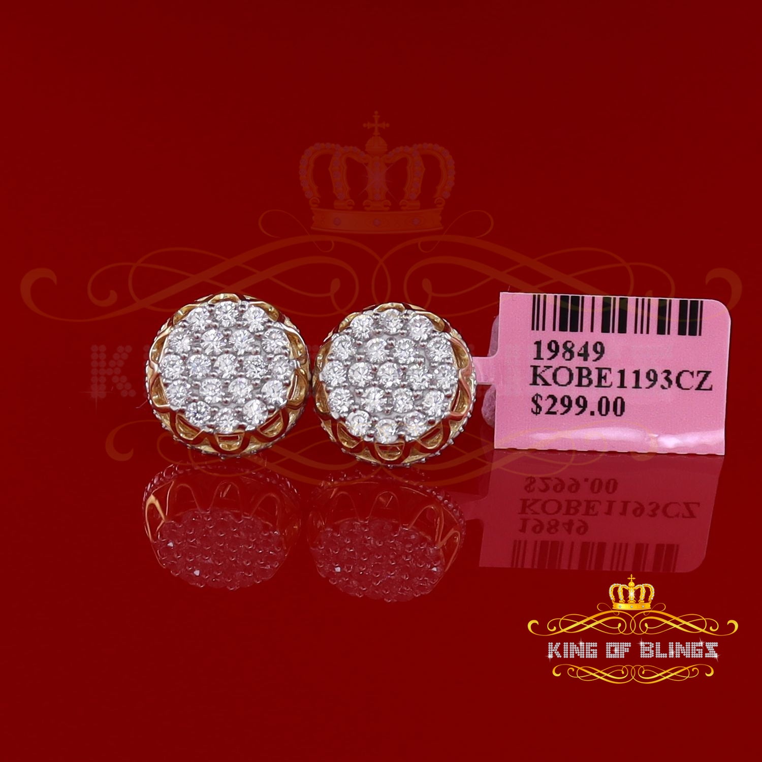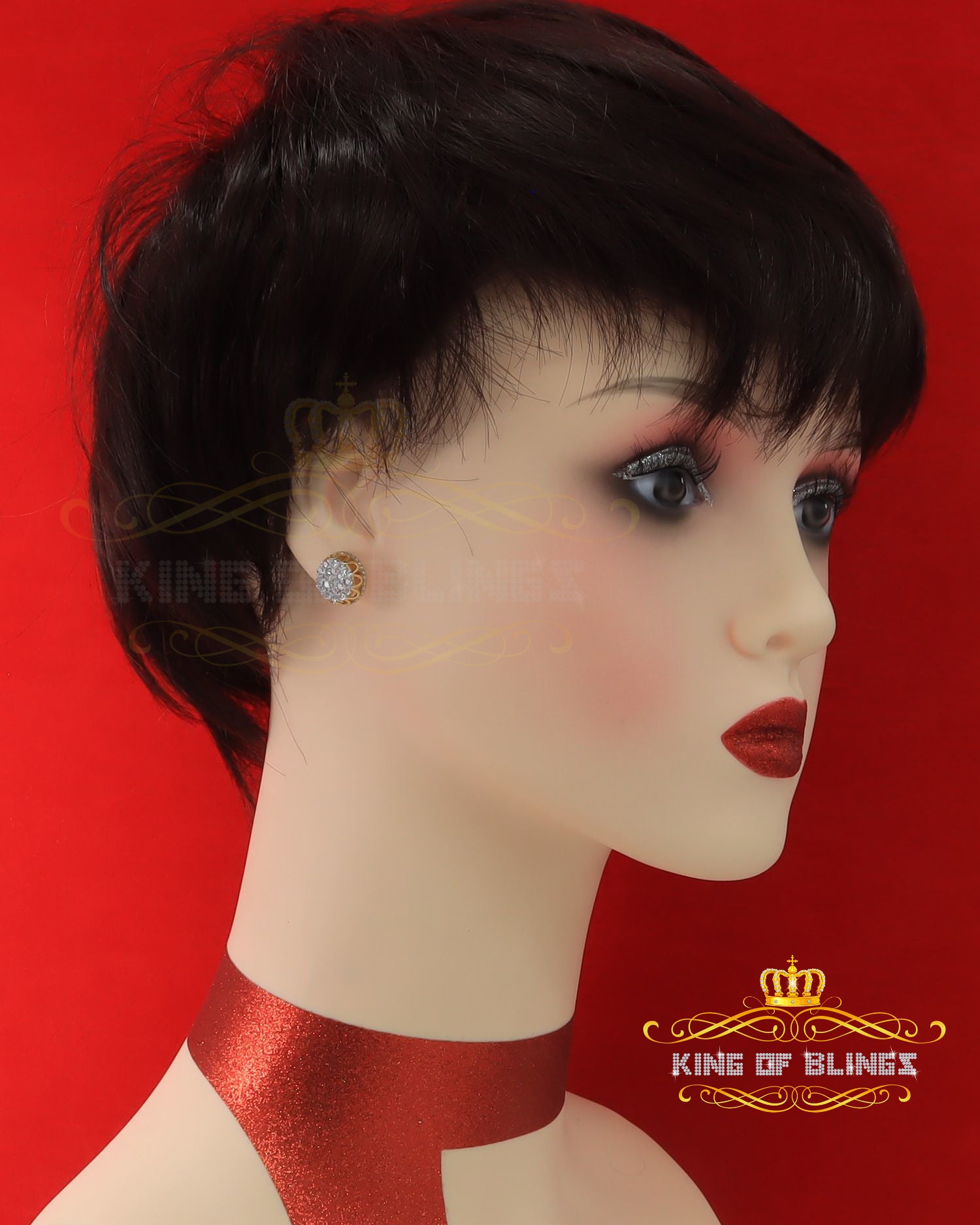 King of Bling's 925 Yellow Sterling Silver 2.28ct Cubic Zirconia Women's Hip Hop Flower Earrings