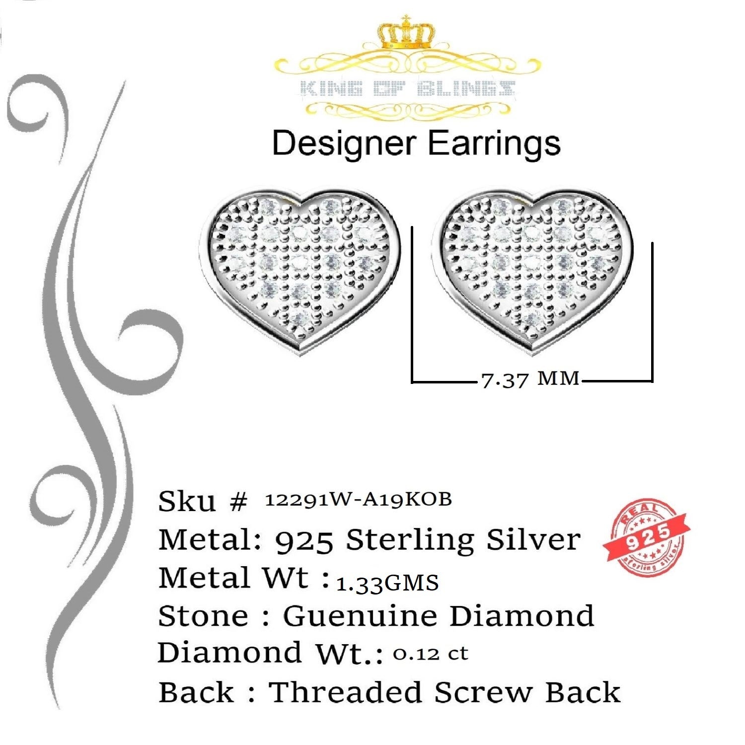 King Of Bling's Aretes Para 925 Sterling White Silver 0.12ct Diamond Women & Men Stud Earrings