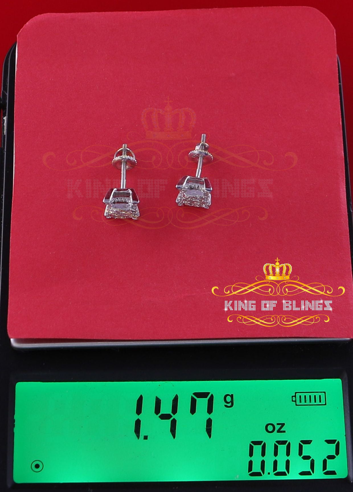Presented as new with tags in the original packaging, these Silver Diamond earrings are ready to add a touch of sophistication to any outfit, making them a perfect choice for those seeking a combination of style and quality appealing to both men and women with their captivating sparkle. rest assured that the "King Of Blings" brand guarantees exceptional craftsmanship and materials. these womens stud earrings make a perfect gift or a stylish addition to your own jewelry collection,