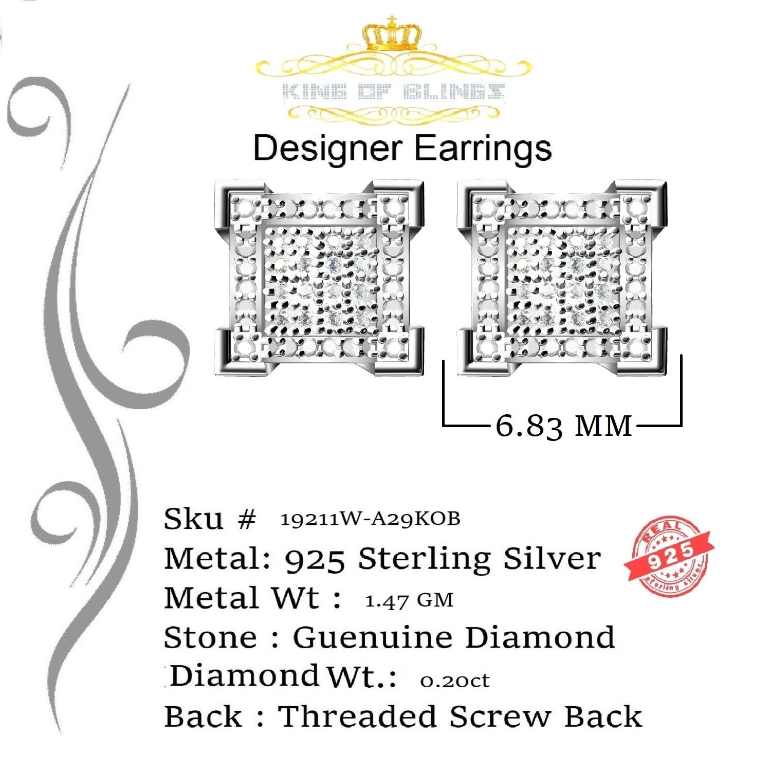 King Of Bling's Aretes Para 925 Sterling White Silver 0.20ct Diamond Women & Men Stud Earrings