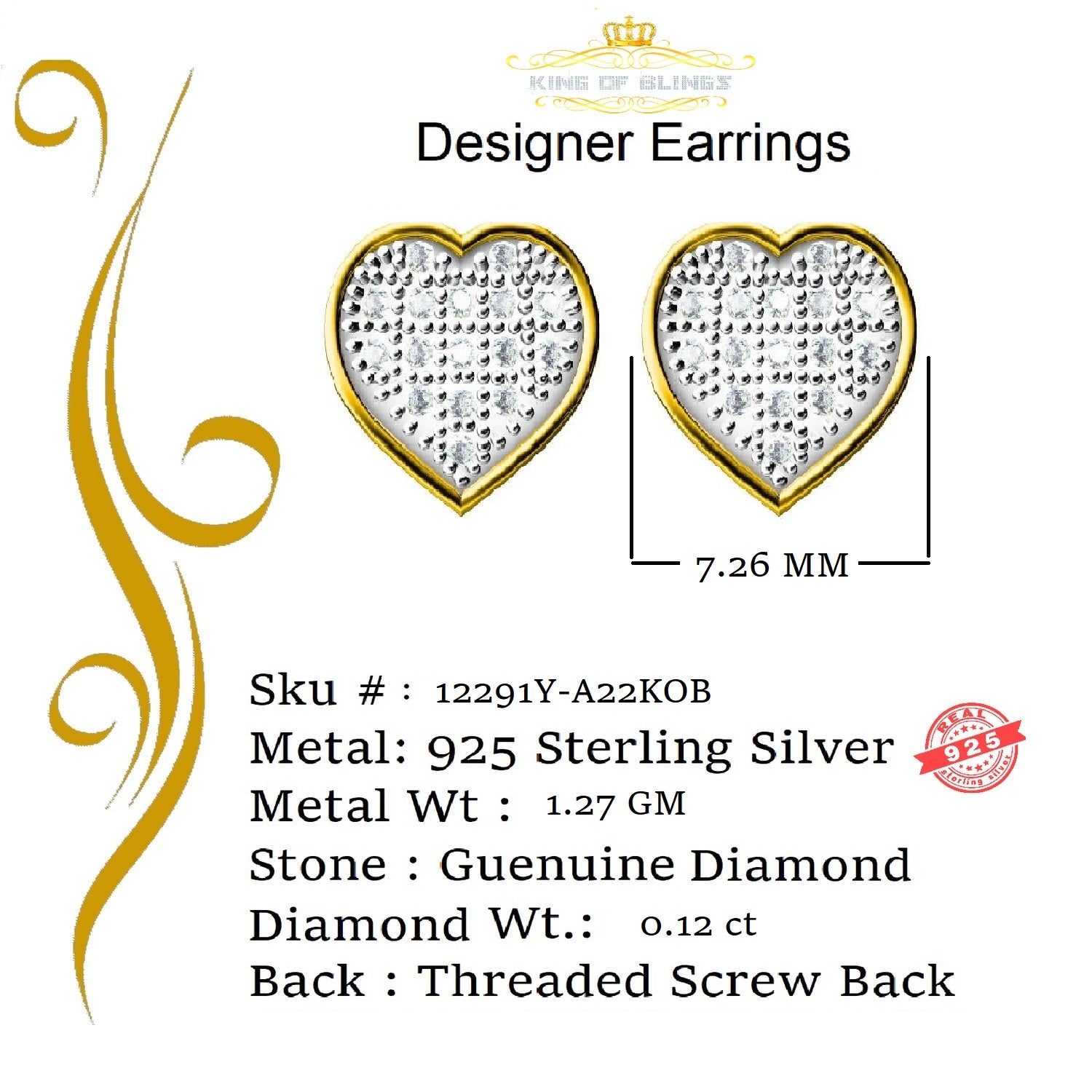 King of Blings-Aretes Para 925 Sterling Yellow Silver 0.12ct Diamond Women & Men Stud Earring