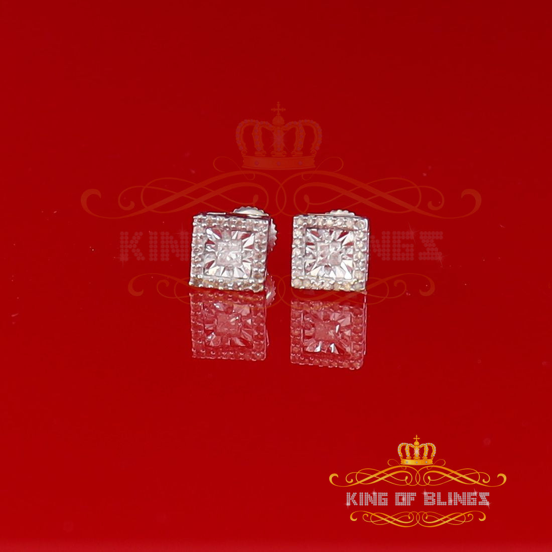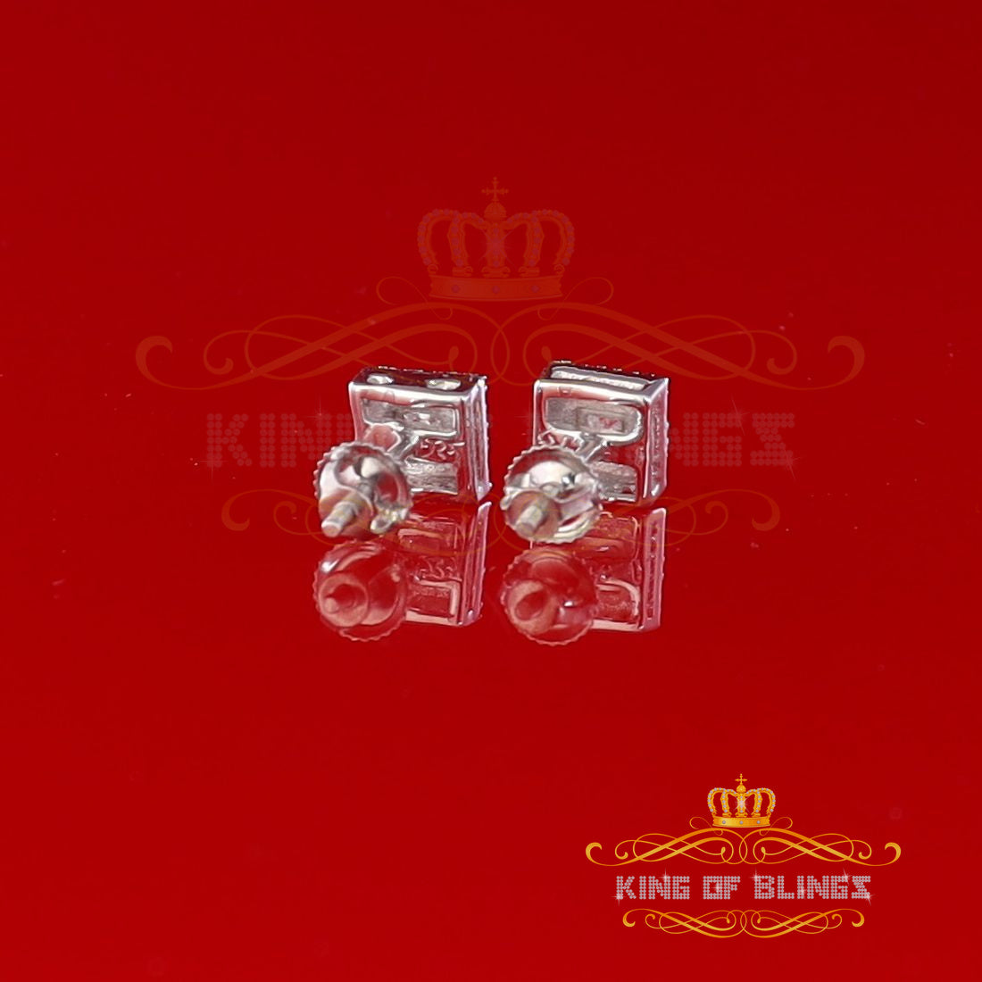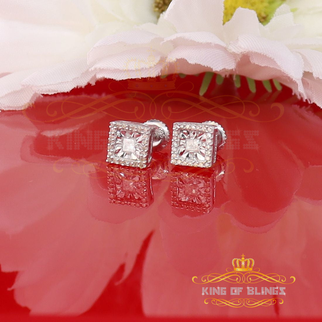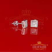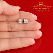 King Of Bling's Aretes Para Hombre 925 White Silver 0.20ct Diamond Women's Square Earrings