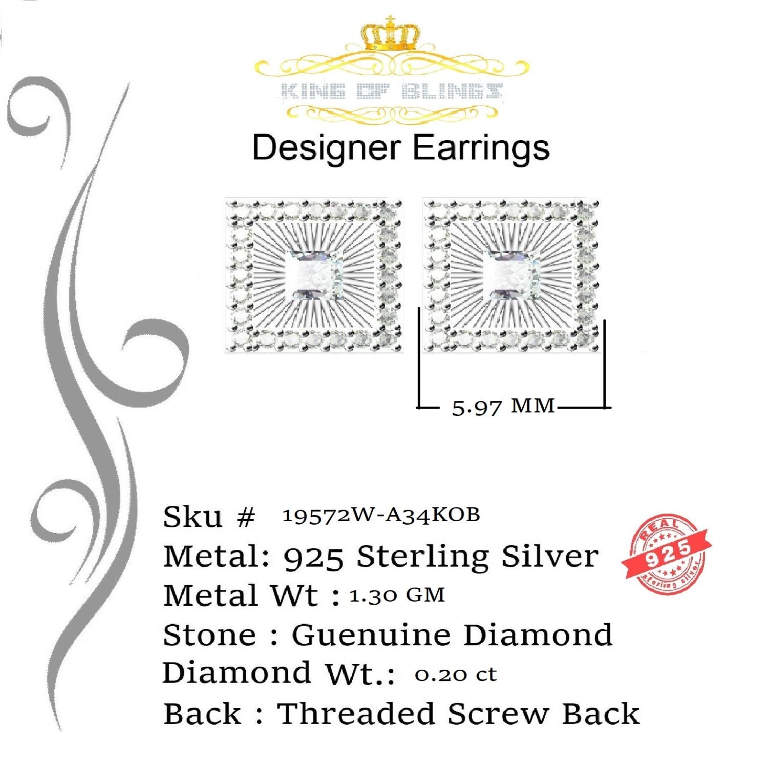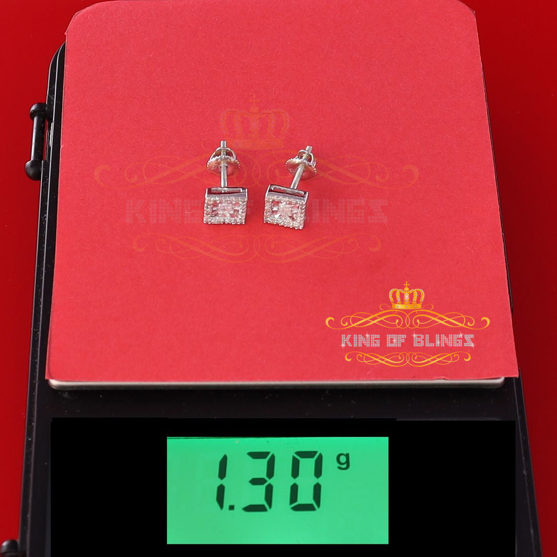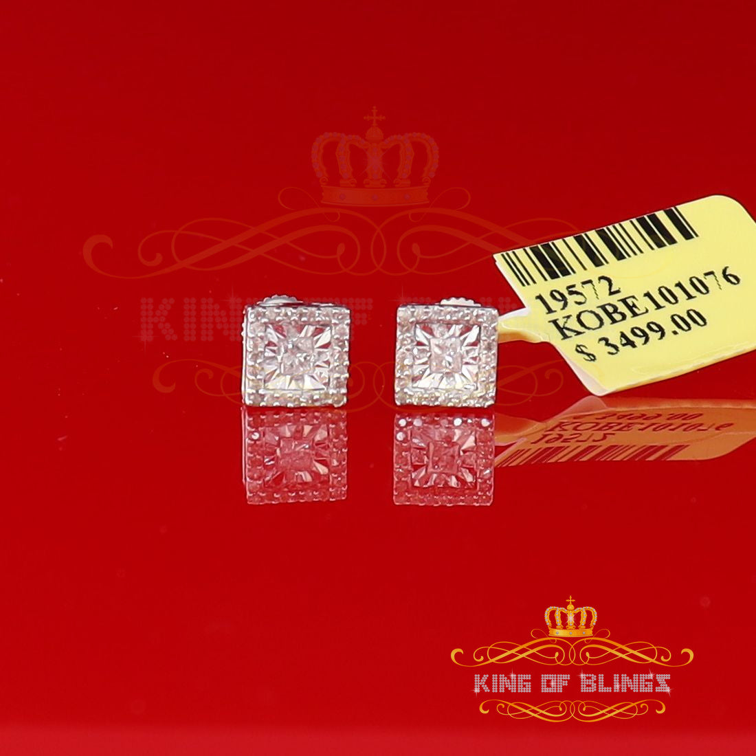 Presented as new with tags in the original packaging, these Silver Diamond earrings are ready to add a touch of sophistication to any outfit, making them a perfect choice for those seeking a combination of style and quality appealing to both men and women with their captivating sparkle. rest assured that the "King Of Blings" brand guarantees exceptional craftsmanship and materials. these womens stud earrings make a perfect gift or a stylish addition to your own jewelry collection,