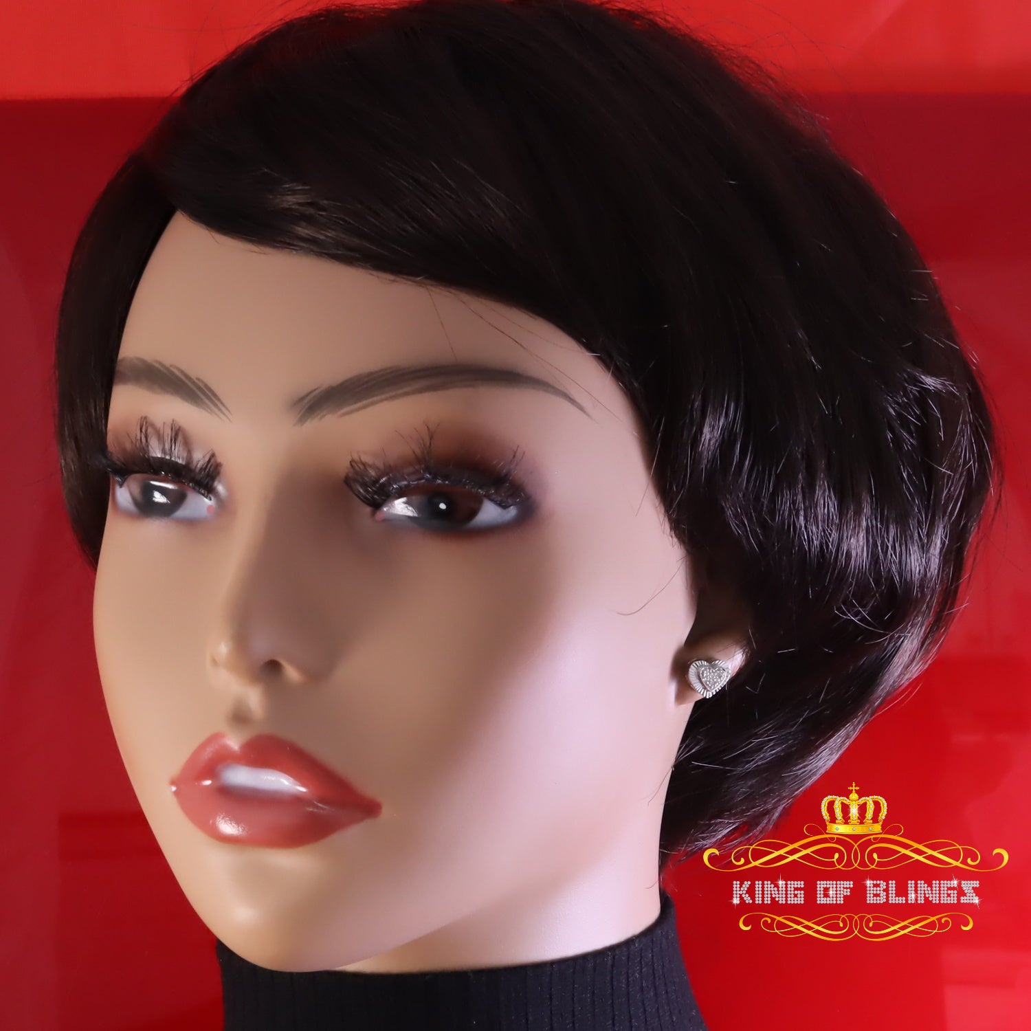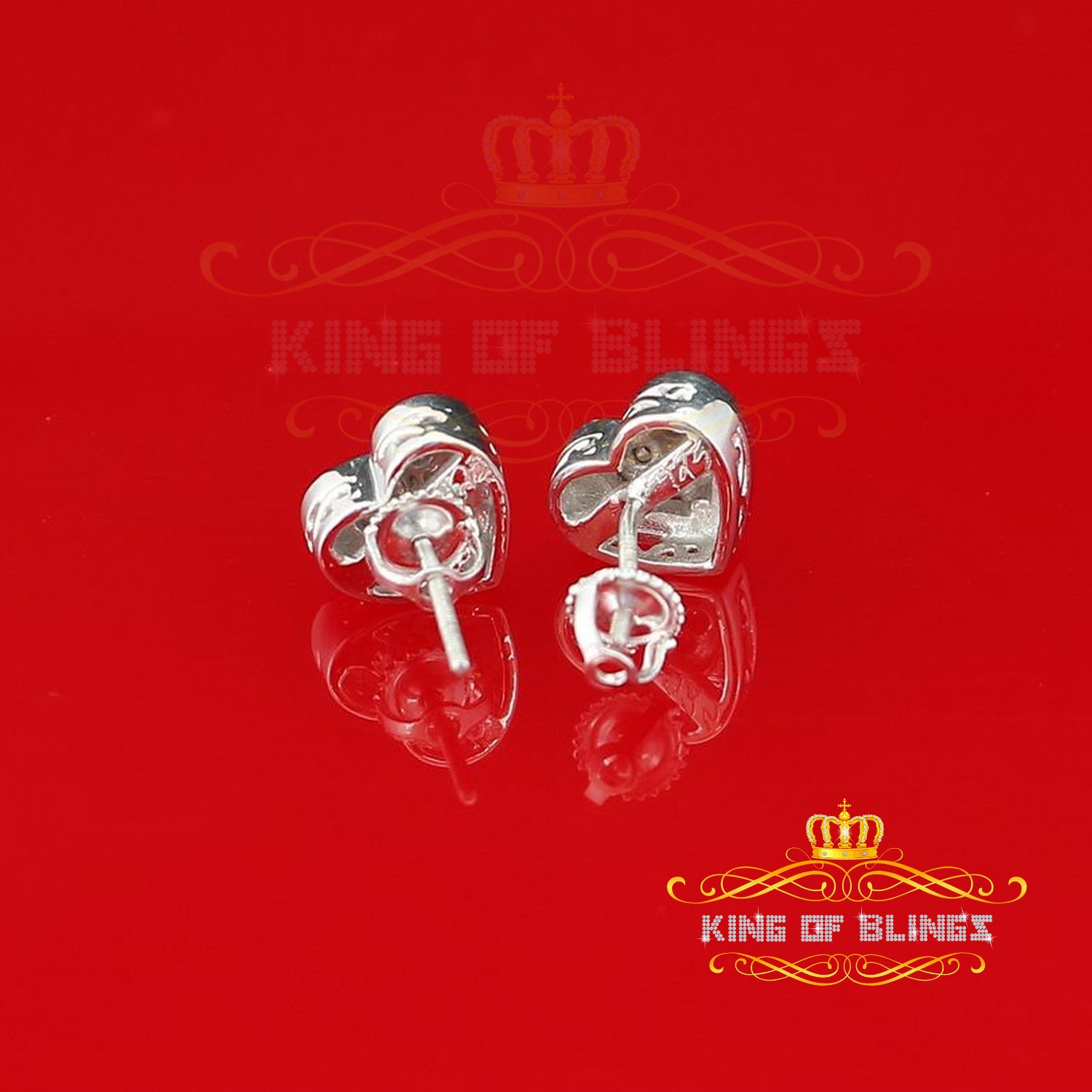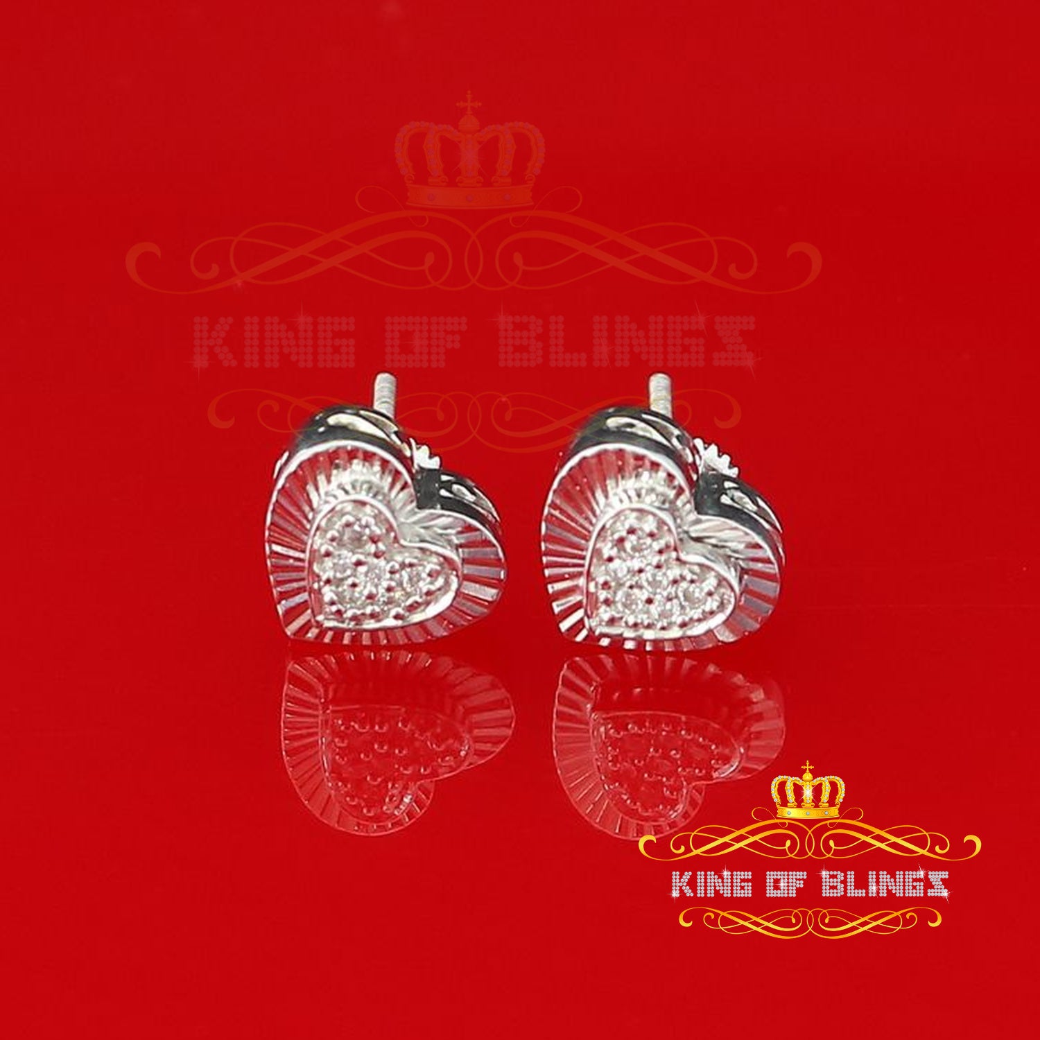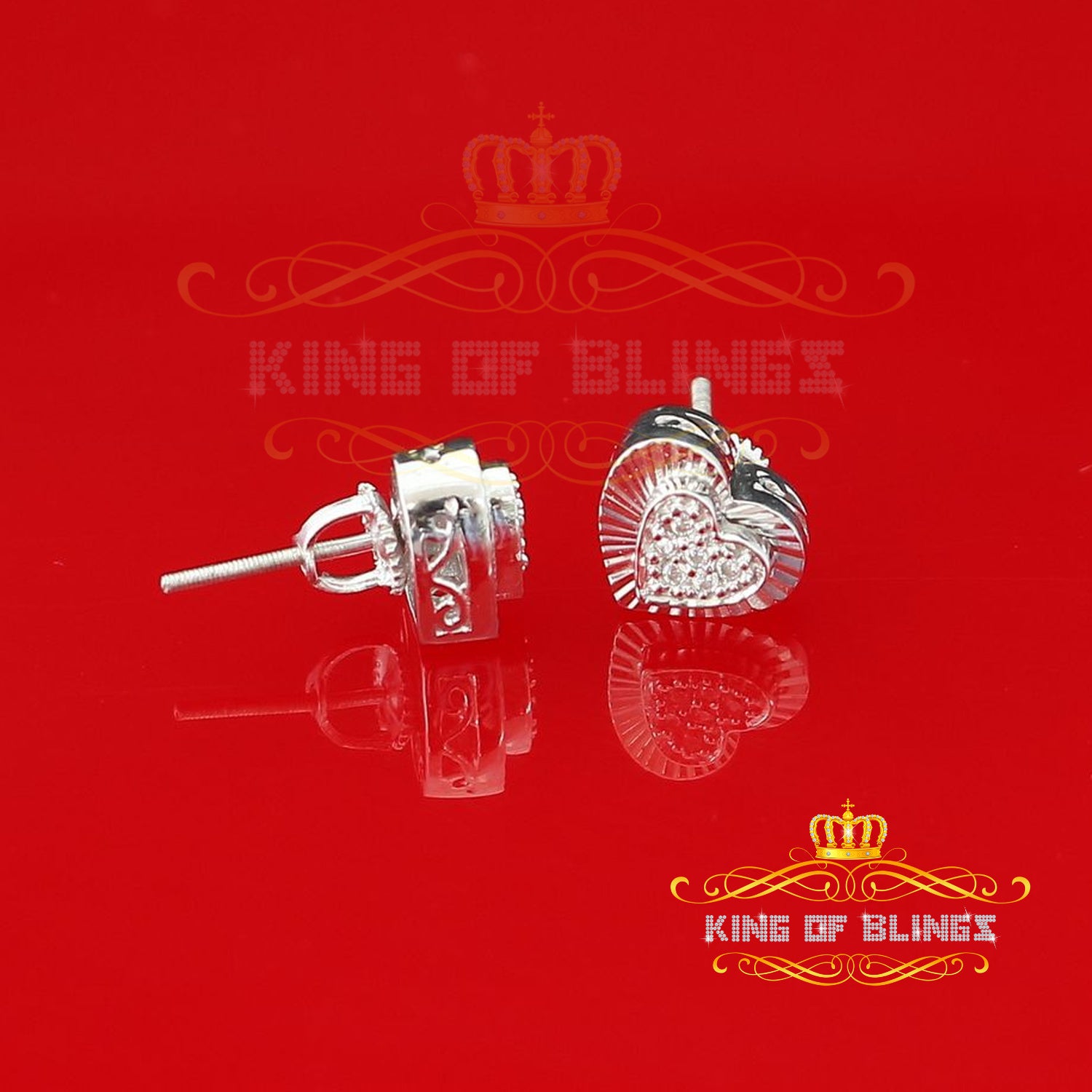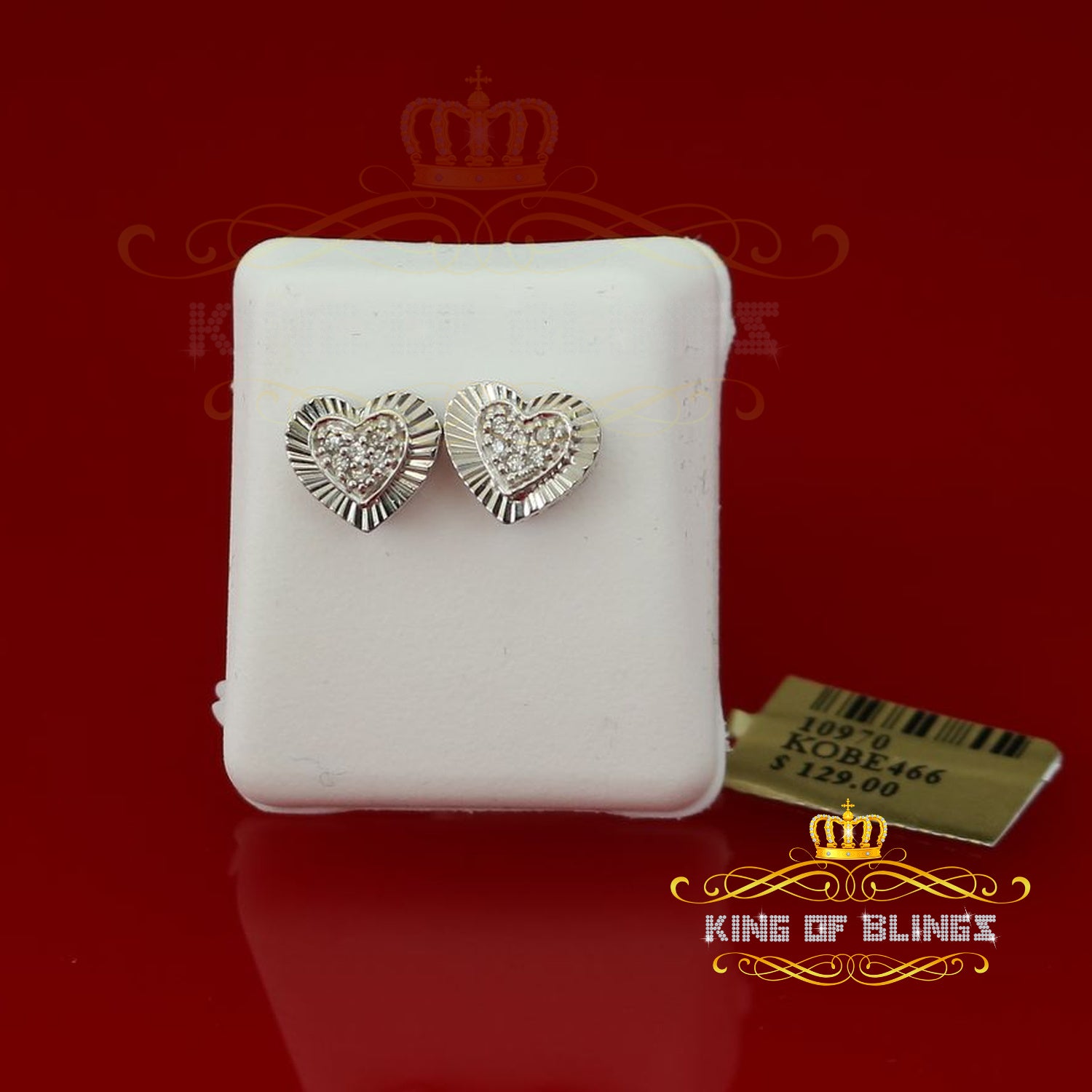 King of Blings- Aretes Para Hombre 925 White Silver 0.24ct Cubic Zirconia Heart Women's Earrings