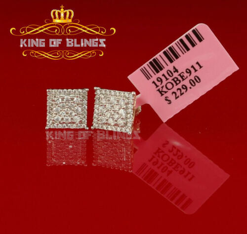 King of Blings- Aretes Para Hombre 925 White Silver 0.96ct Cubic Zirconia Square Women Earring