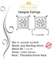Step into a world of King Of Blings dazzling elegance and allure with our exclusive collection of Square Cubic Zirconia stud earrings featuring secure screw backs. Indulge yourself or surprise a loved one with these exquisite earrings crafted from premium 925 sterling silver with metal weight 2.43gm and CZ weight of 0.96ct, boasting a lustrous White metal color that exudes sophistication. The real show-stoppers, however, are the meticulously chosen AAA Grade and 'D' Color Cubic Zircon stones. Radiating luxury and brilliance, these stones are carefully graded for clarity and color, ensuring a mesmerizing sparkle that rivals even the most precious diamonds.