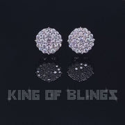 King of Blings- Aretes Para Hombre 925 White Silver 1.20ct Cubic Zirconia Round Women's Earrings