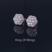 King of Blings- Aretes Para Hombre 925 White Silver 1.74ct Cubic Zirconia Flower Women's Earring