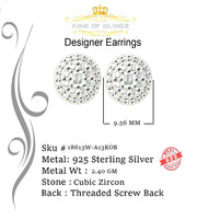 Step into a world of King Of Blings dazzling elegance and allure with our exclusive collection of Round Cubic Zirconia stud earrings featuring secure screw backs. Indulge yourself or surprise a loved one with these exquisite earrings crafted from premium 925 sterling silver with metal weight 2.40gm and CZ weight of 1.86ct, boasting a lustrous White metal color that exudes sophistication. The real show-stoppers, however, are the meticulously chosen AAA Grade and 'D' Color Cubic Zircon stones. Radiating luxury and brilliance, these stones are carefully graded for clarity and color, ensuring a mesmerizing sparkle that rivals even the most precious diamonds.