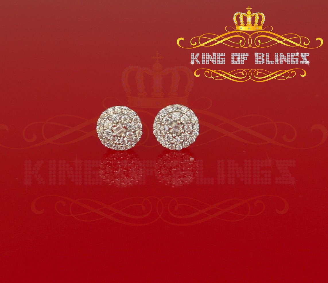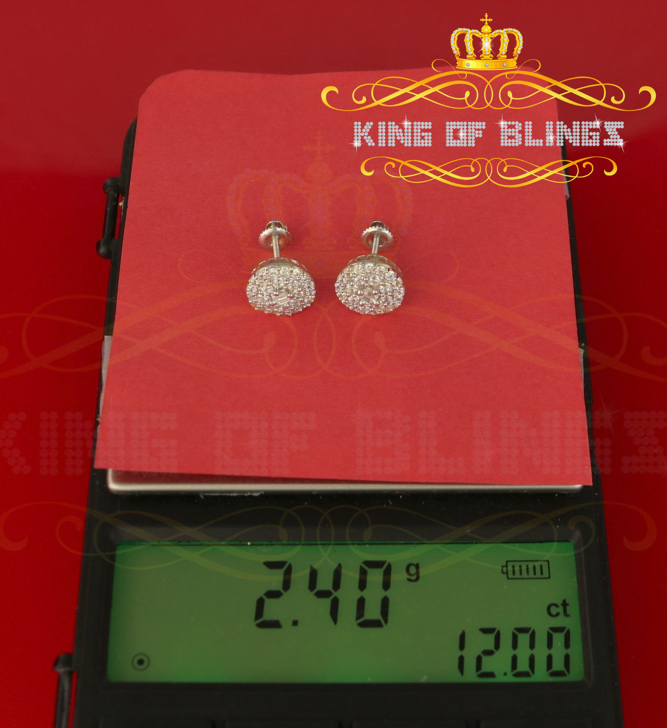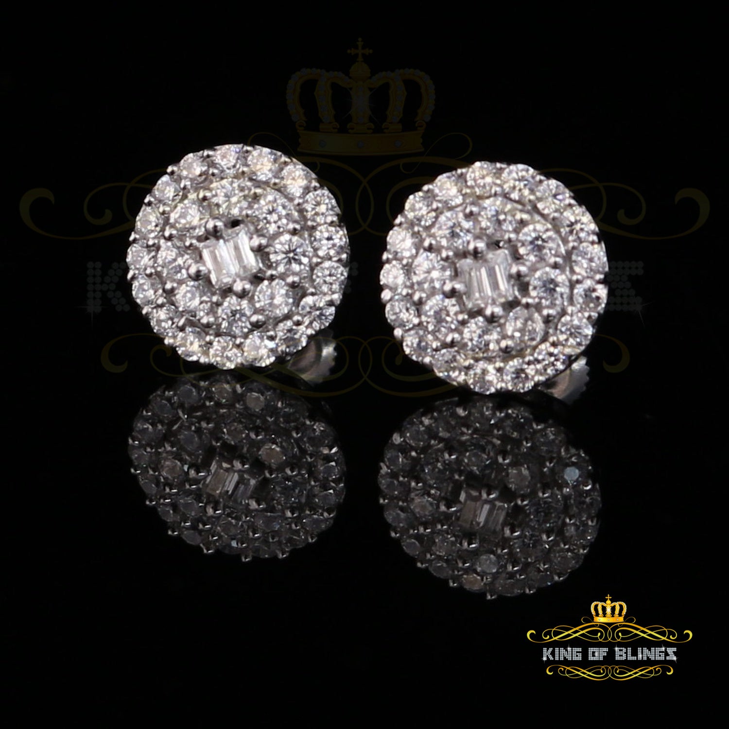 King of Blings- Aretes Para Hombre 925 White Silver 1.86ct Cubic Zirconia Round Women's Earrings