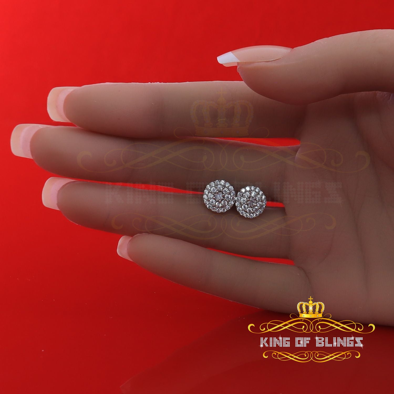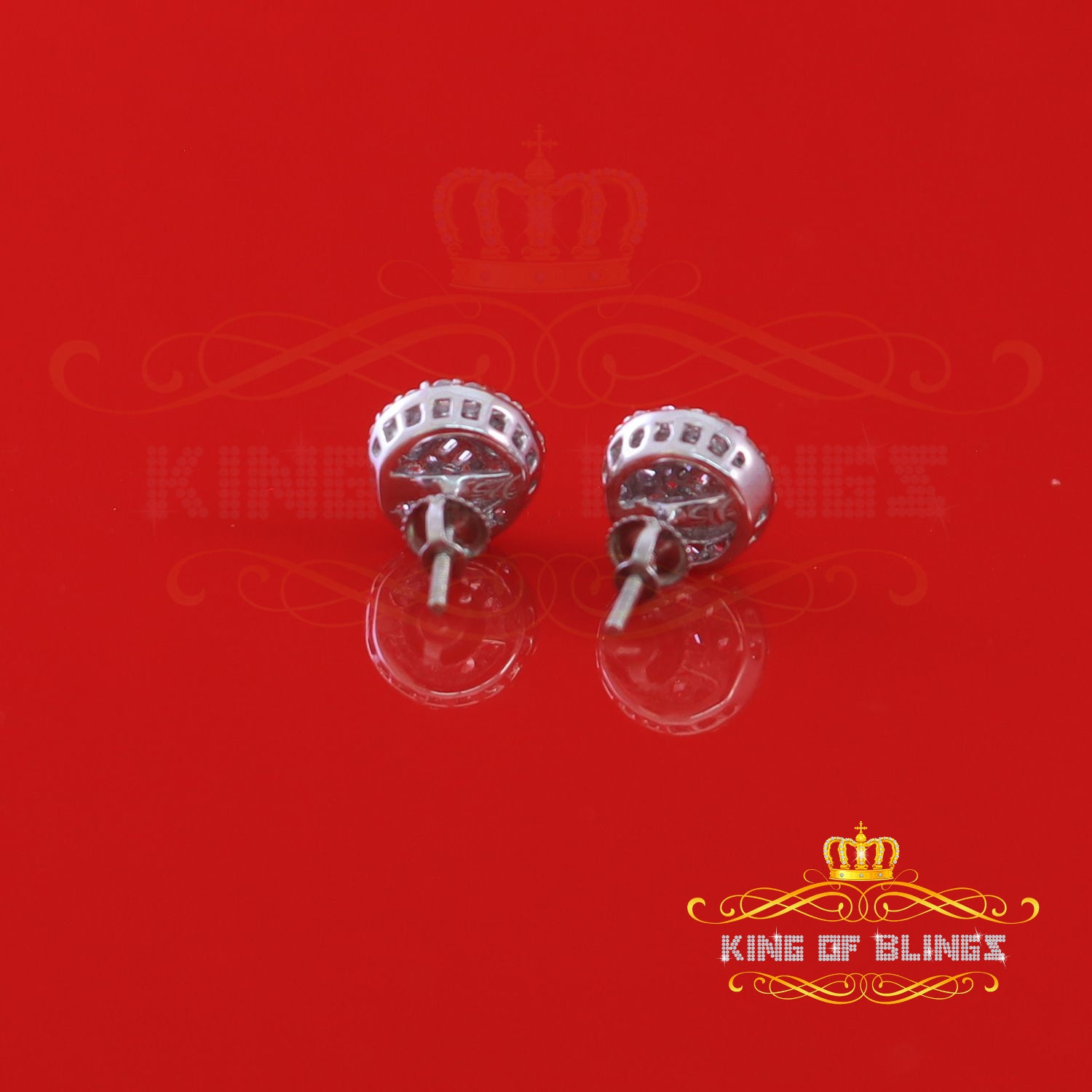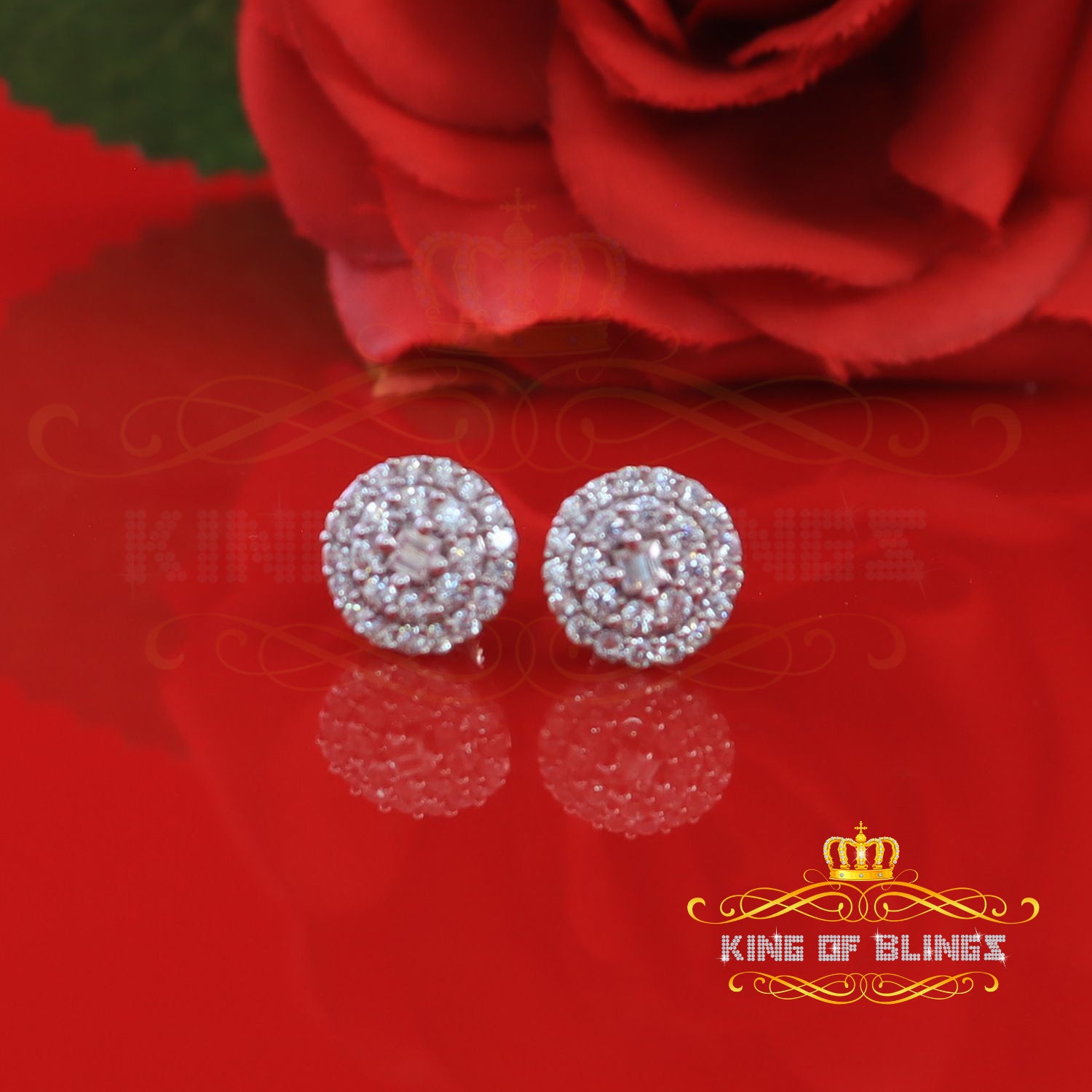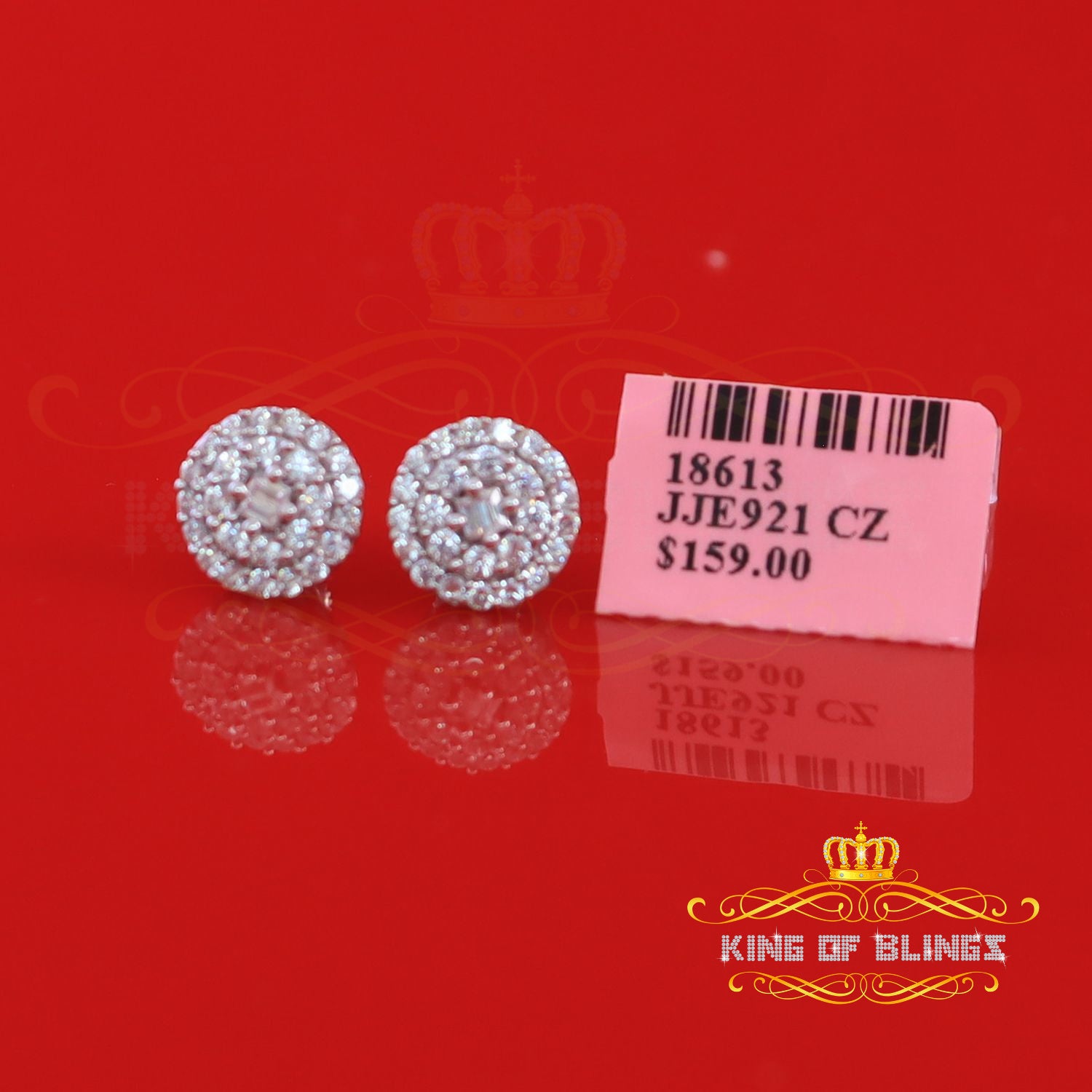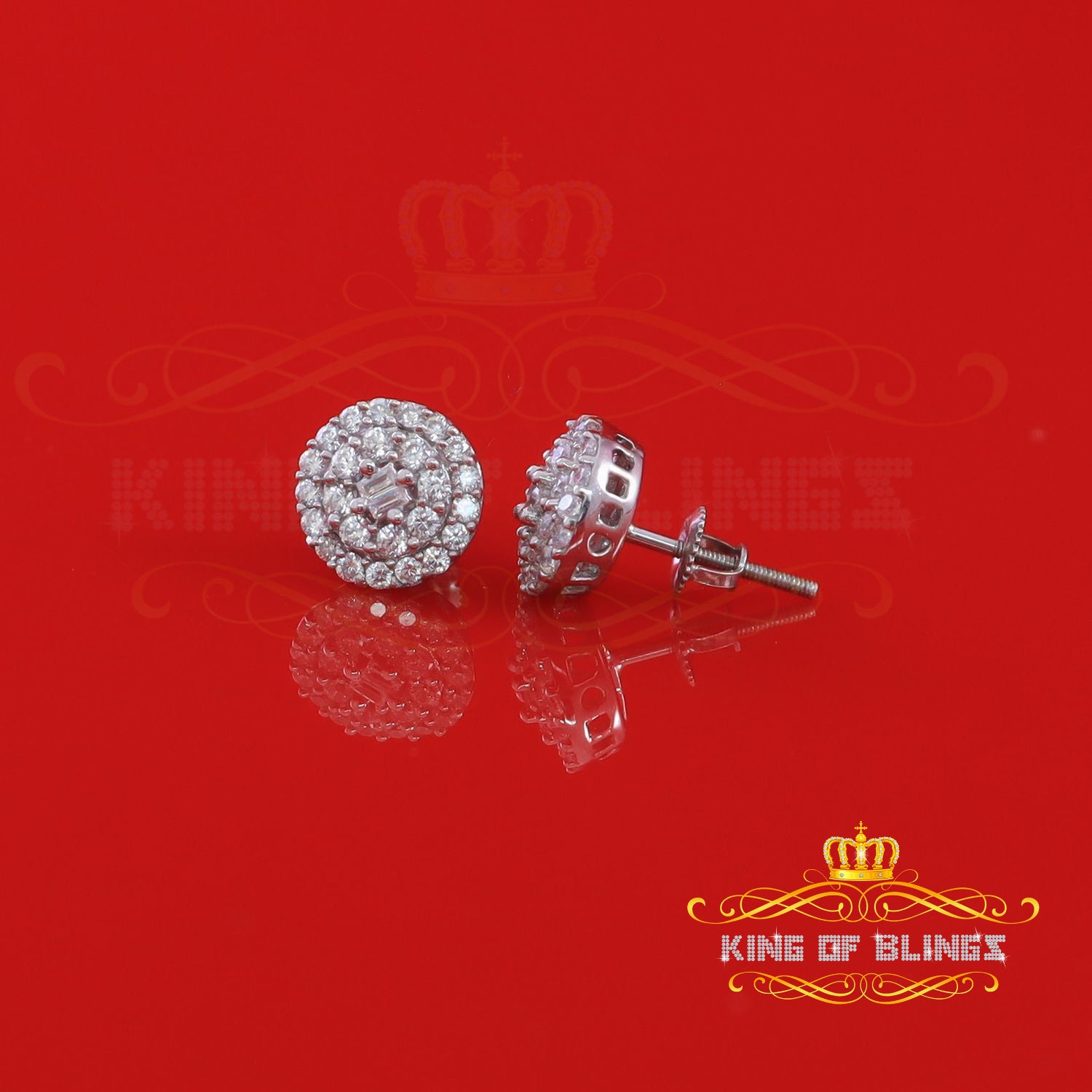 King of Bling's Aretes Para Hombre 925 White Silver 1.86ct Cubic Zirconia Round Women's Earrings