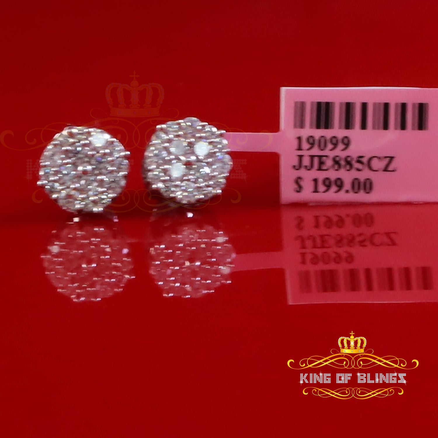 King of Blings- Aretes Para Hombre 925 White Silver 2.48ct Cubic Zirconia Round Women's Earring