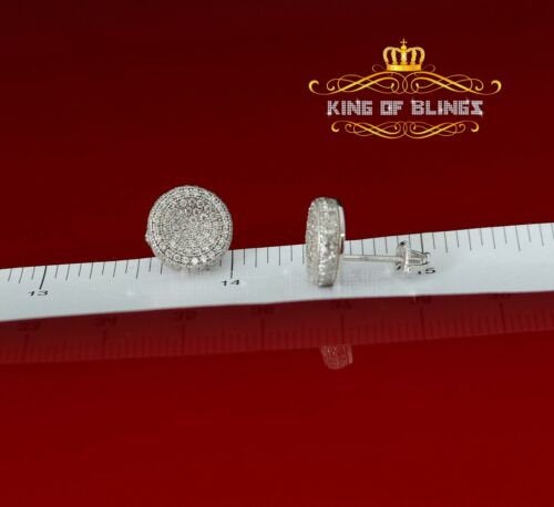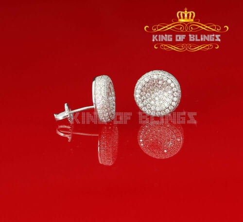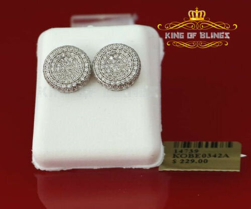 King of Bling's Aretes Para Hombre 925 White Silver Women's & Men Cubic Zirconia Round Earring