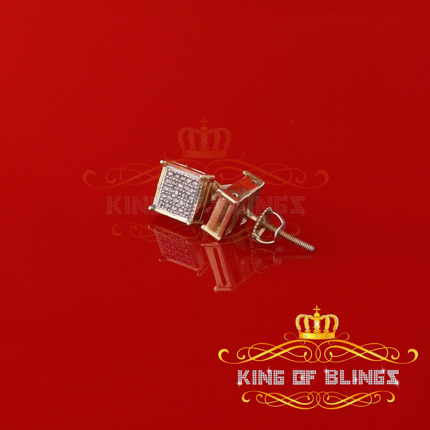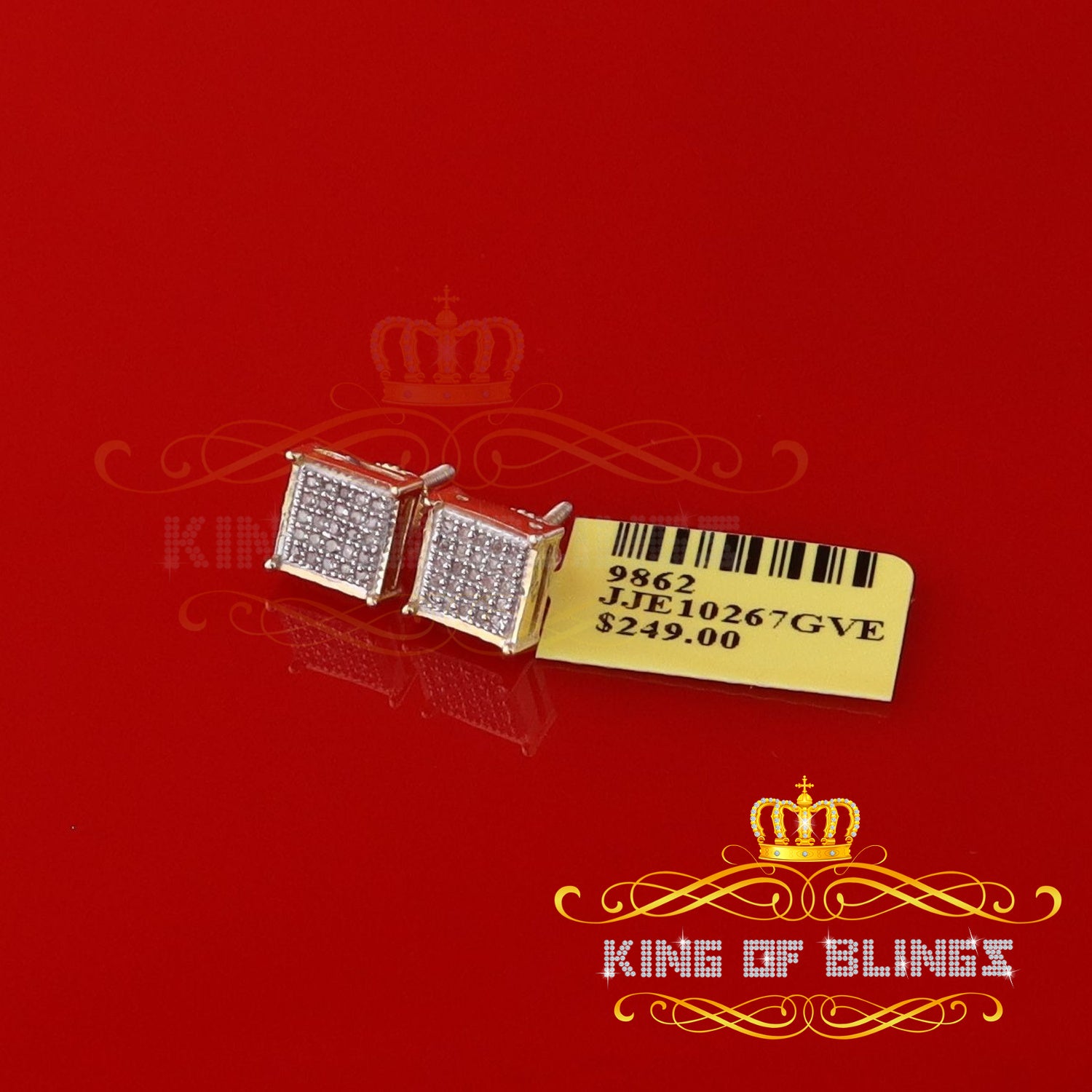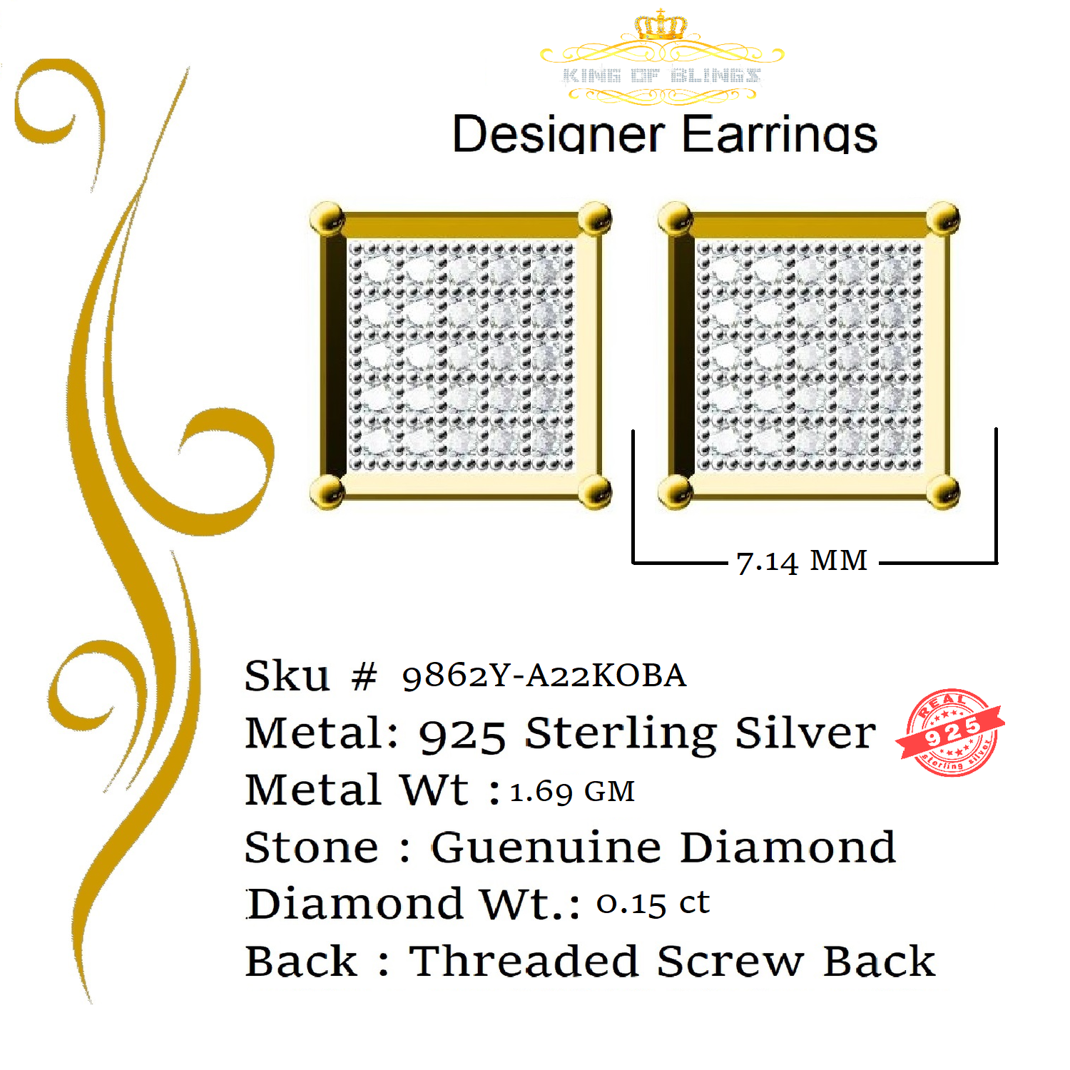 King of Blings-Aretes Para Hombre 925 Yellow Silver 0.15ct Diamond Women & Men Square Earrings