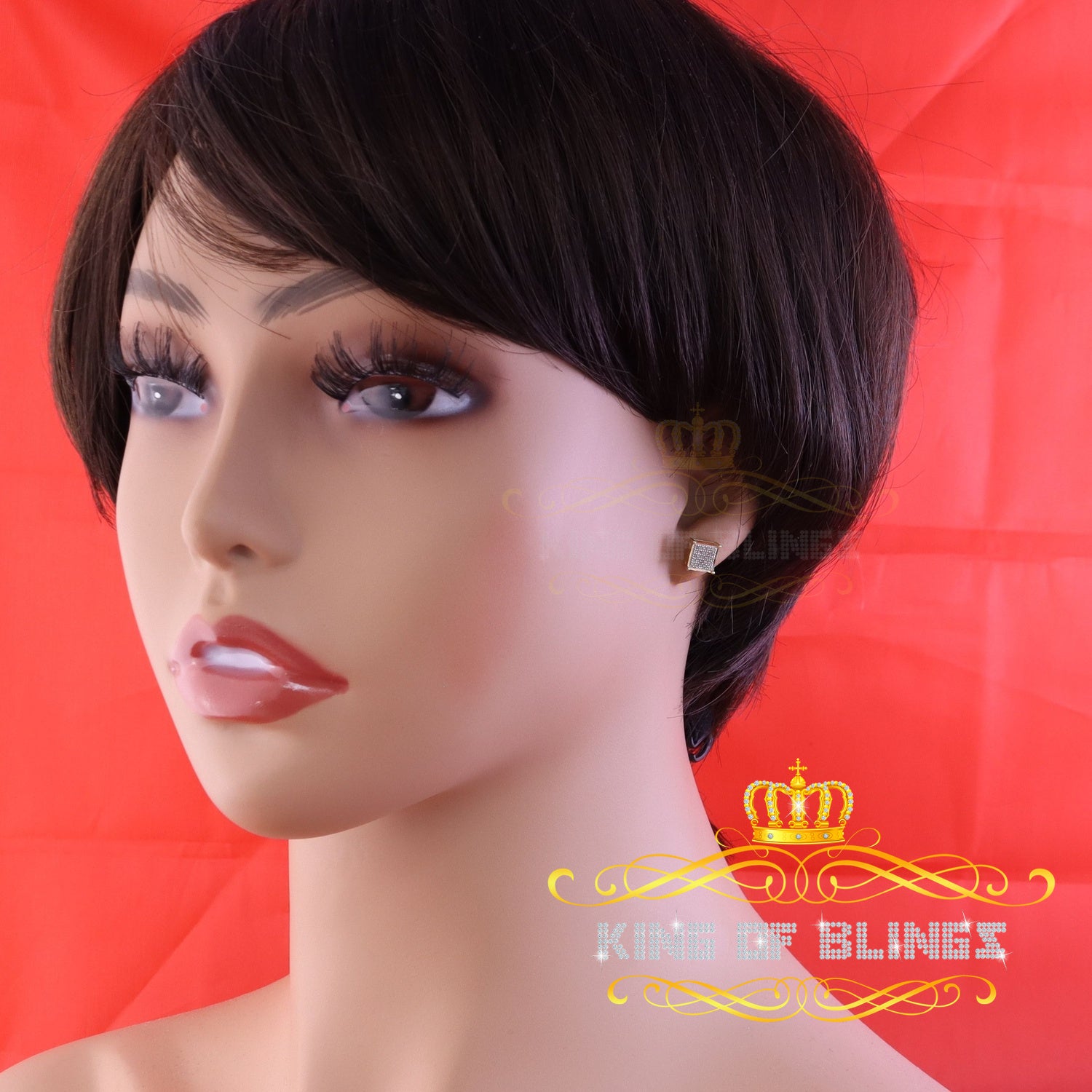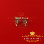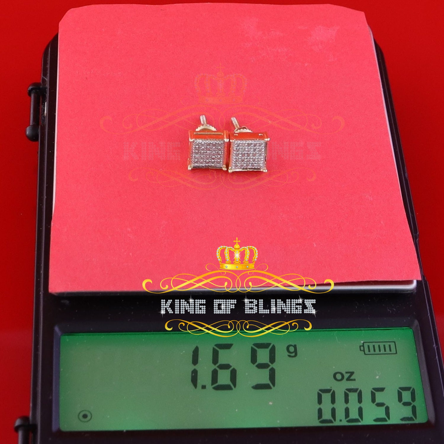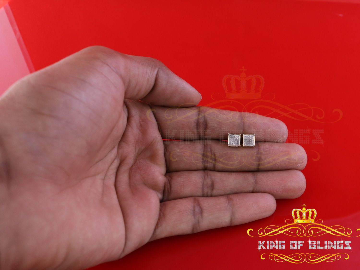 King of Blings-Aretes Para Hombre 925 Yellow Silver 0.15ct Diamond Women & Men Square Earrings