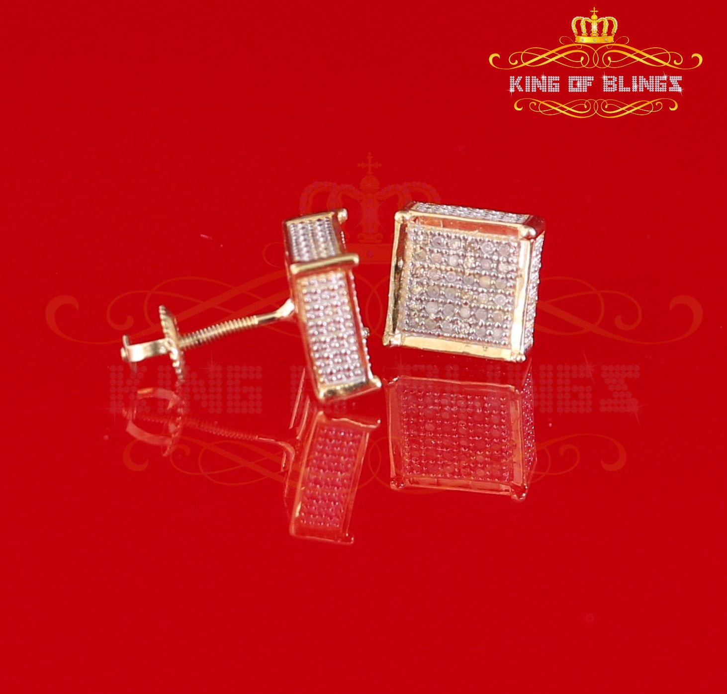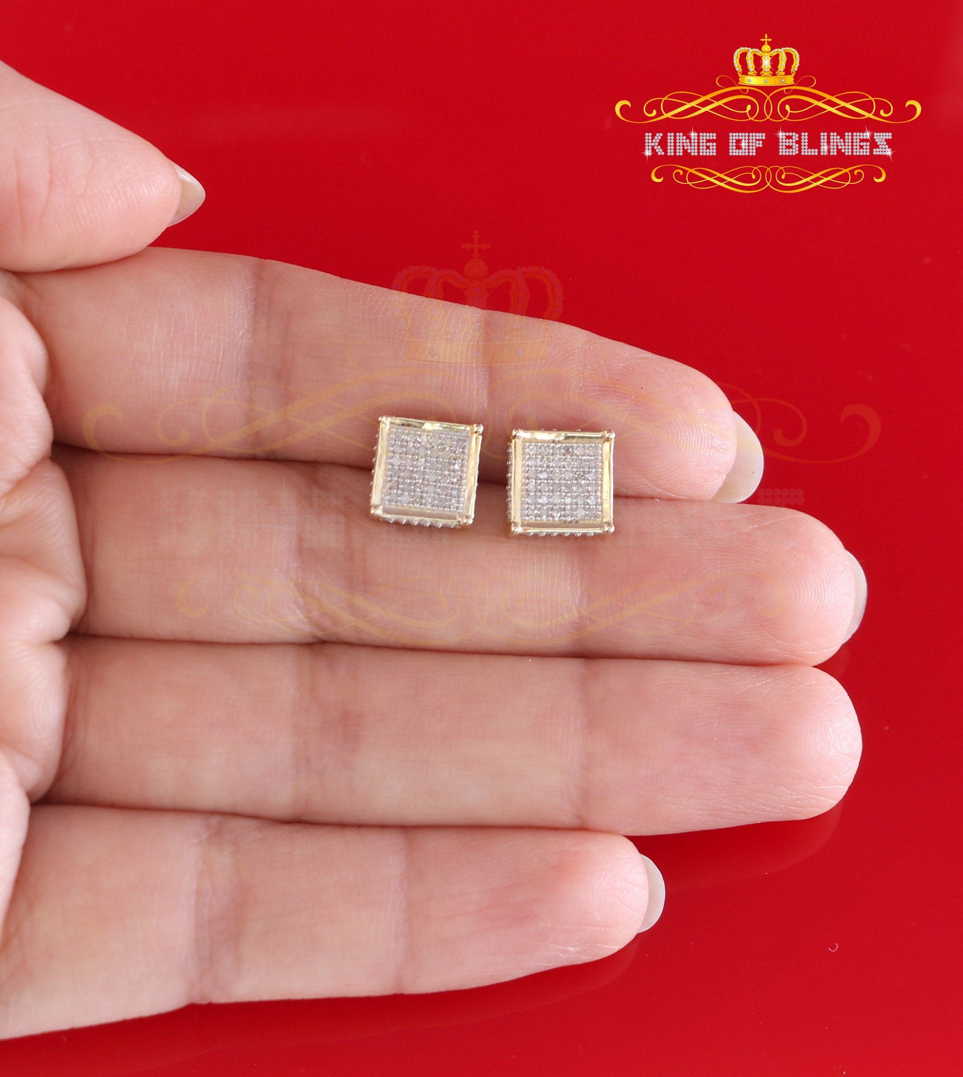 King of Blings-Aretes Para Hombre 925 Yellow Silver 0.20ct Diamond Stud Men's/ Women's Earrings