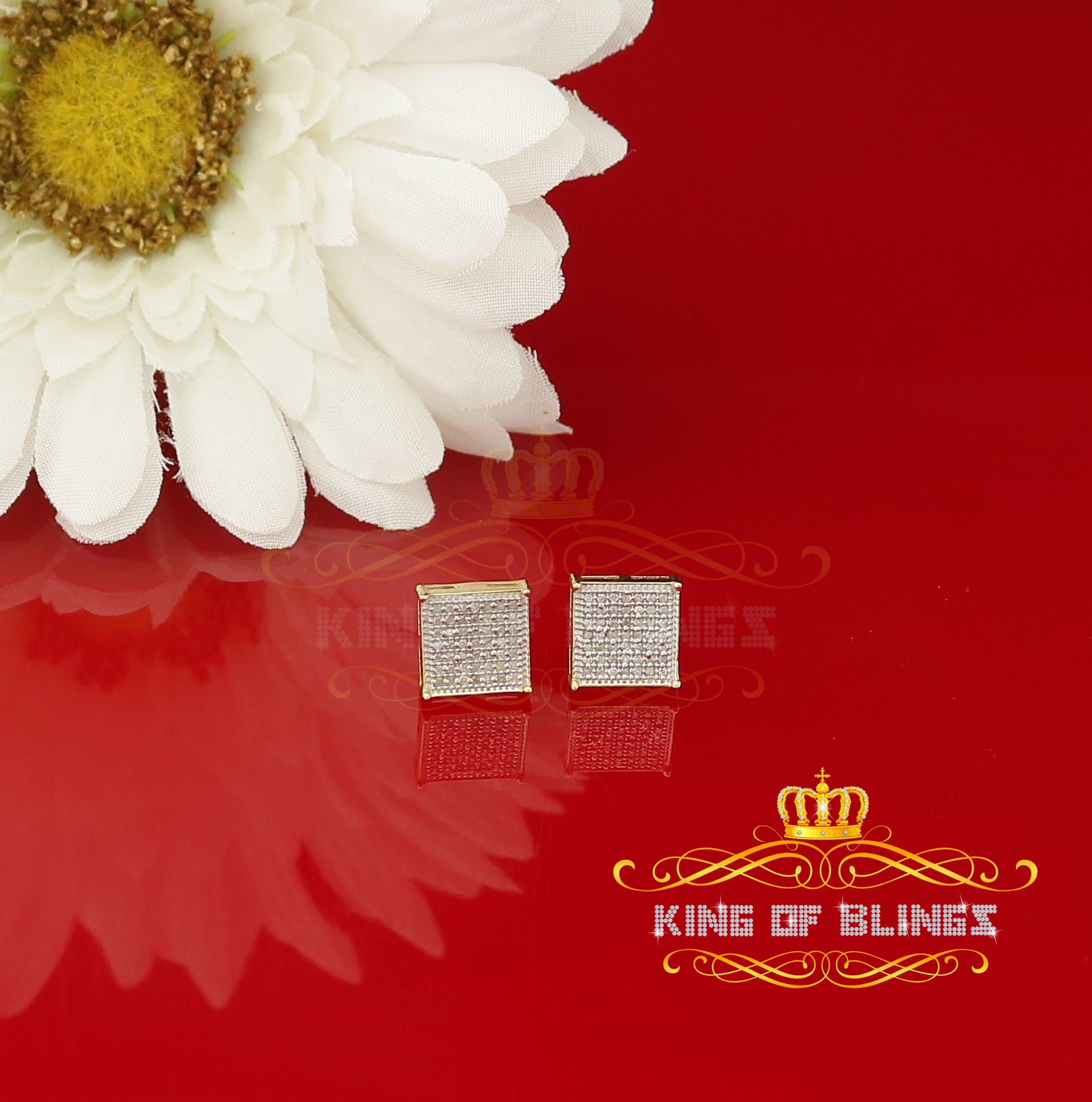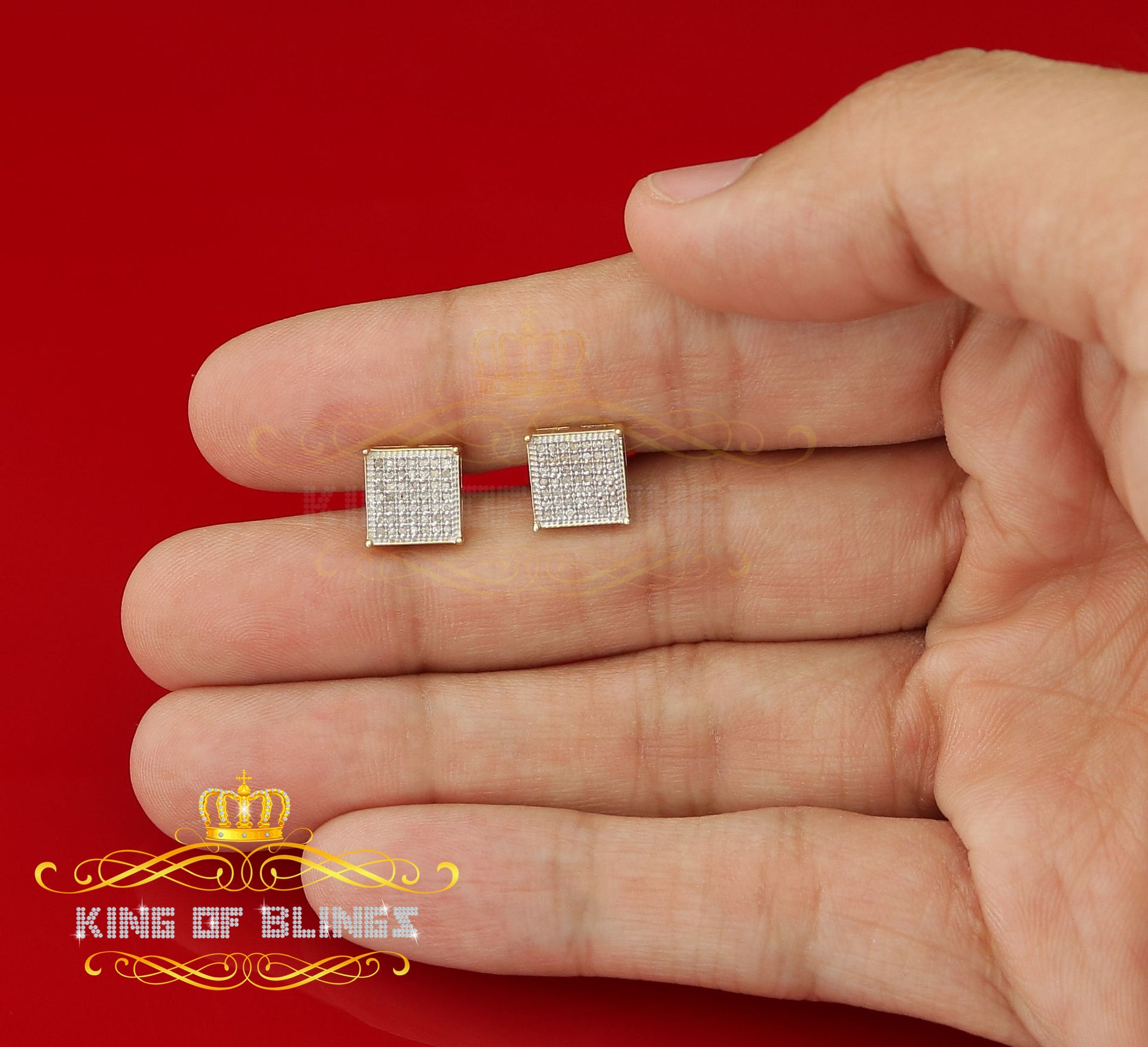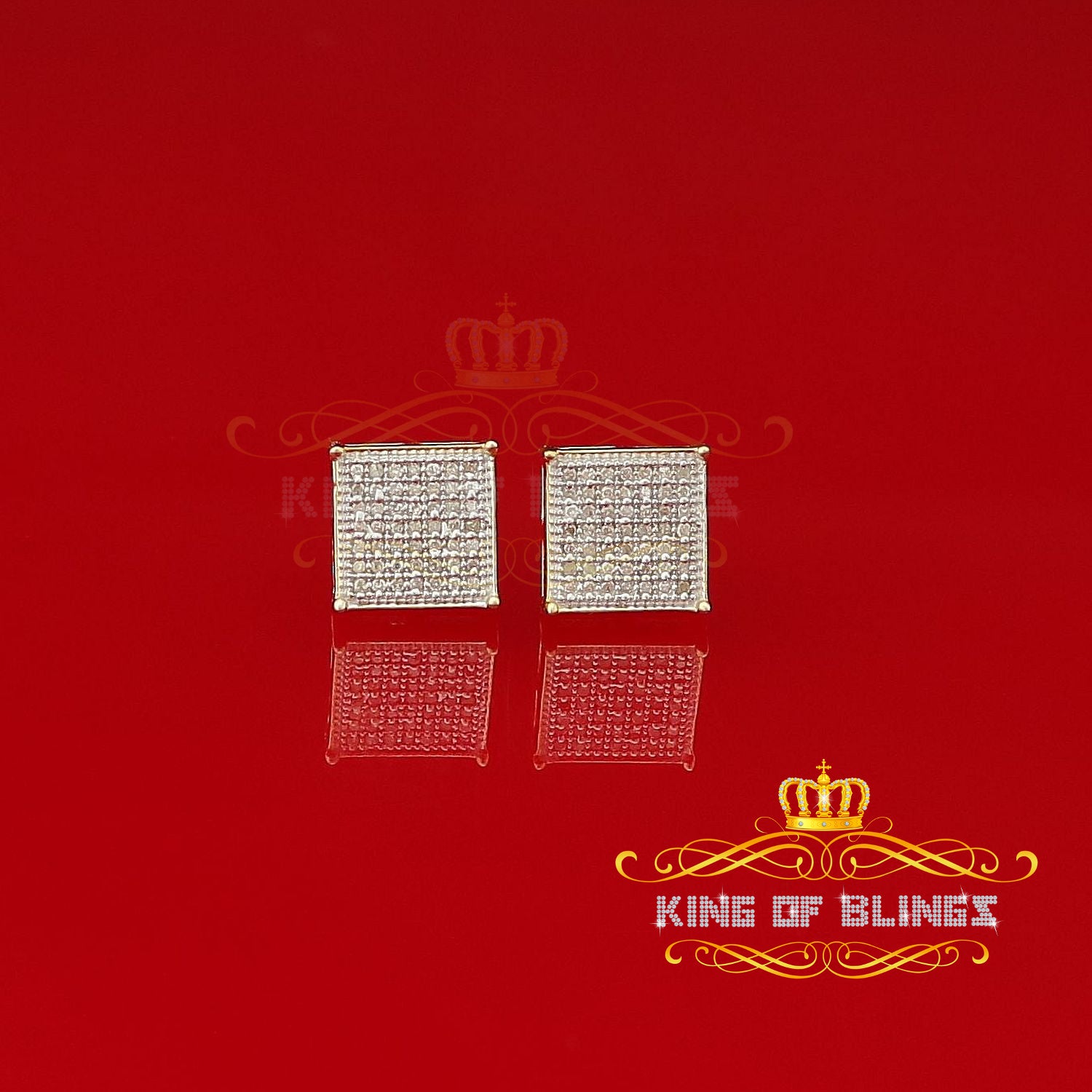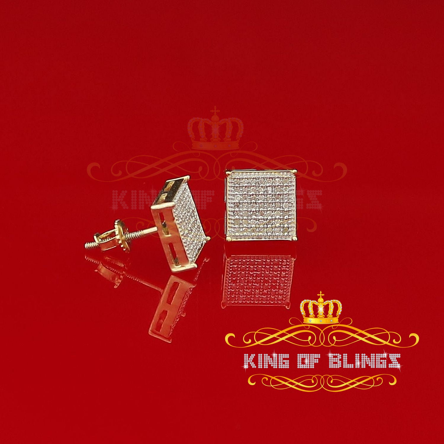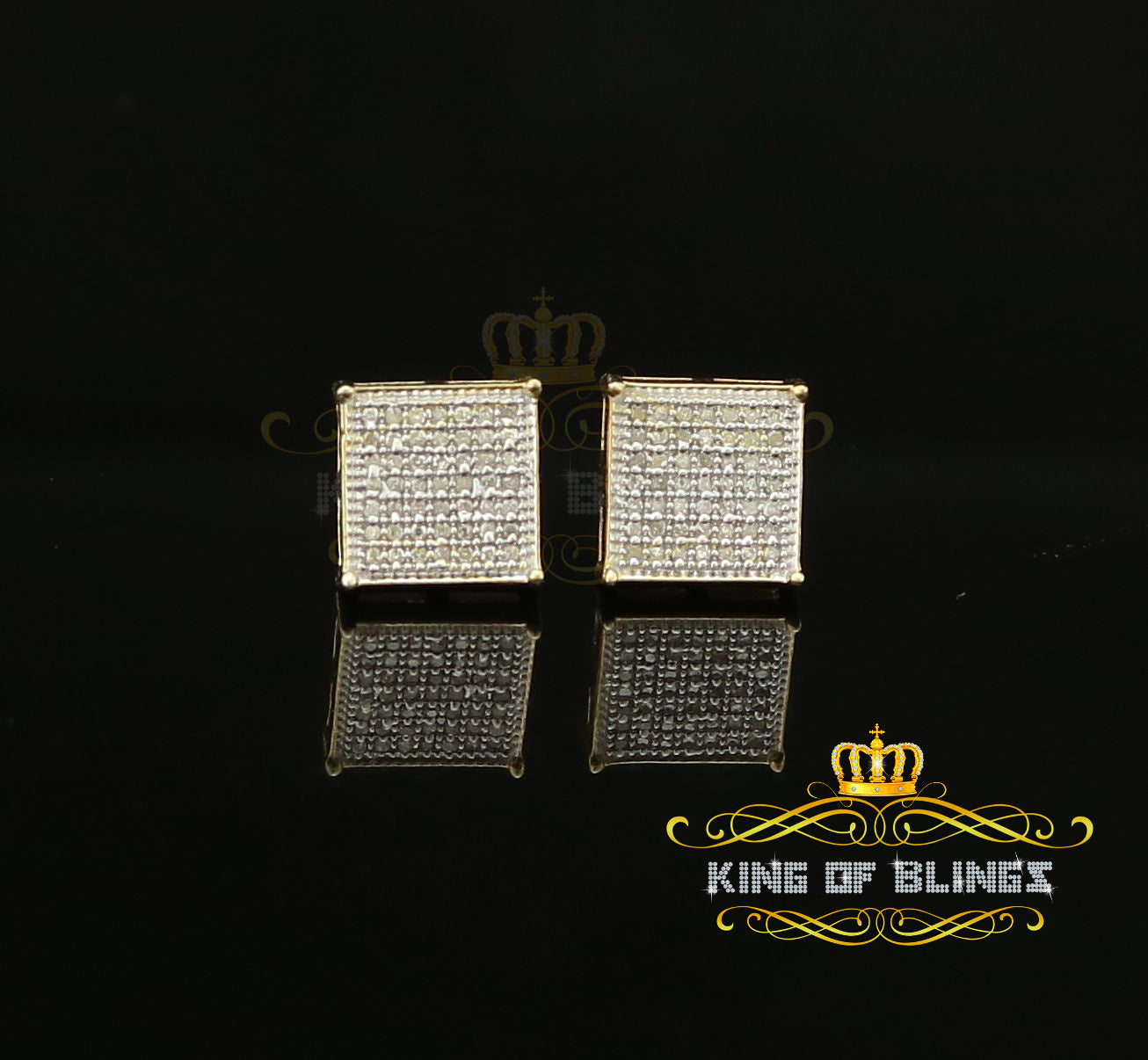 King of Blings-Aretes Para Hombre 925 Yellow Silver 0.25ct Diamond Stud Men's/ Women's Earrings