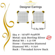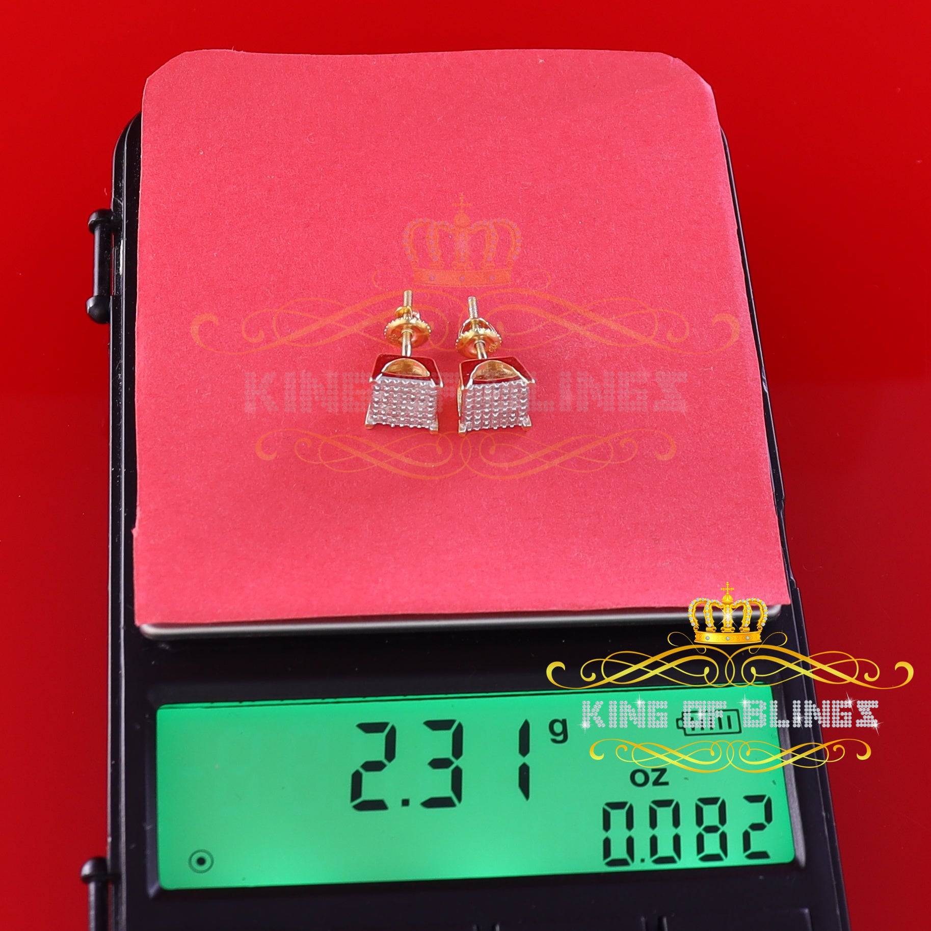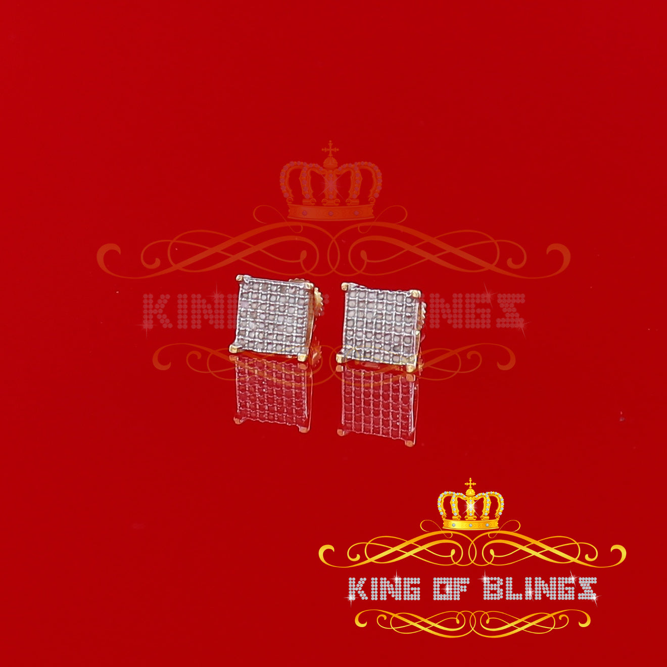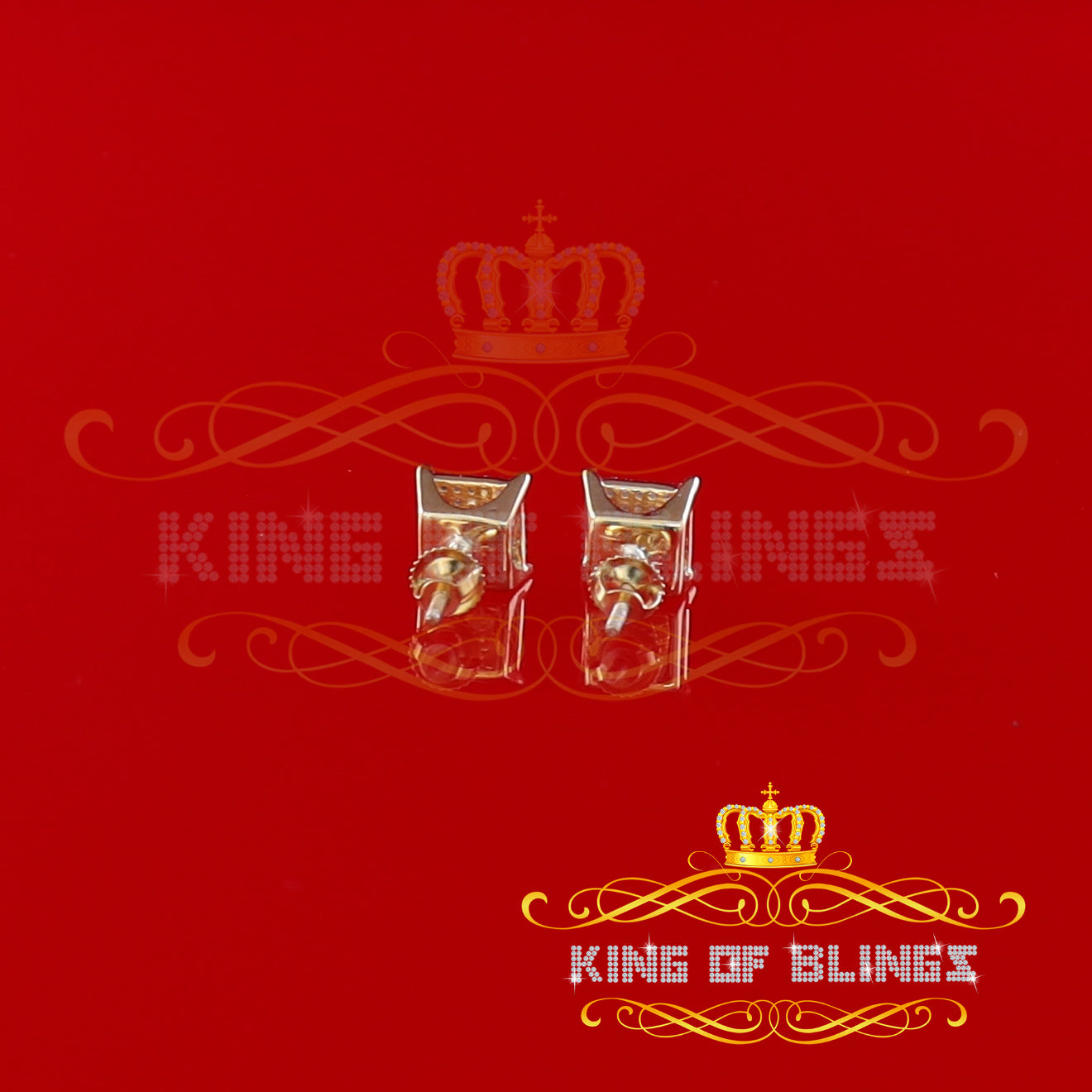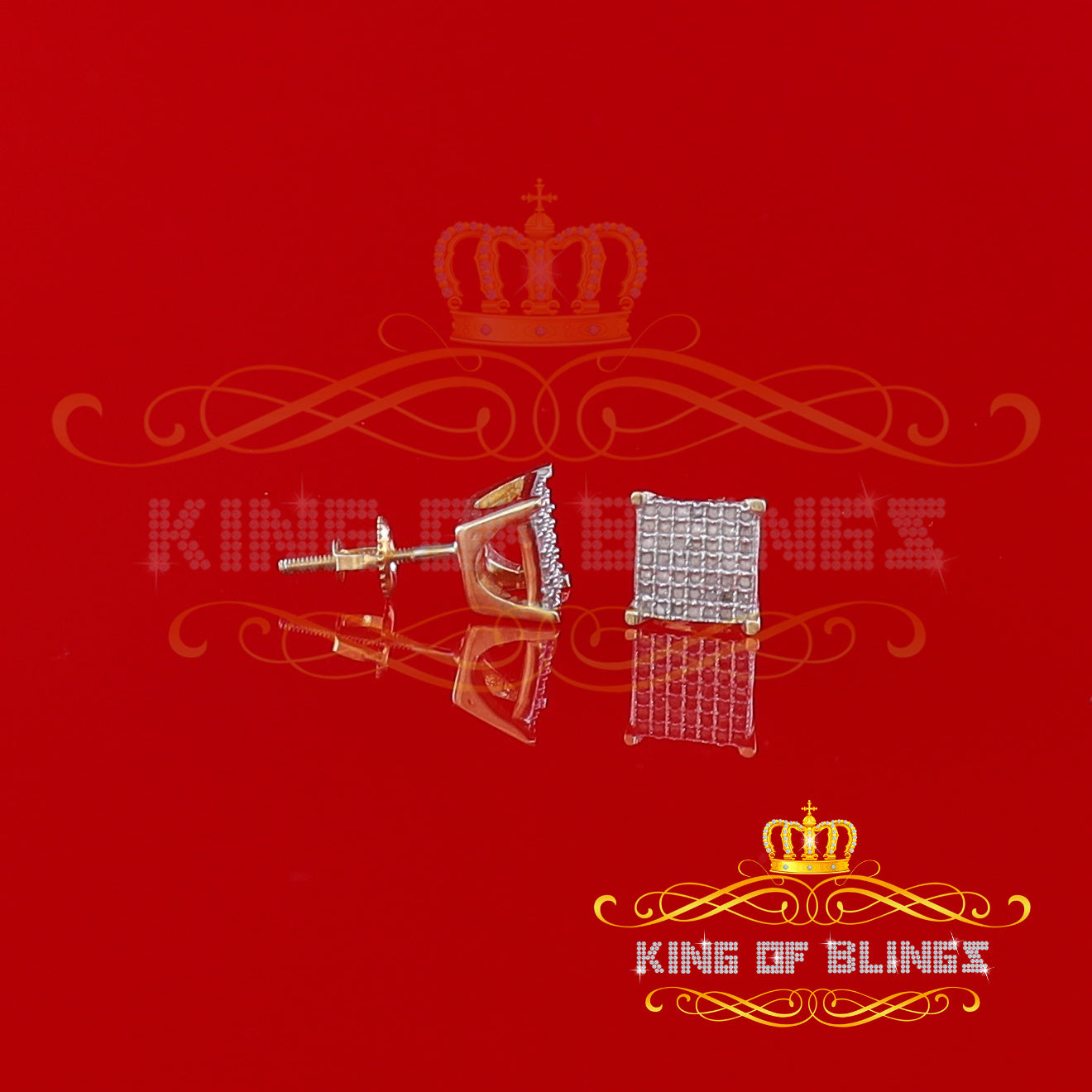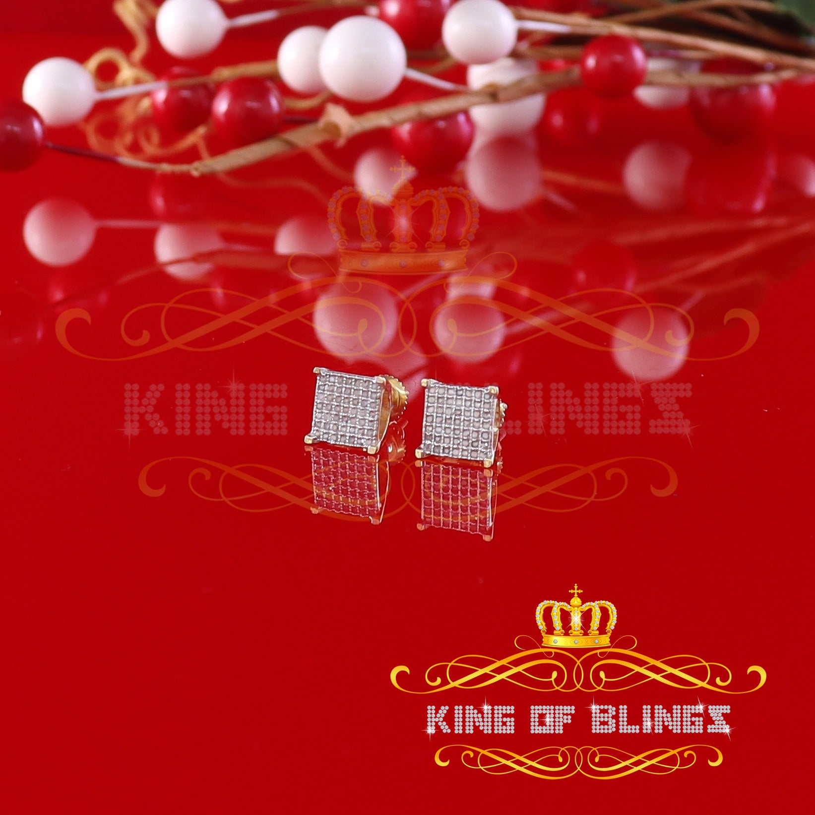 King of Blings-Aretes Para Hombre 925 Yellow Silver 0.25ct Square Diamond Stud men's Earrings