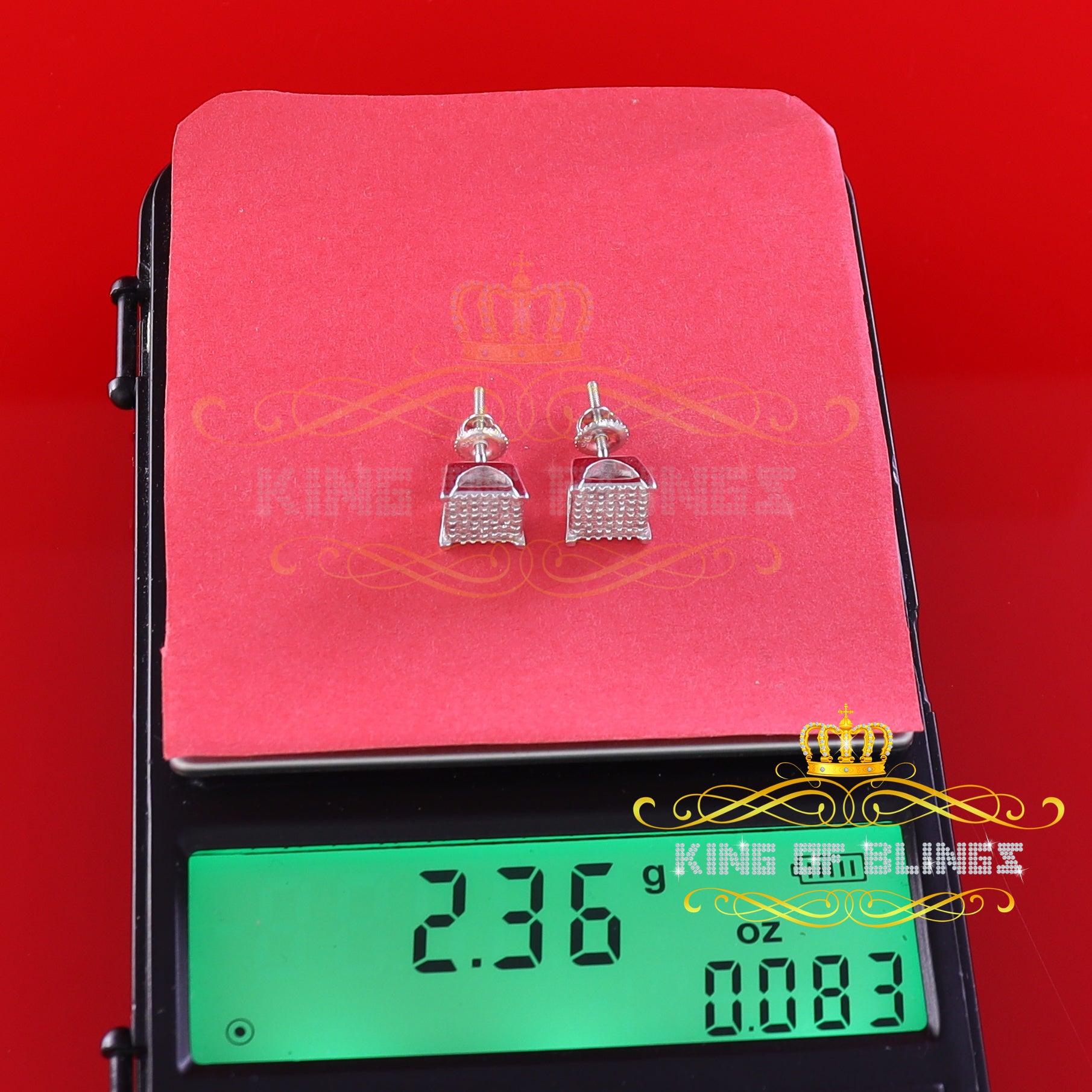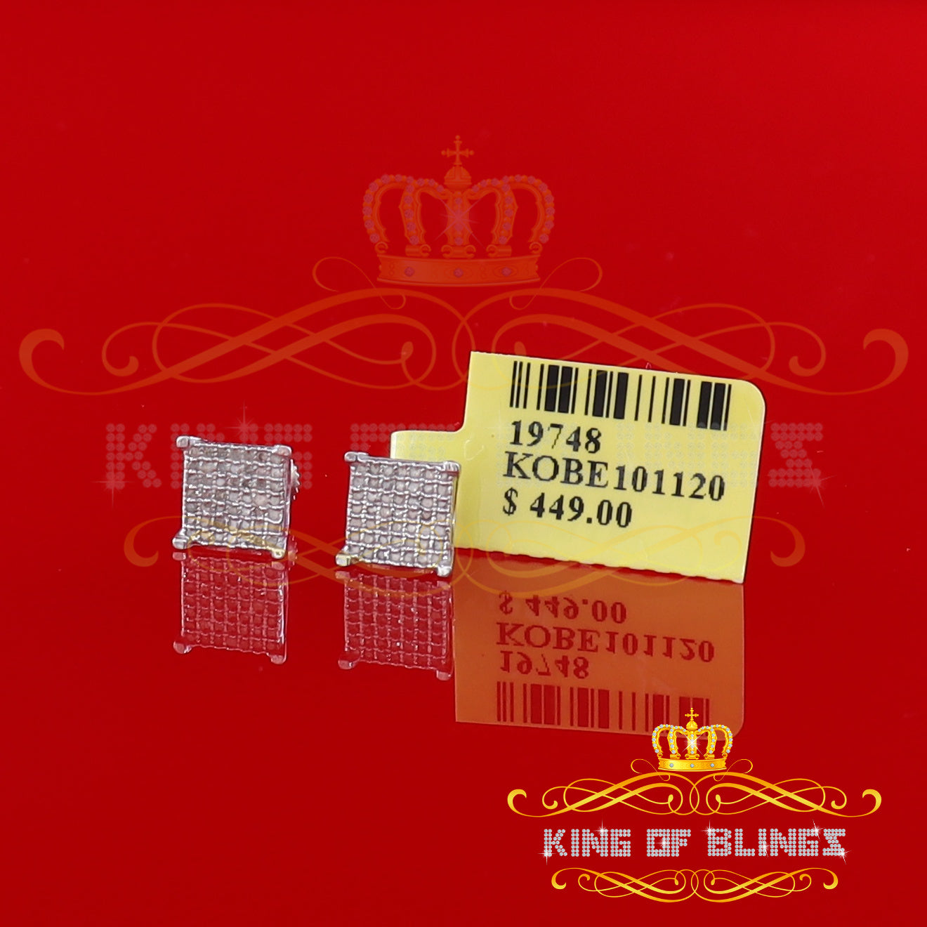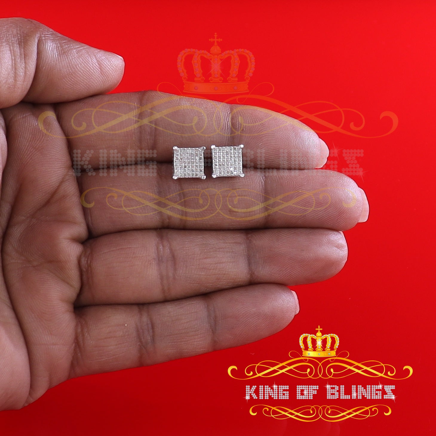 Presented as new with tags in the original packaging, these Silver Diamond earrings are ready to add a touch of sophistication to any outfit, making them a perfect choice for those seeking a combination of style and quality appealing to both men and women with their captivating sparkle. rest assured that the "King Of Blings" brand guarantees exceptional craftsmanship and materials. these womens stud earrings make a perfect gift or a stylish addition to your own jewelry collection,