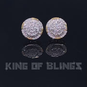 King of Bling's Aretes Para Hombre 925 Yellow Silver 0.96ct Cubic Zirconia Round Ladies Earrings