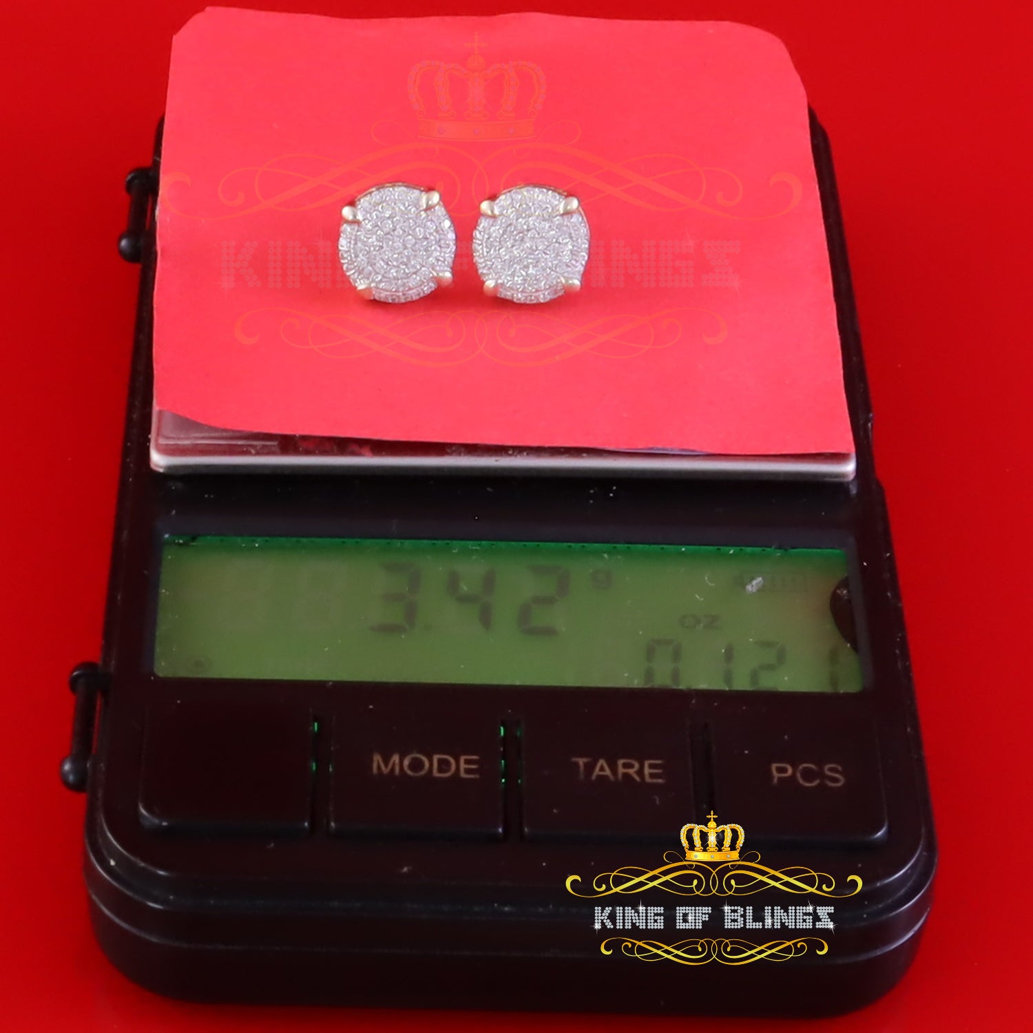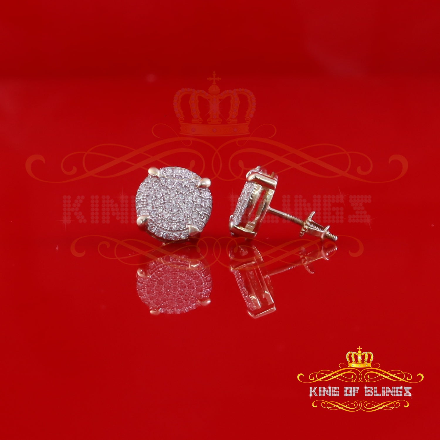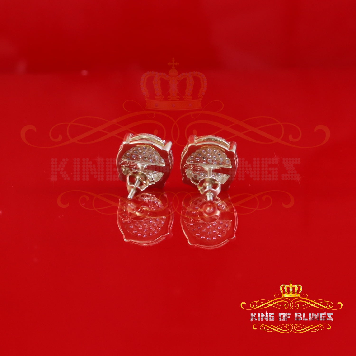 King of Bling's Aretes Para Hombre 925 Yellow Silver 1.06ct Cubic Zirconia Round Mens Earrings