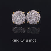 King of Bling's Aretes Para Hombre 925 Yellow Silver 1.18ct Cubic Zirconia Women's Round Earring