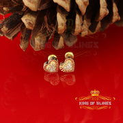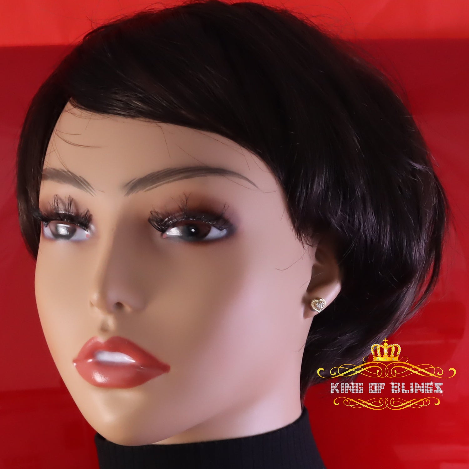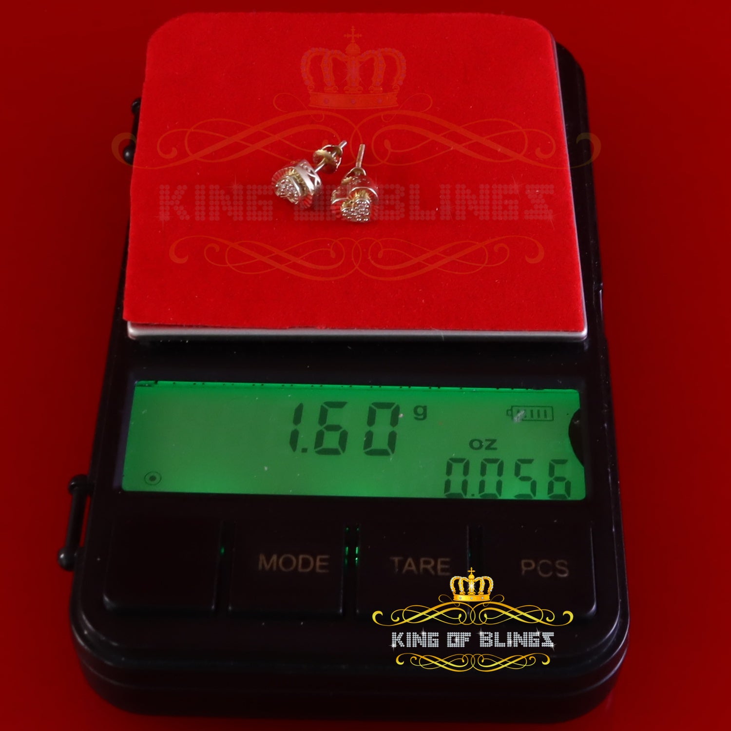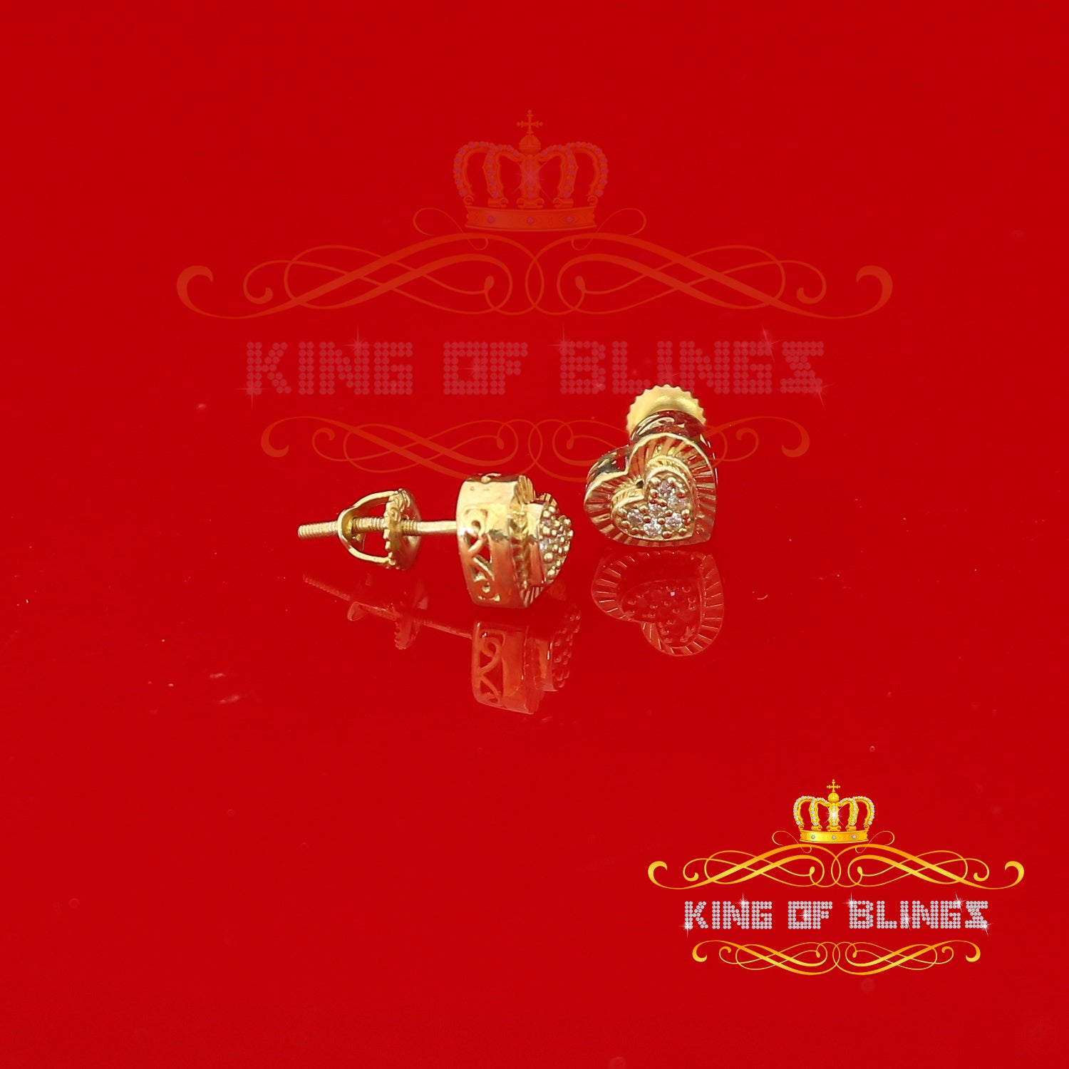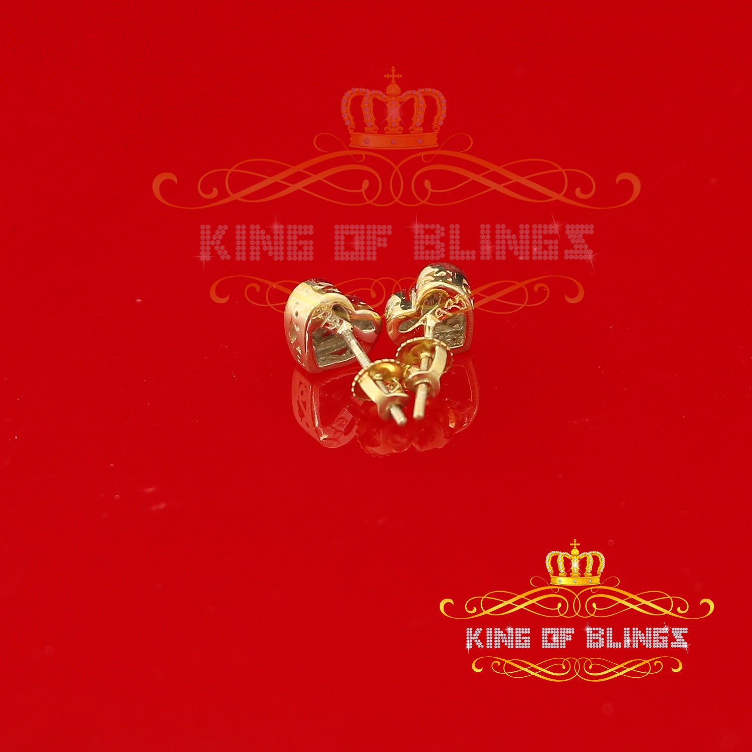 King of Bling's Aretes Para Hombre 925 Yellow Silver 1.28ct Cubic Zirconia Heart Women Earring